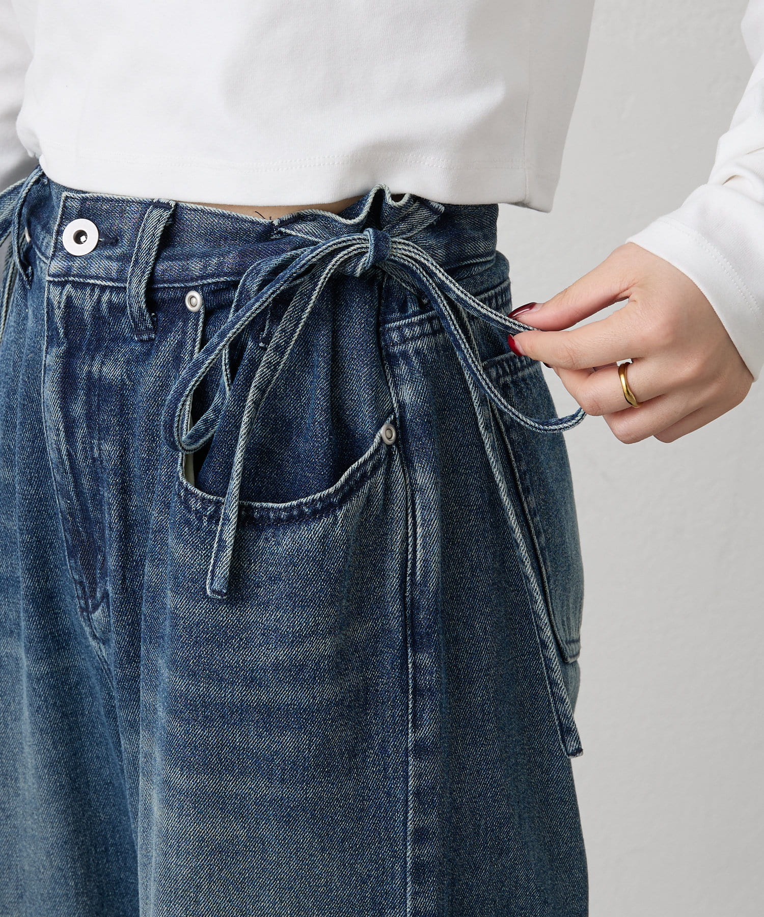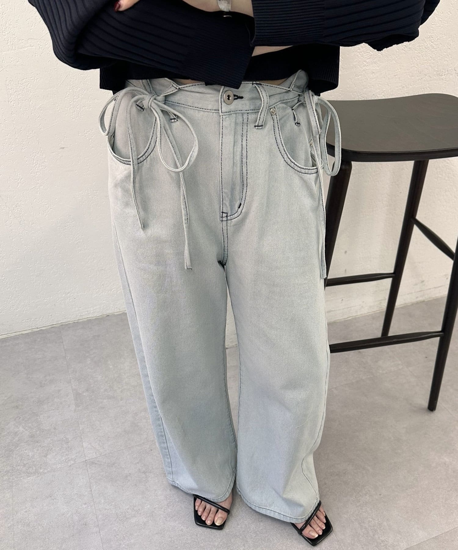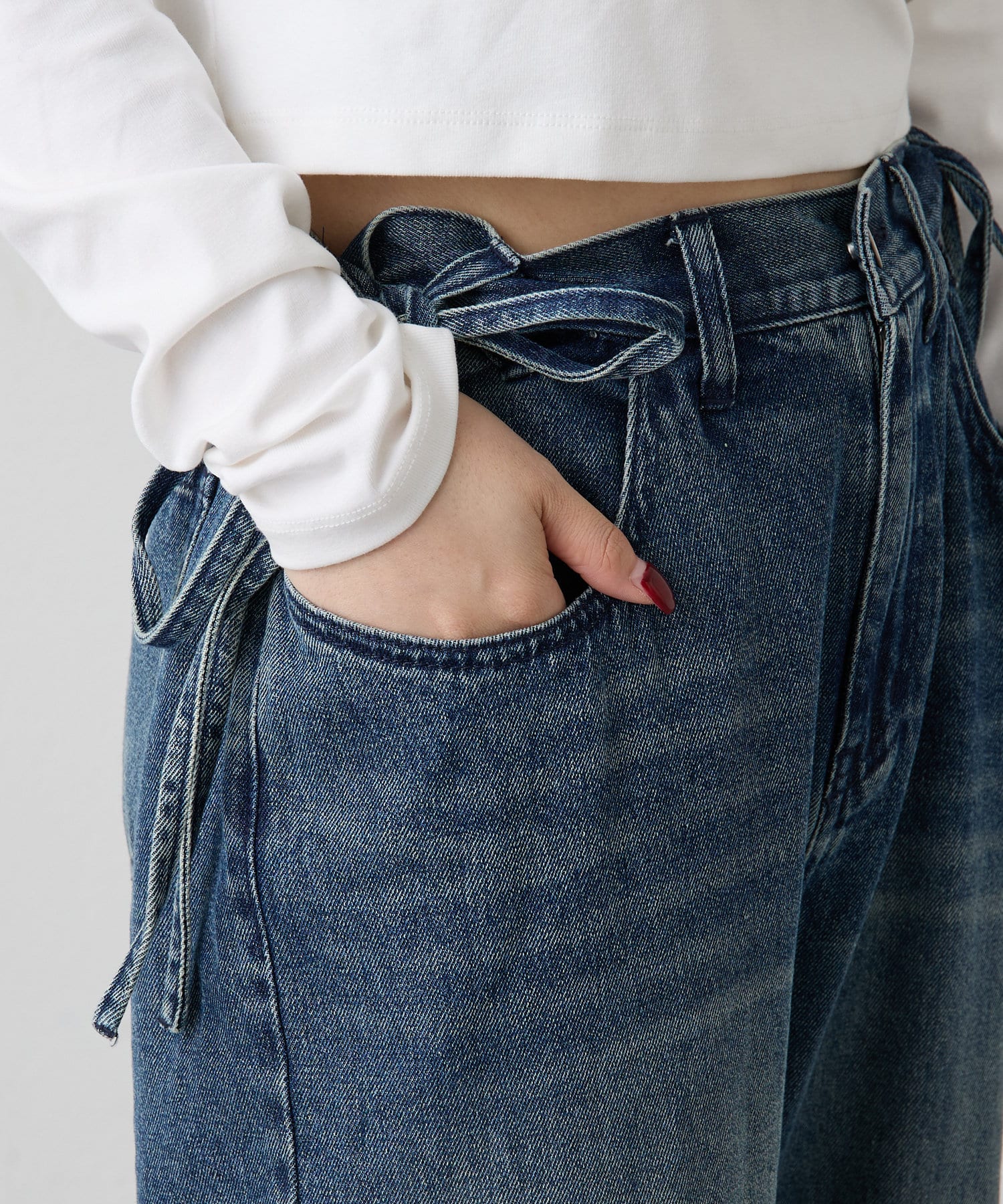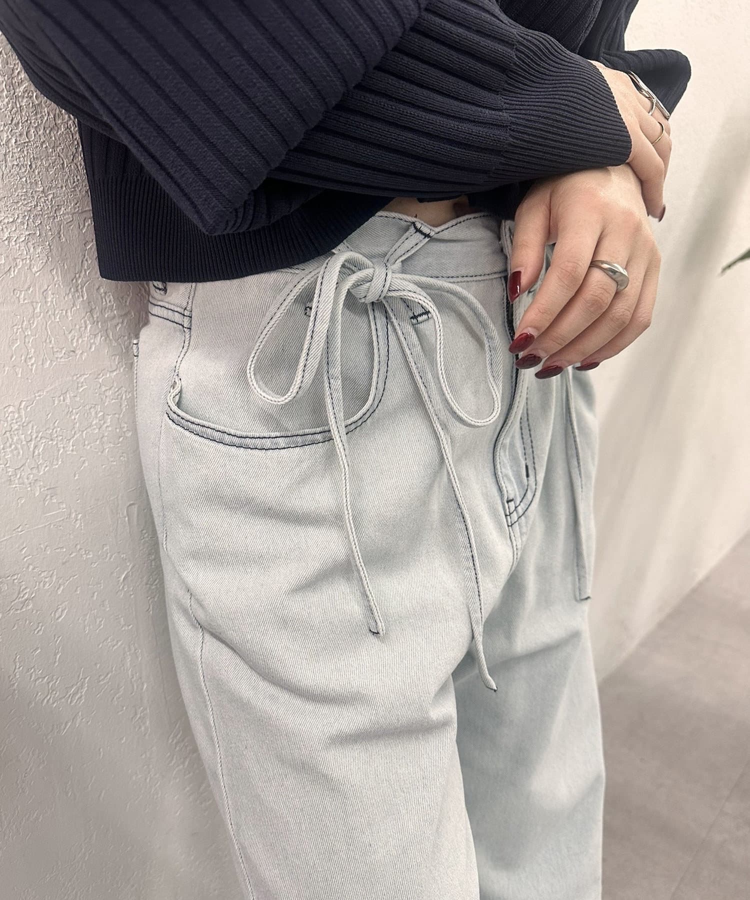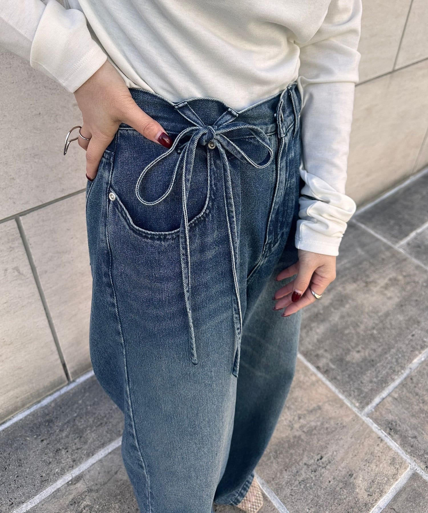 ウエストのリボンが目を惹くお洒落デニムが登場!