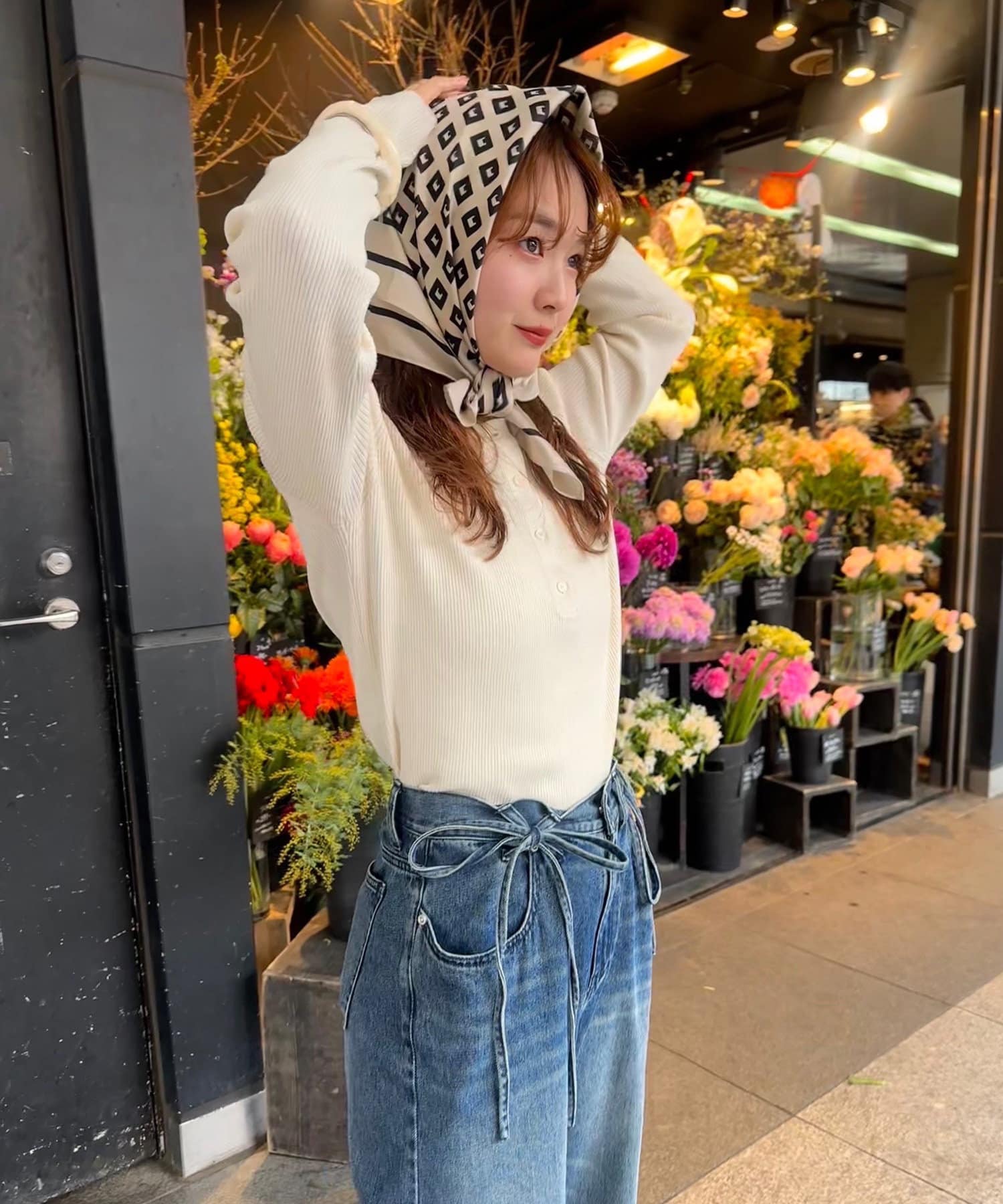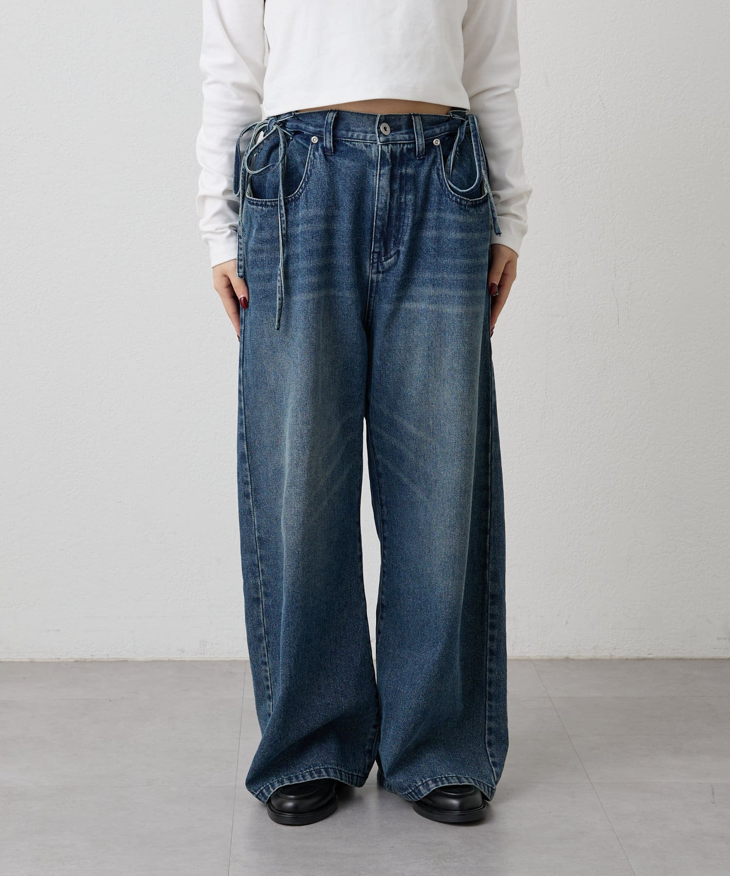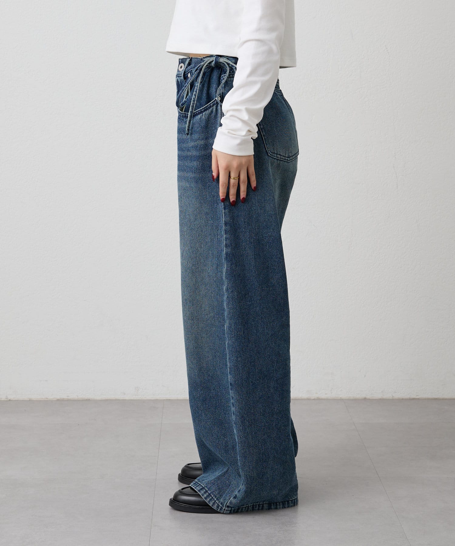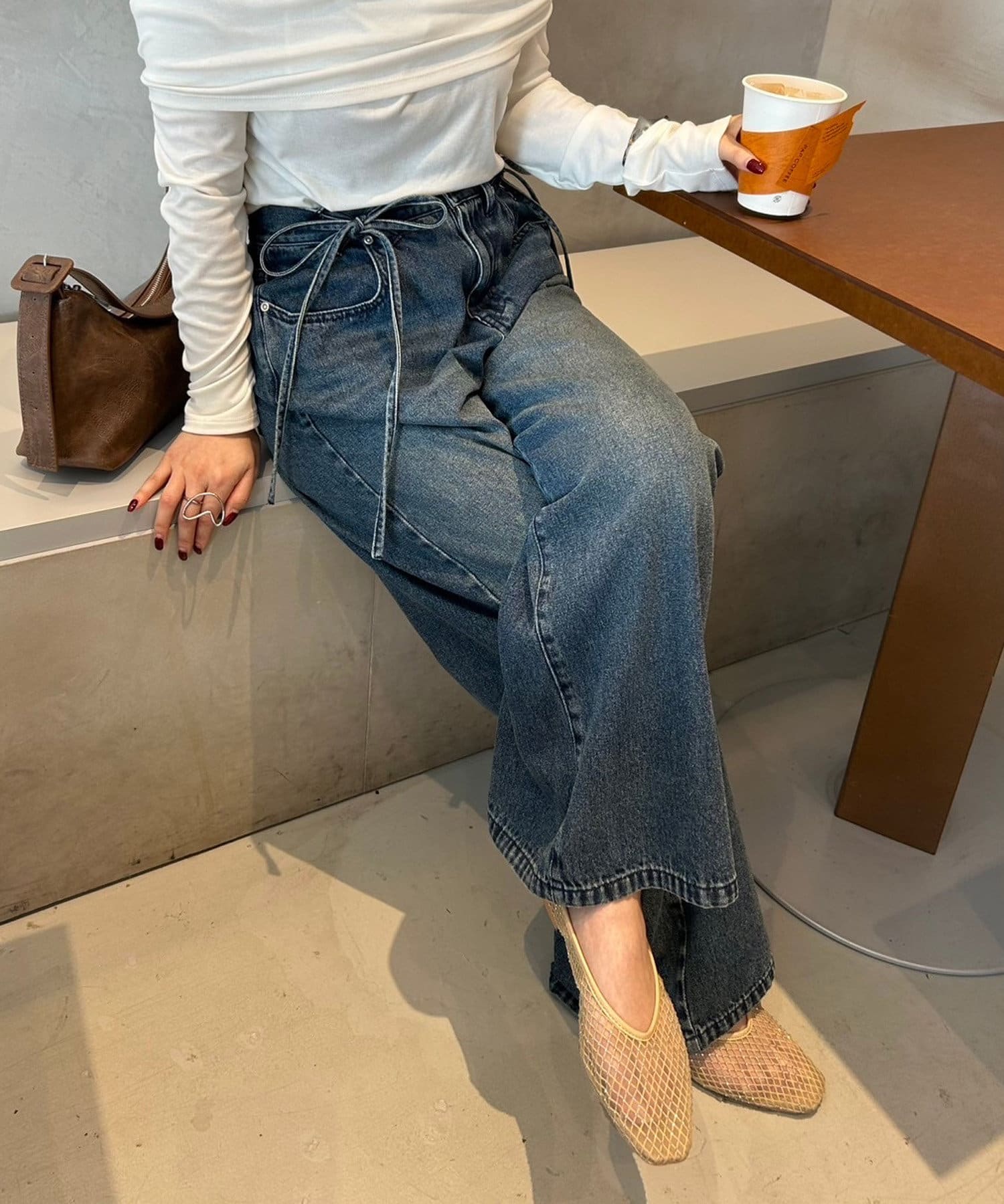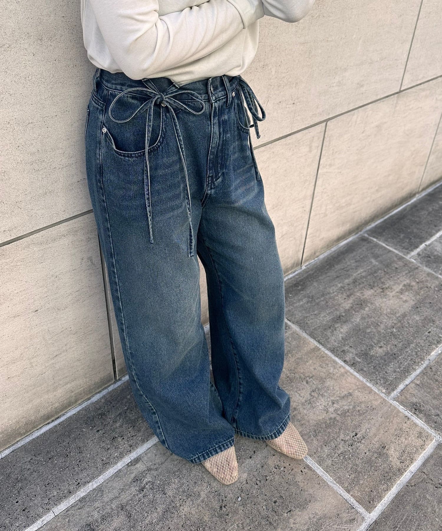 ウエストのリボンが目を惹くお洒落デニムが登場!