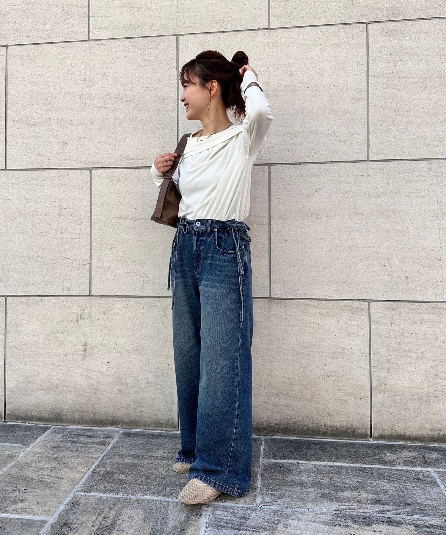・絶妙な色味とややワイドで落ち感のあるシルエットが可愛いデニム。