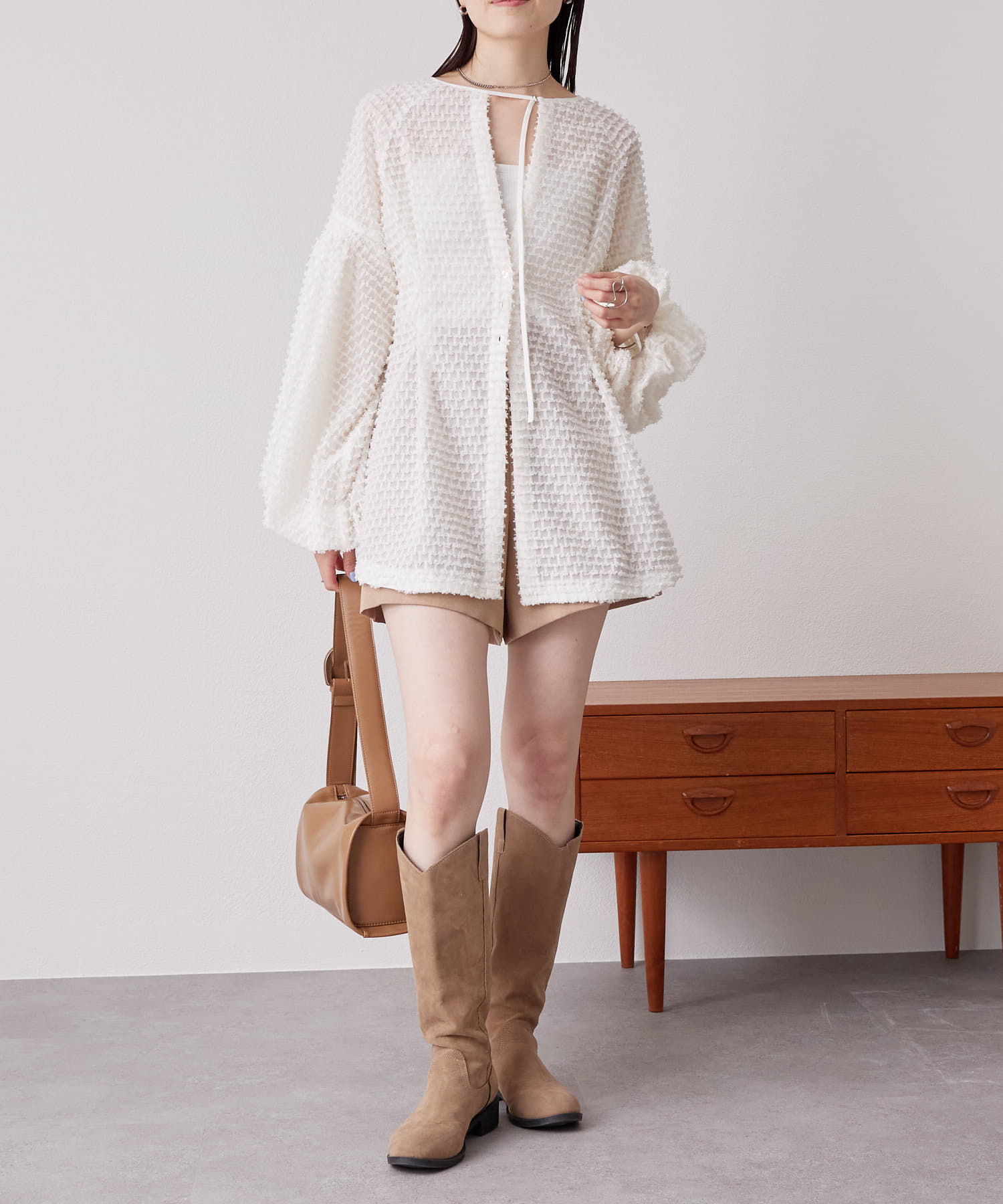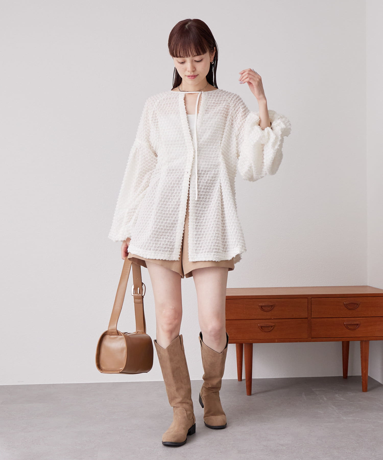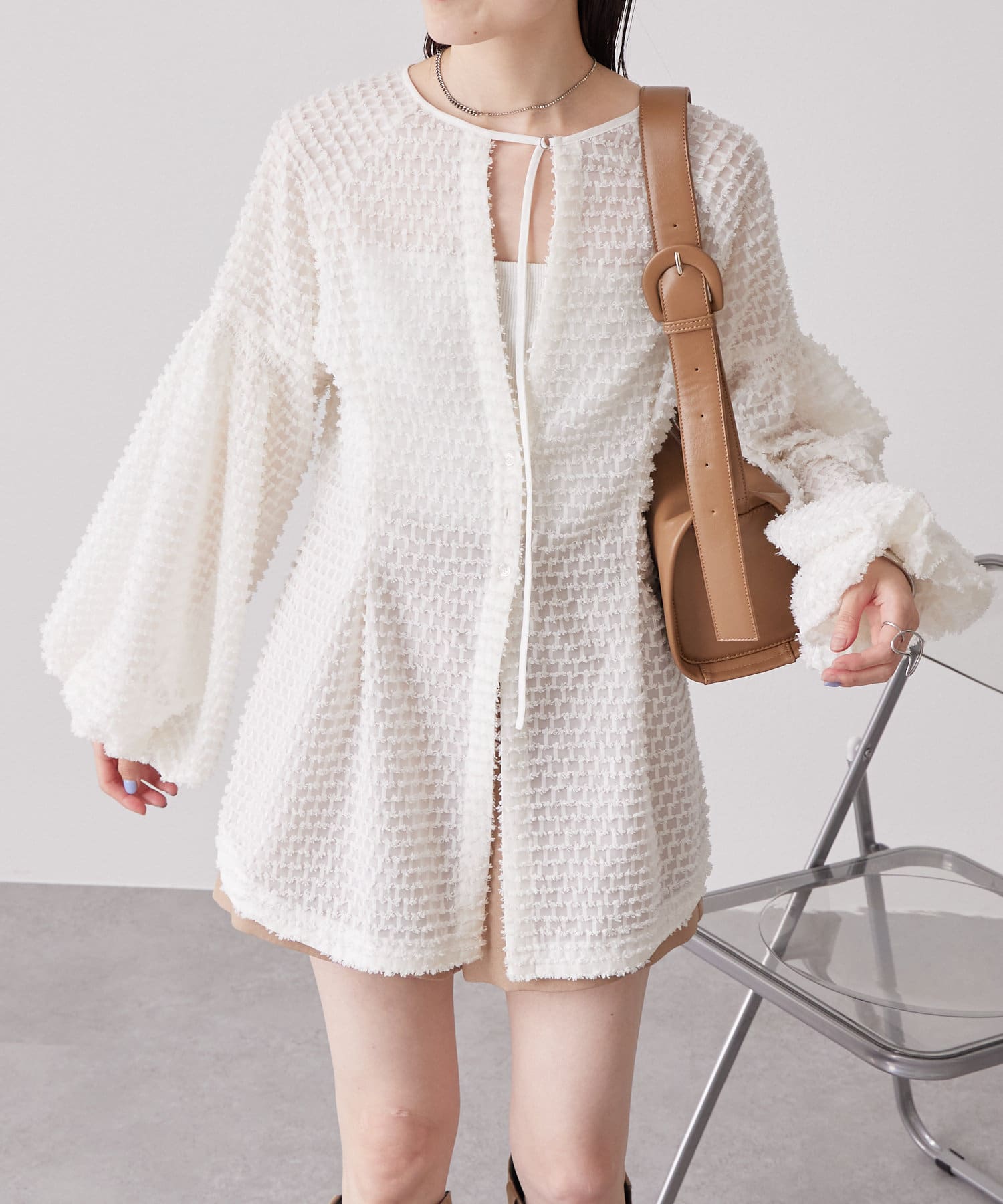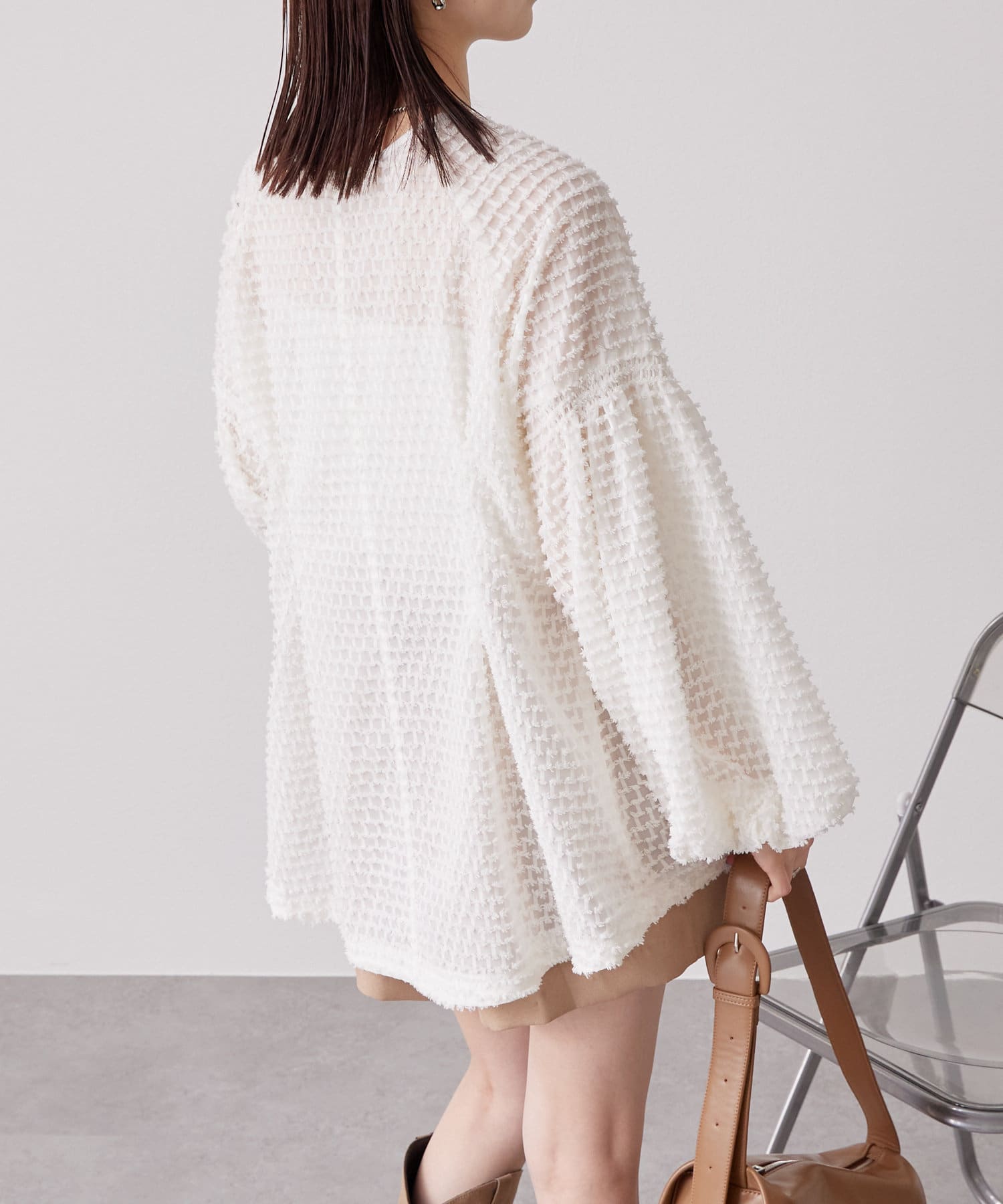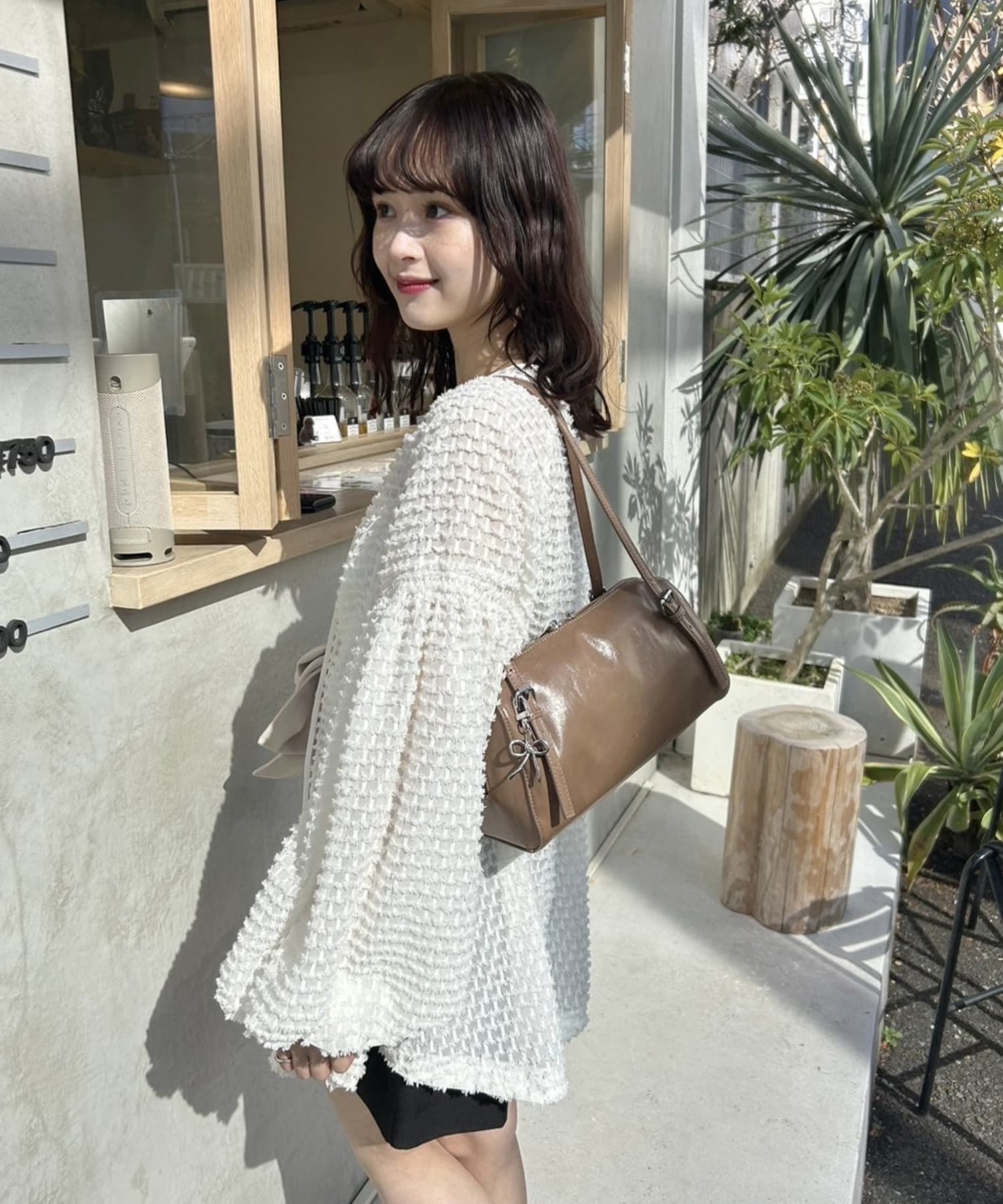・表面感のあるフリンジとたぽっと程よいボリューム感のあるお袖が女性らしい柔らかな印象に◎