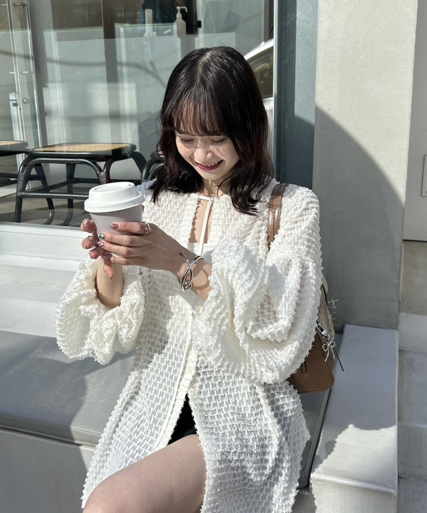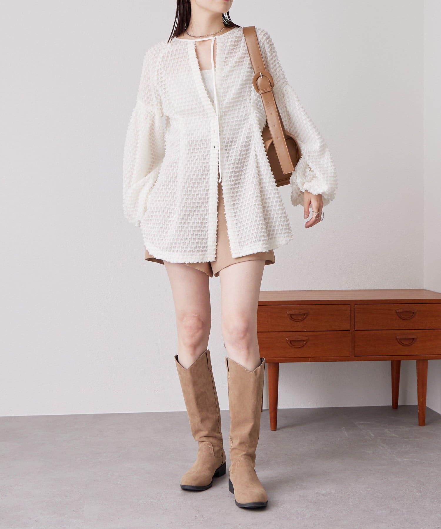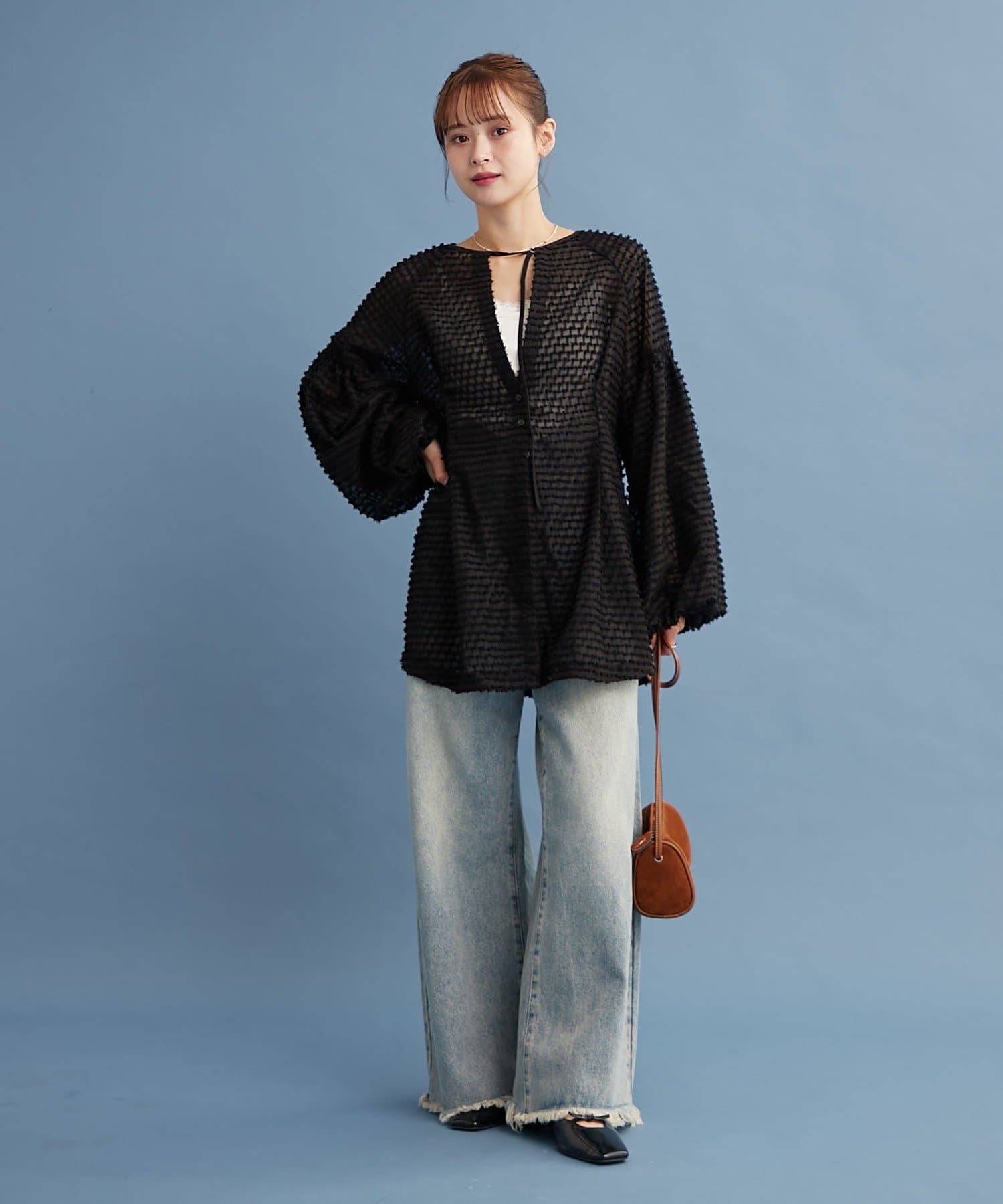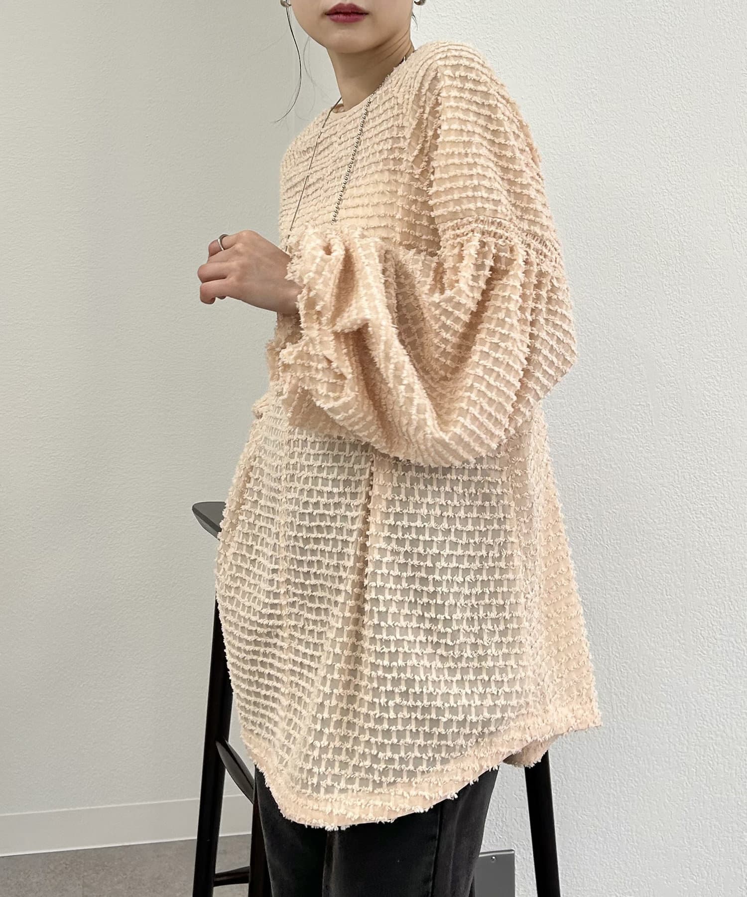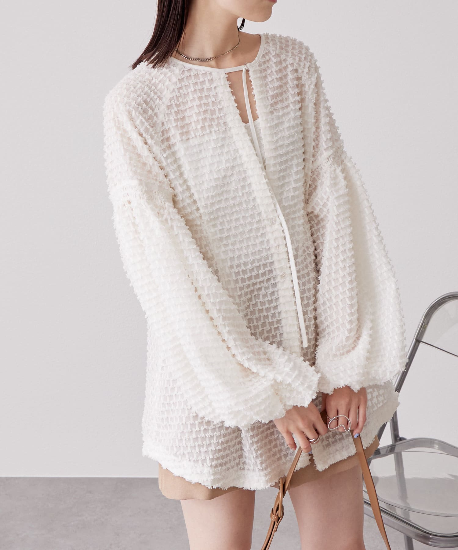 ・表面感のあるフリンジとたぽっと程よいボリューム感のあるお袖が女性らしい柔らかな印象に◎