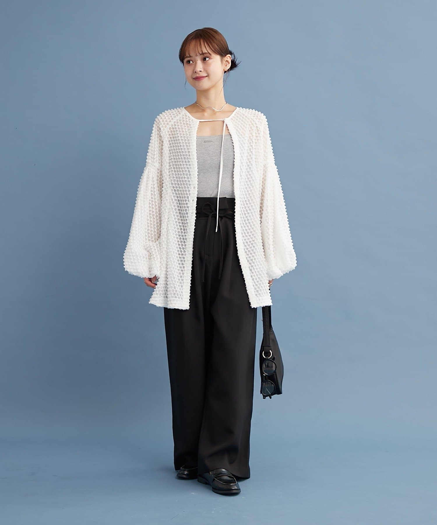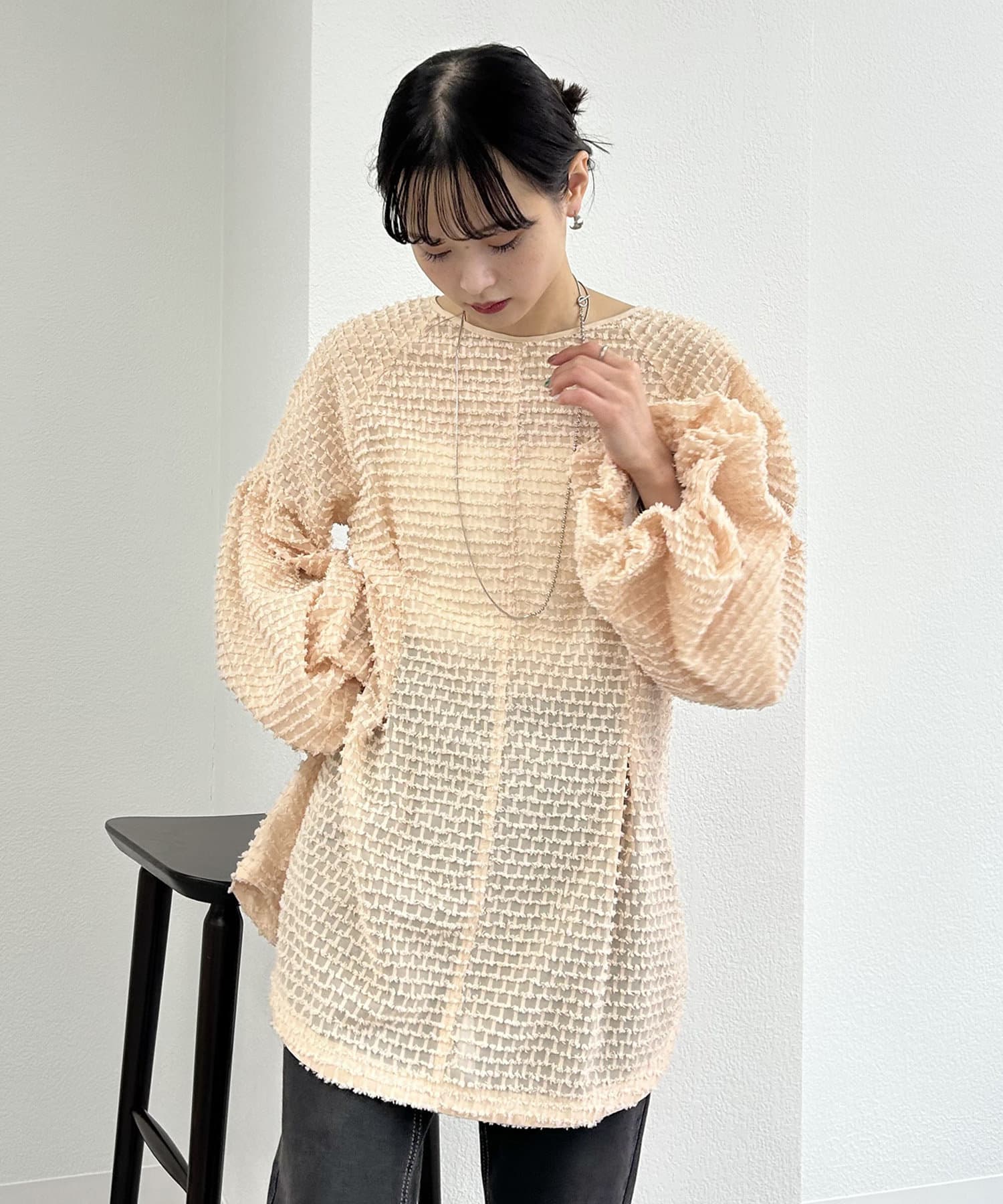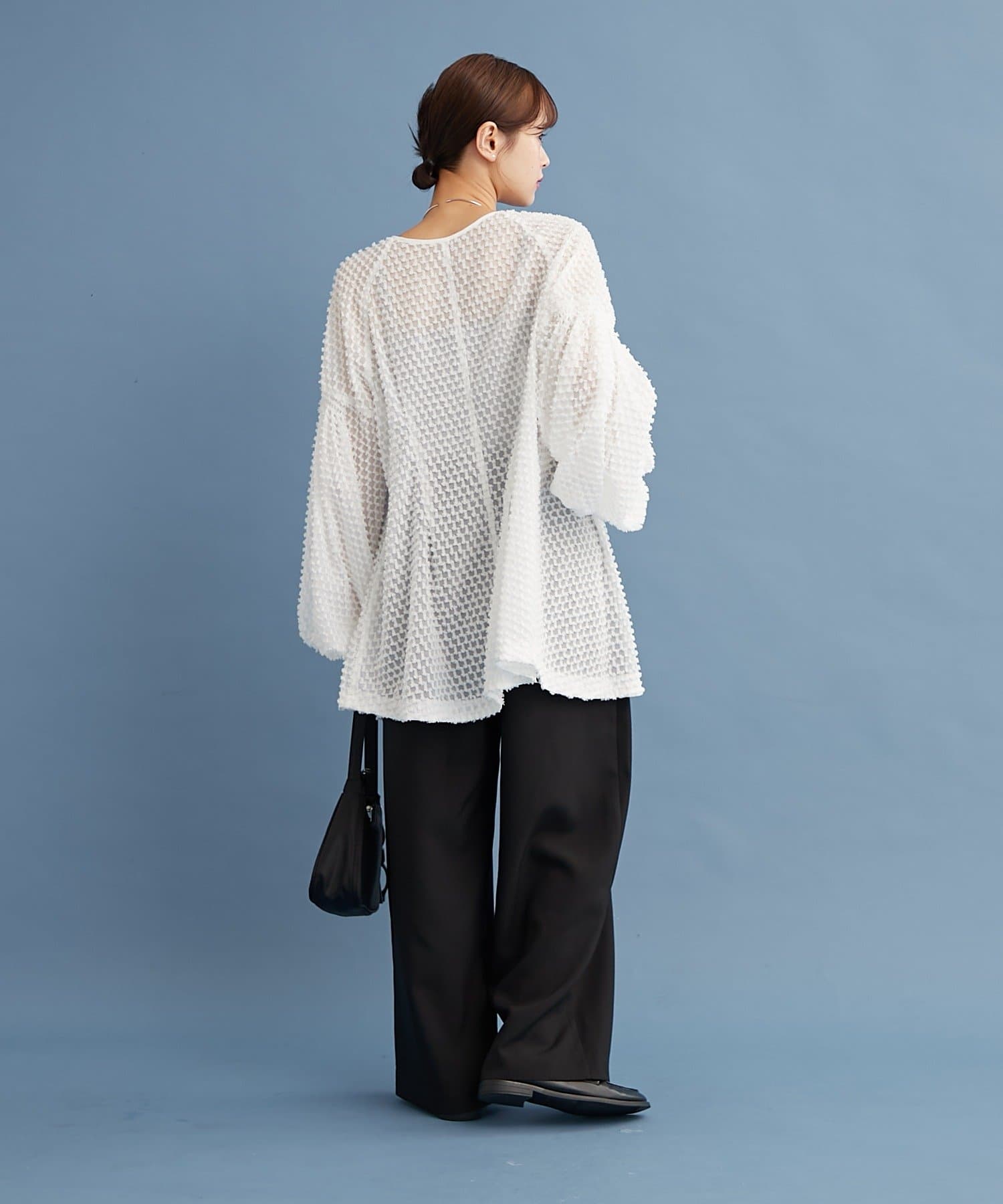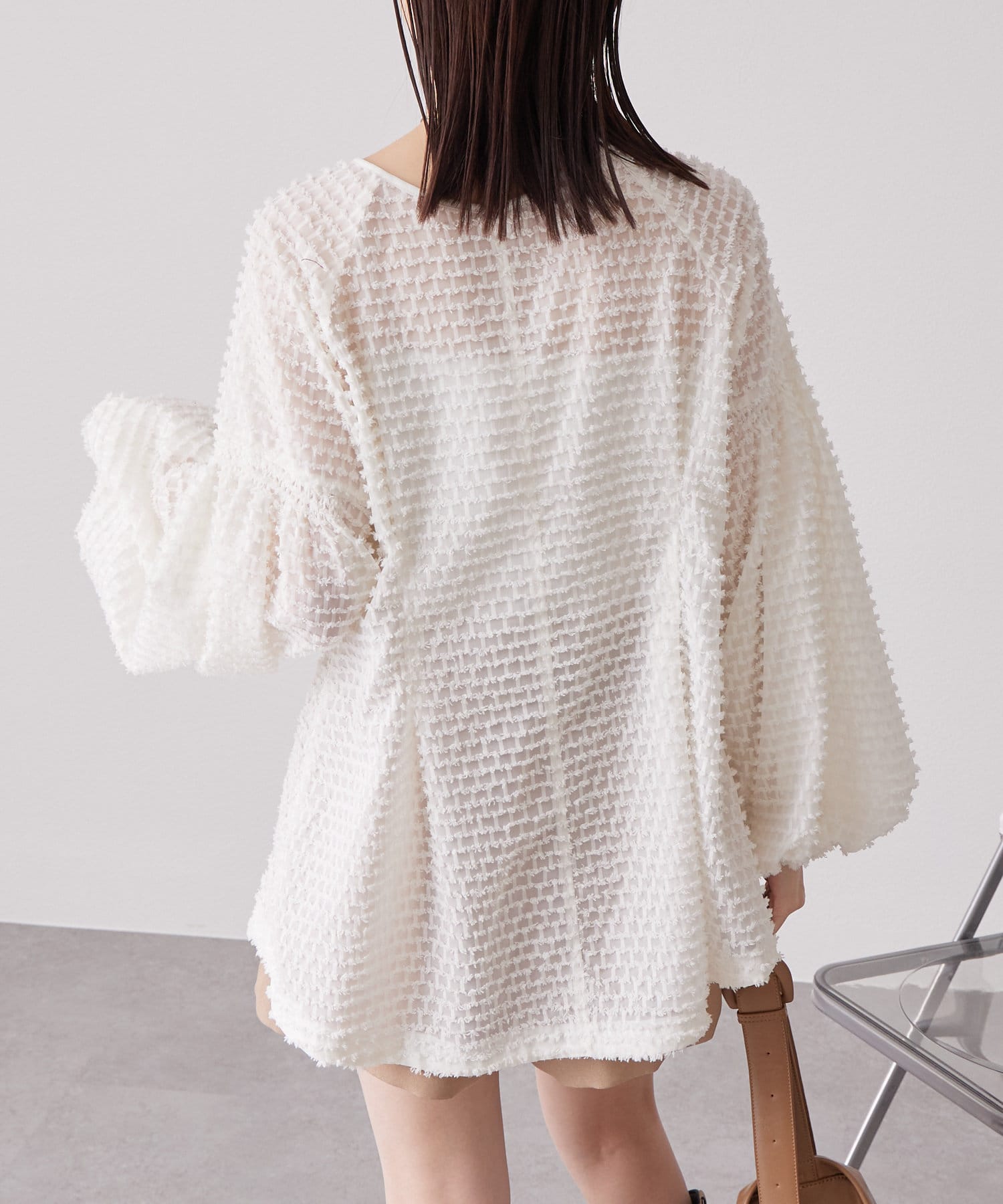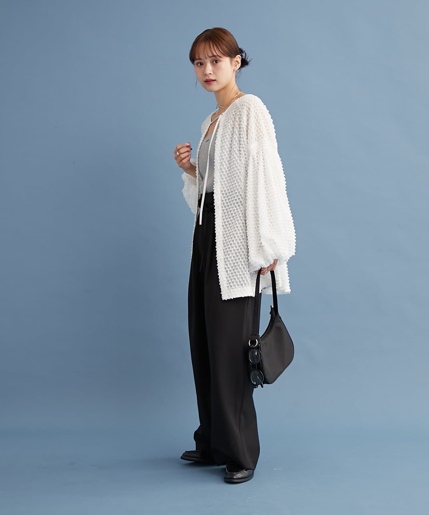 ・表面感のあるフリンジとたぽっと程よいボリューム感のあるお袖が女性らしい柔らかな印象に◎