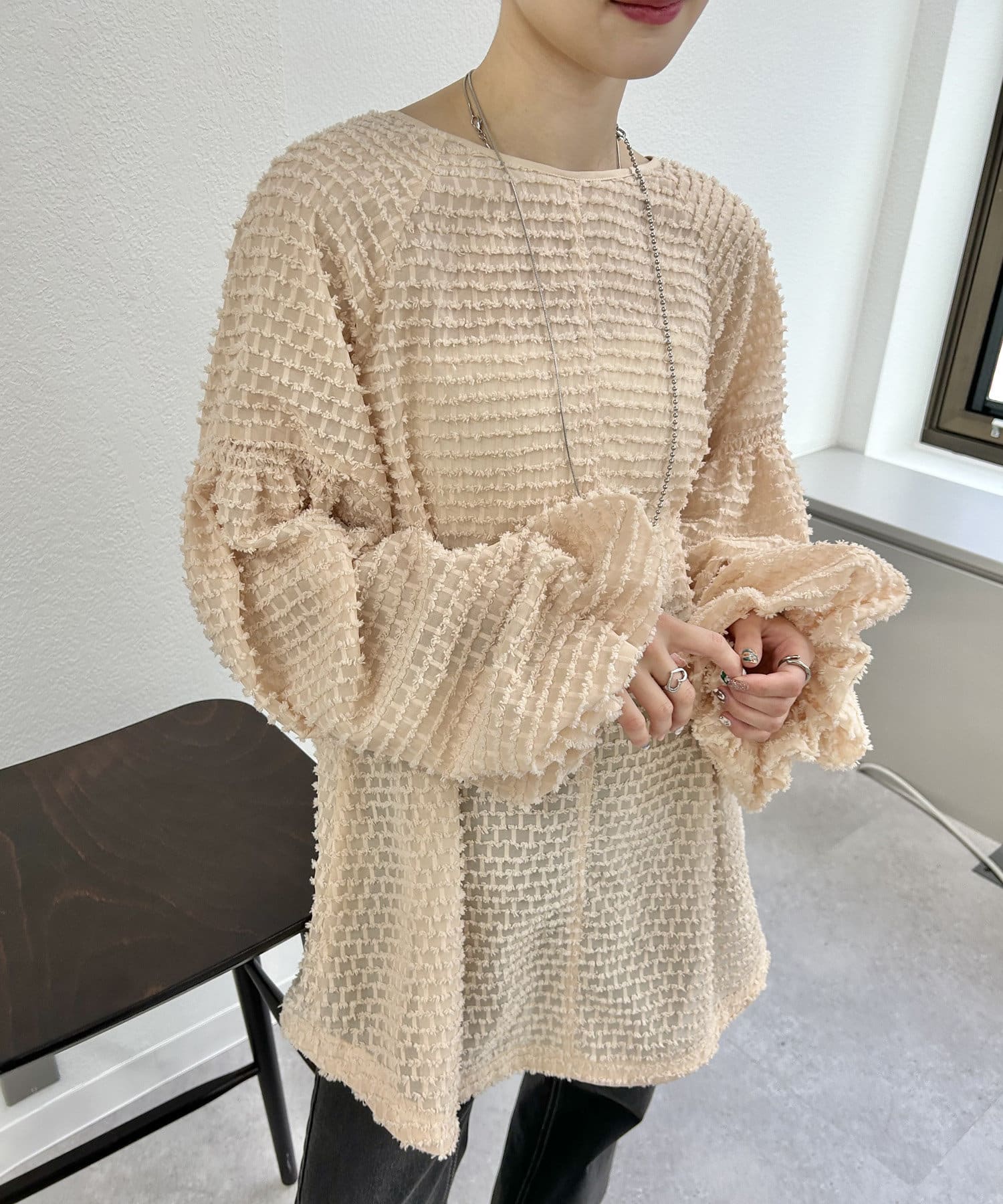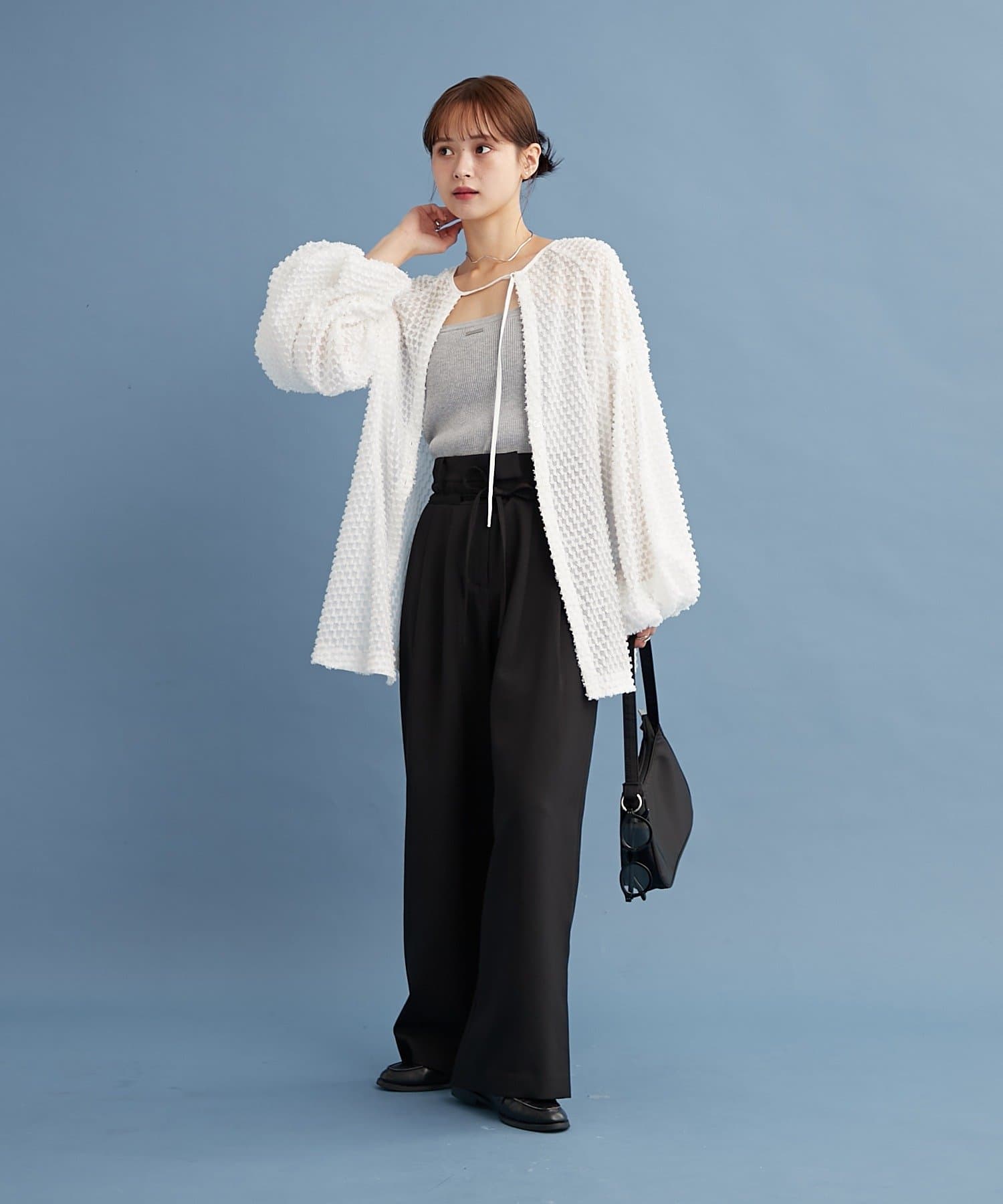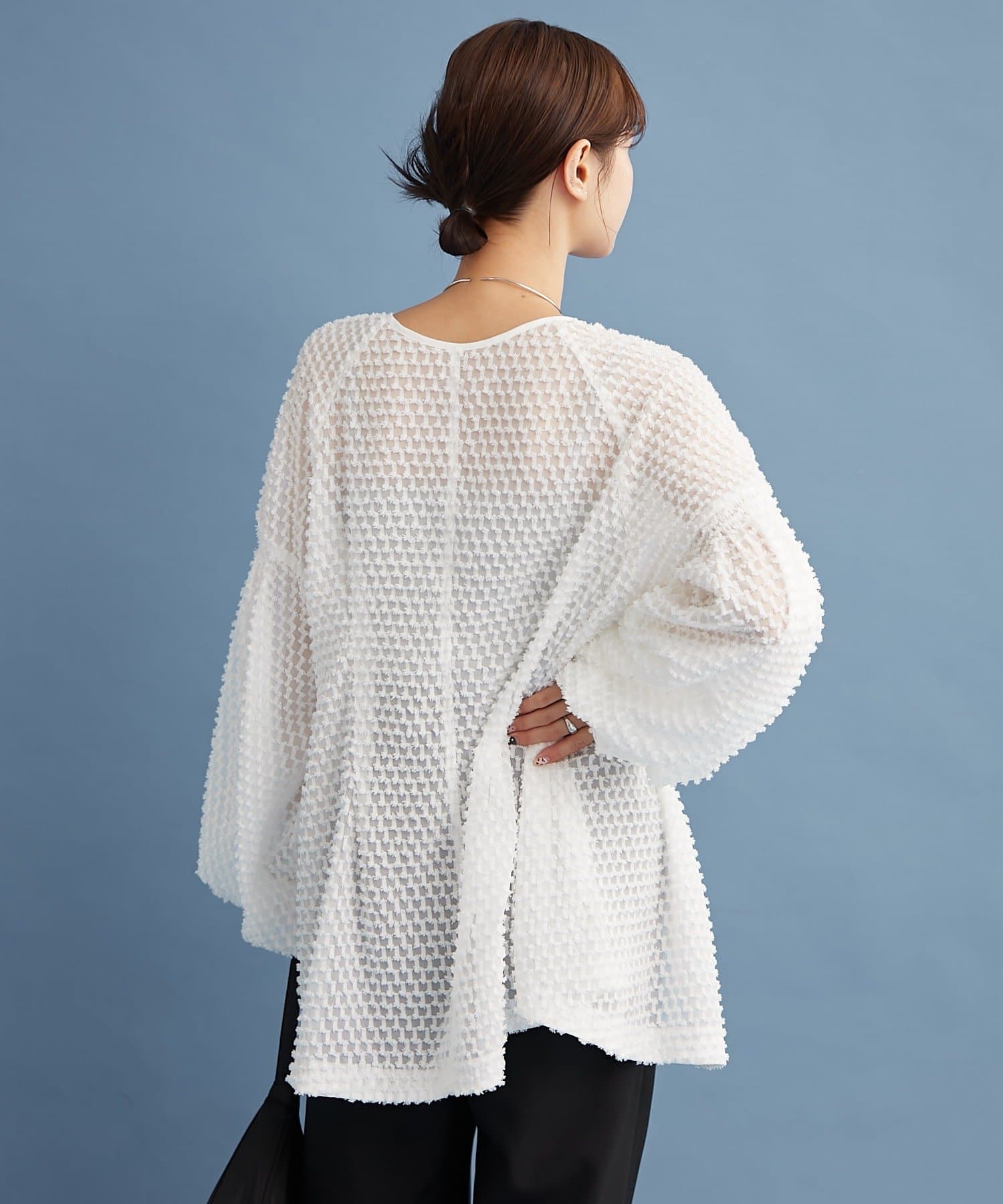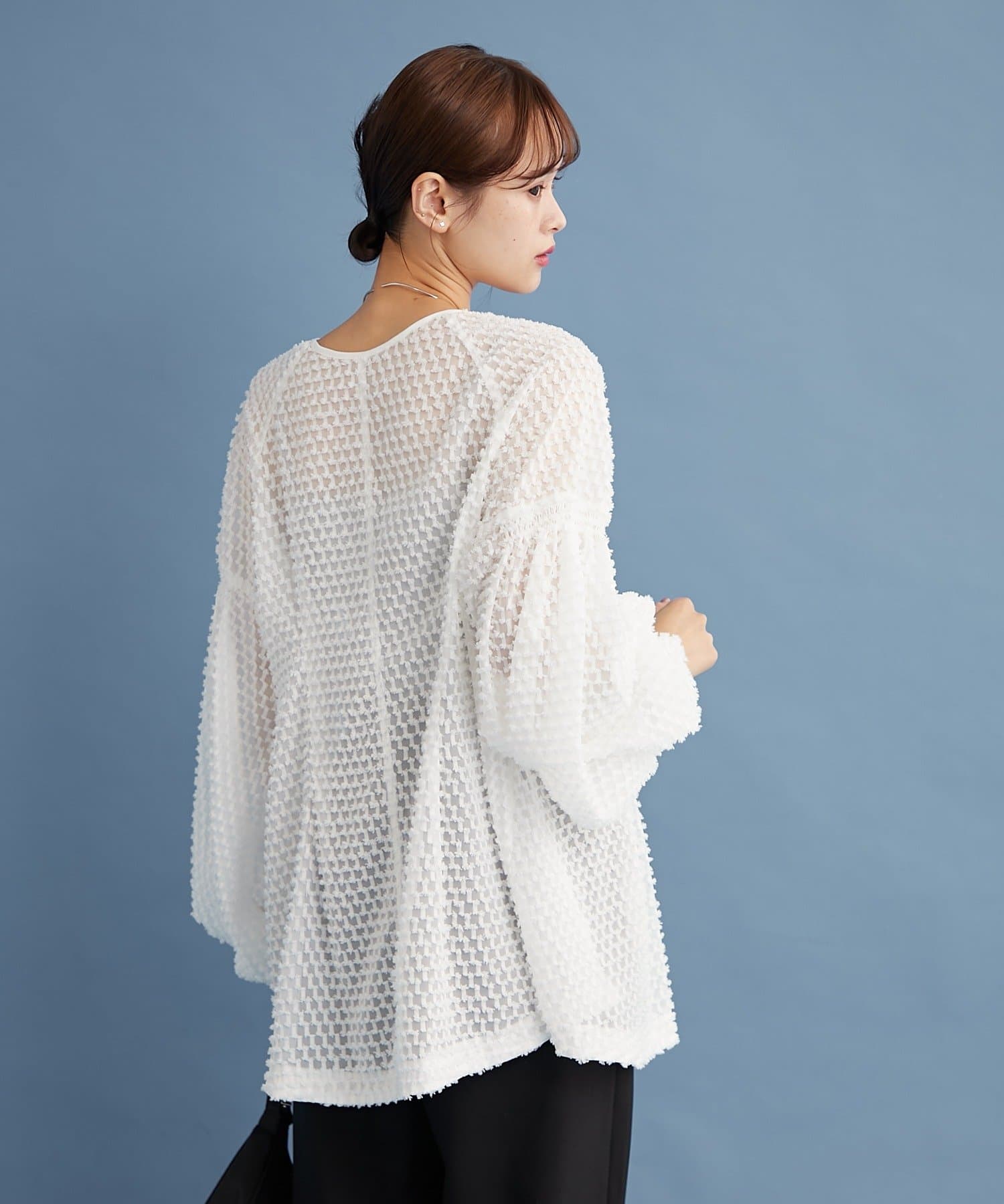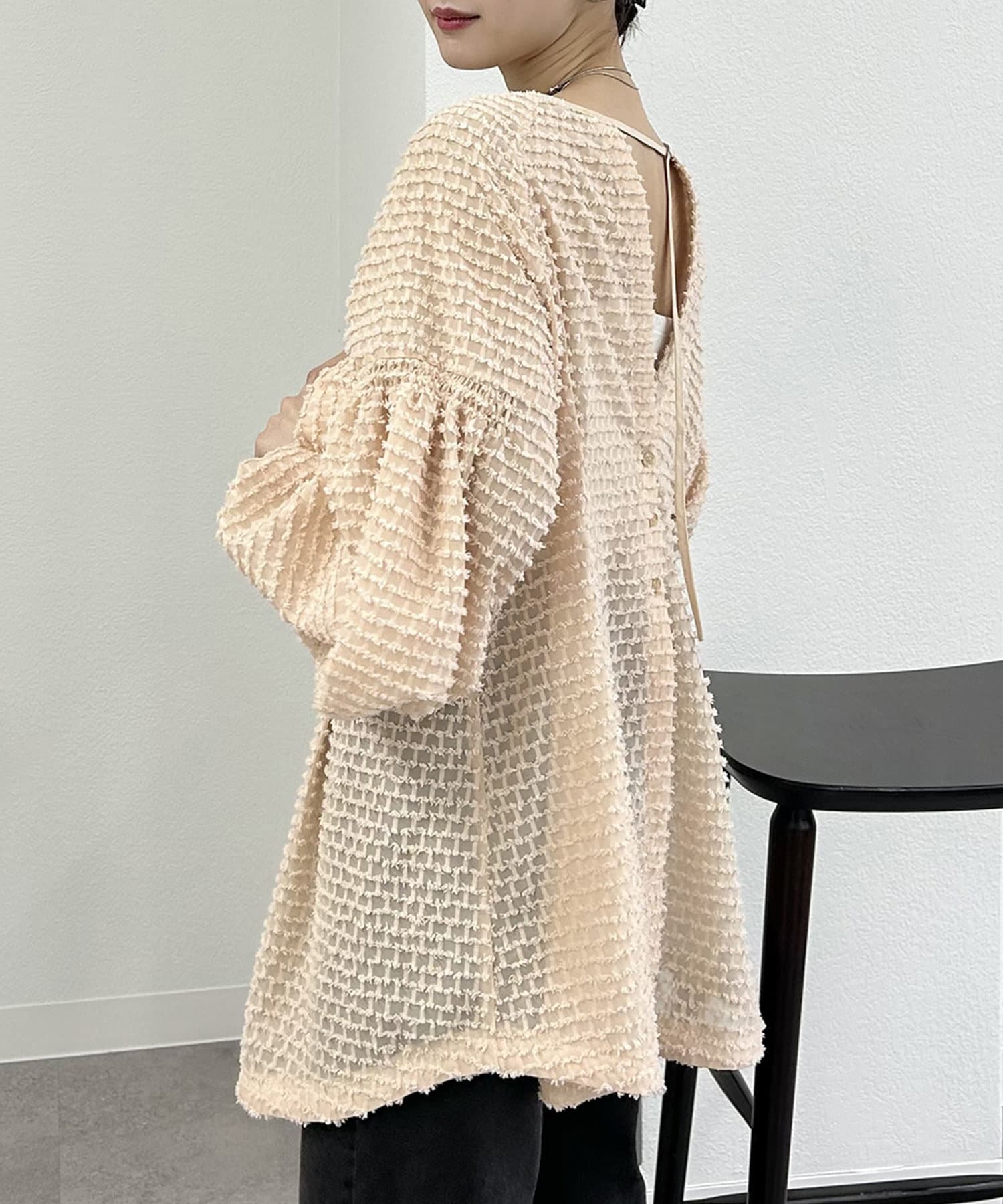 ・表面感のあるフリンジとたぽっと程よいボリューム感のあるお袖が女性らしい柔らかな印象に◎