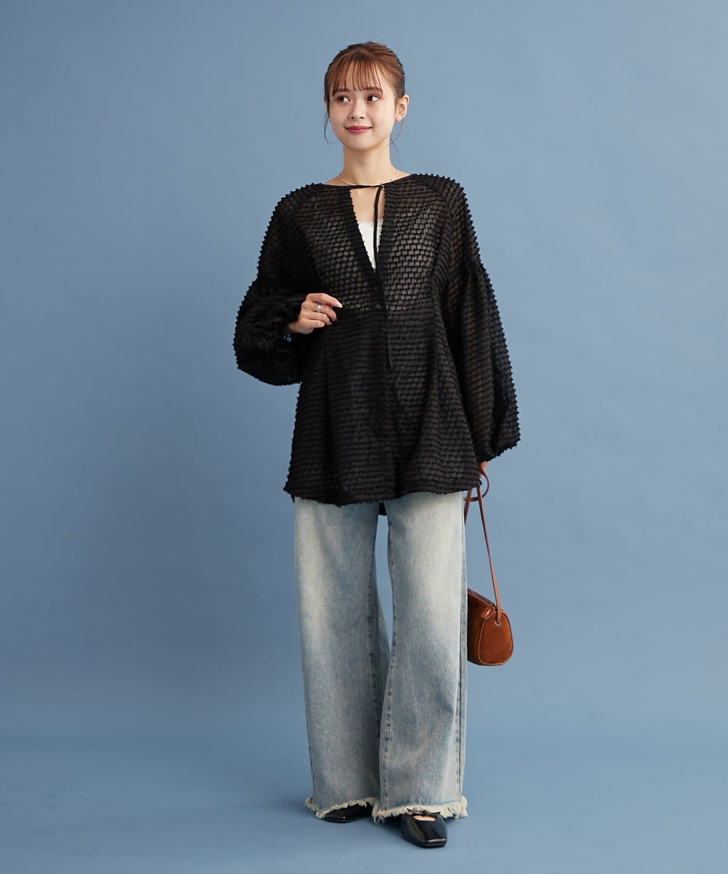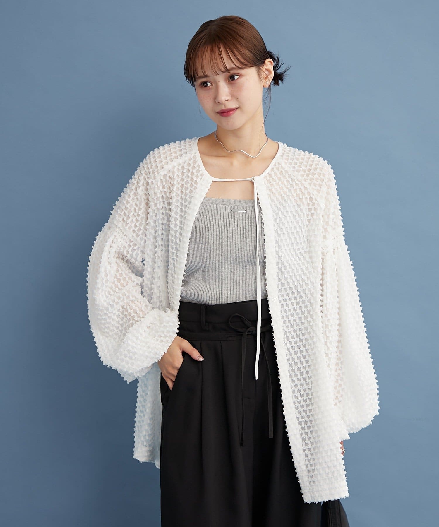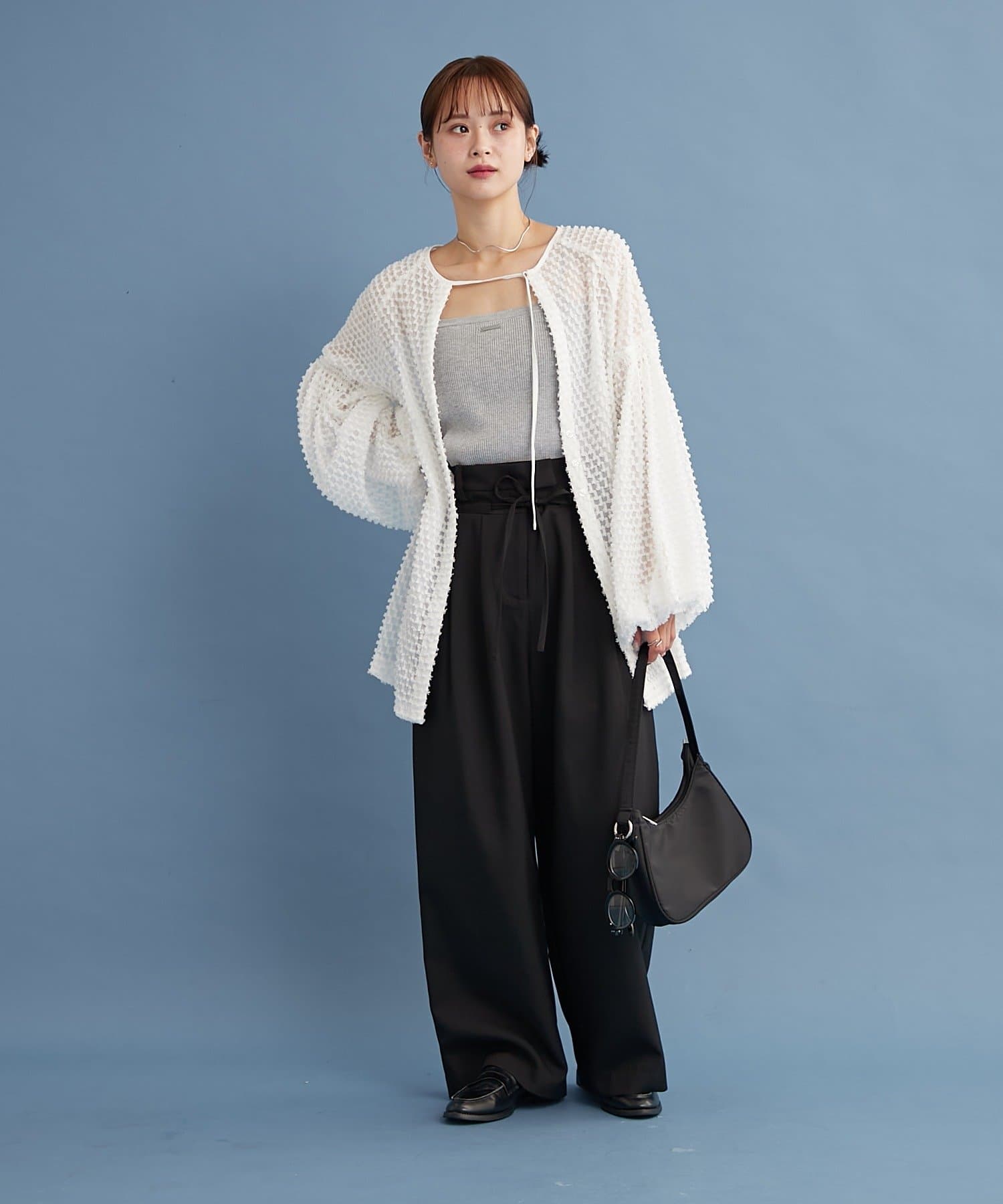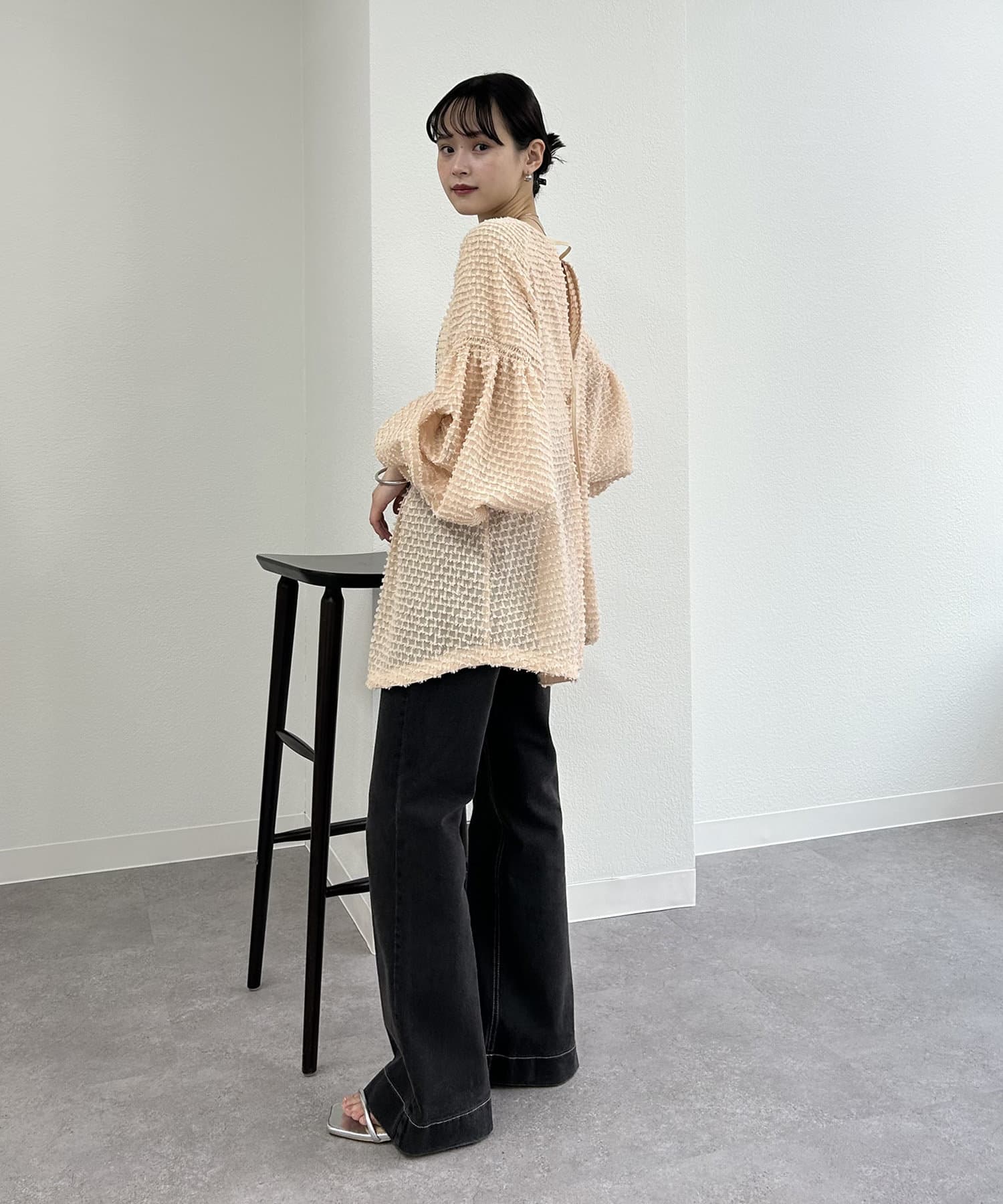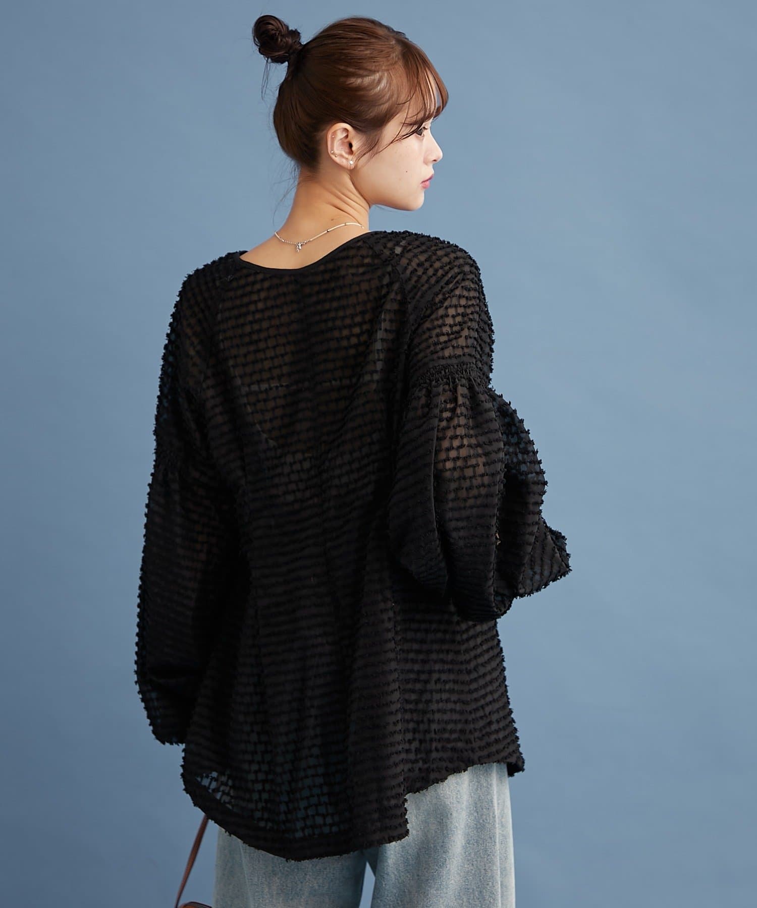 ・表面感のあるフリンジとたぽっと程よいボリューム感のあるお袖が女性らしい柔らかな印象に◎