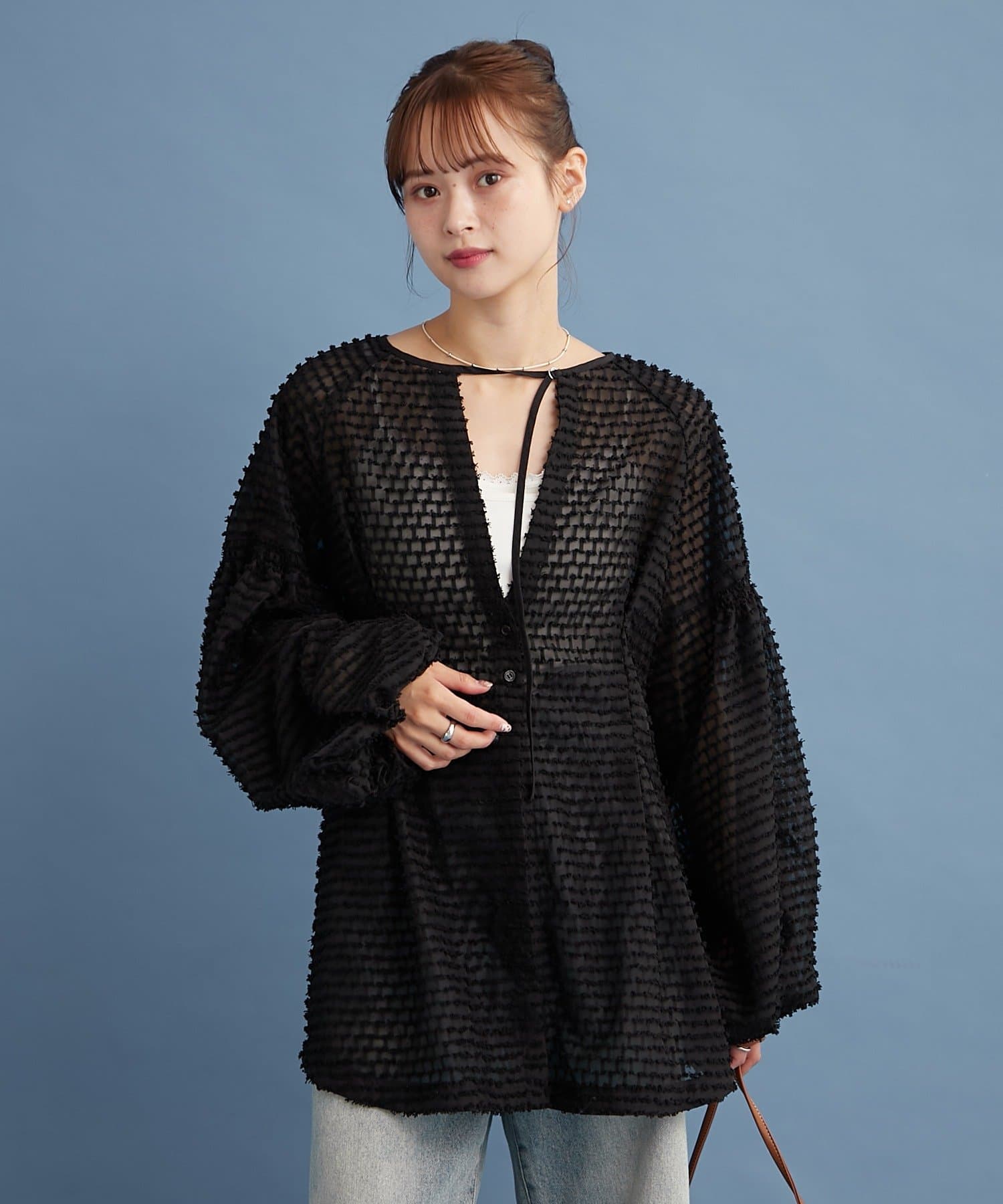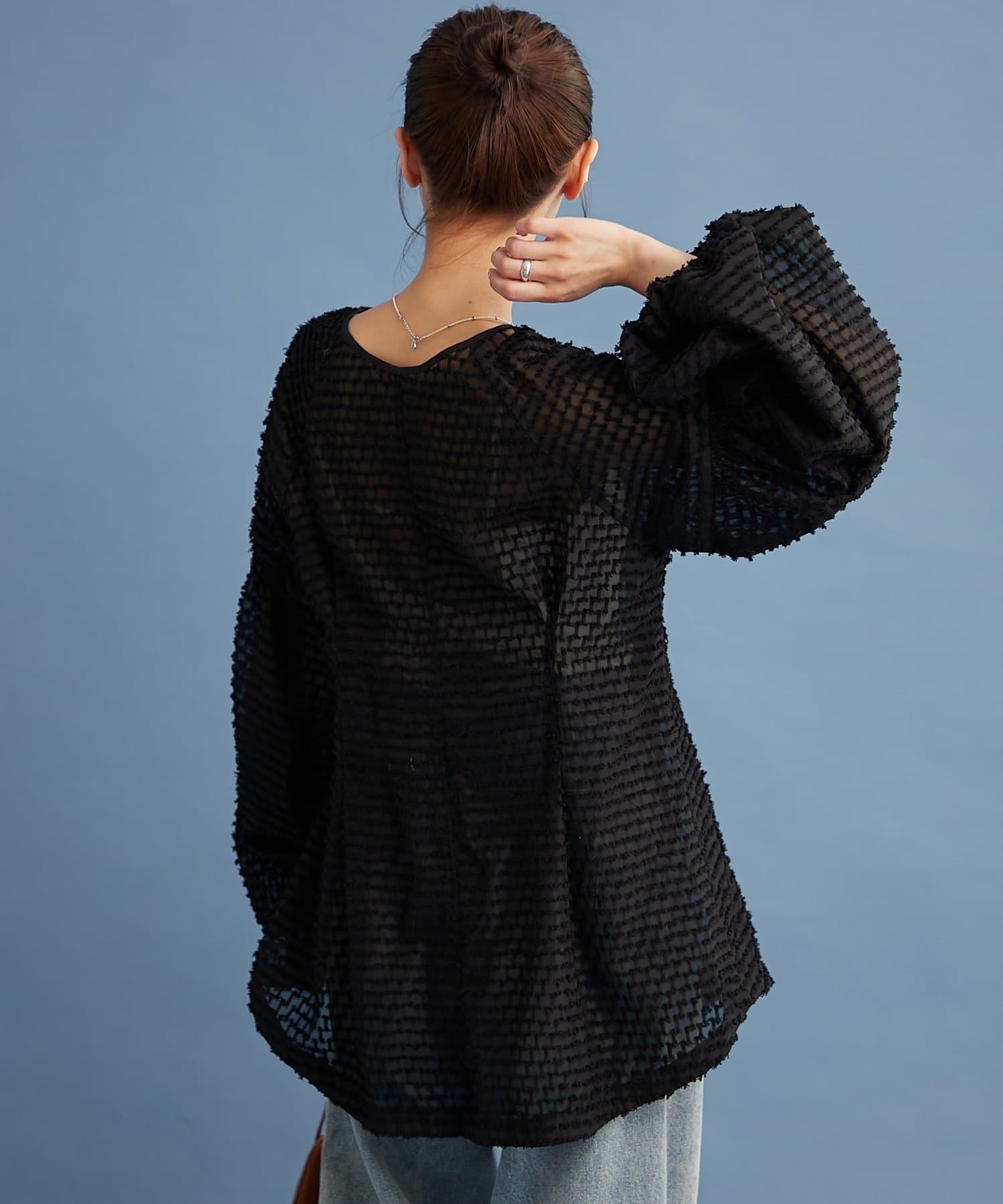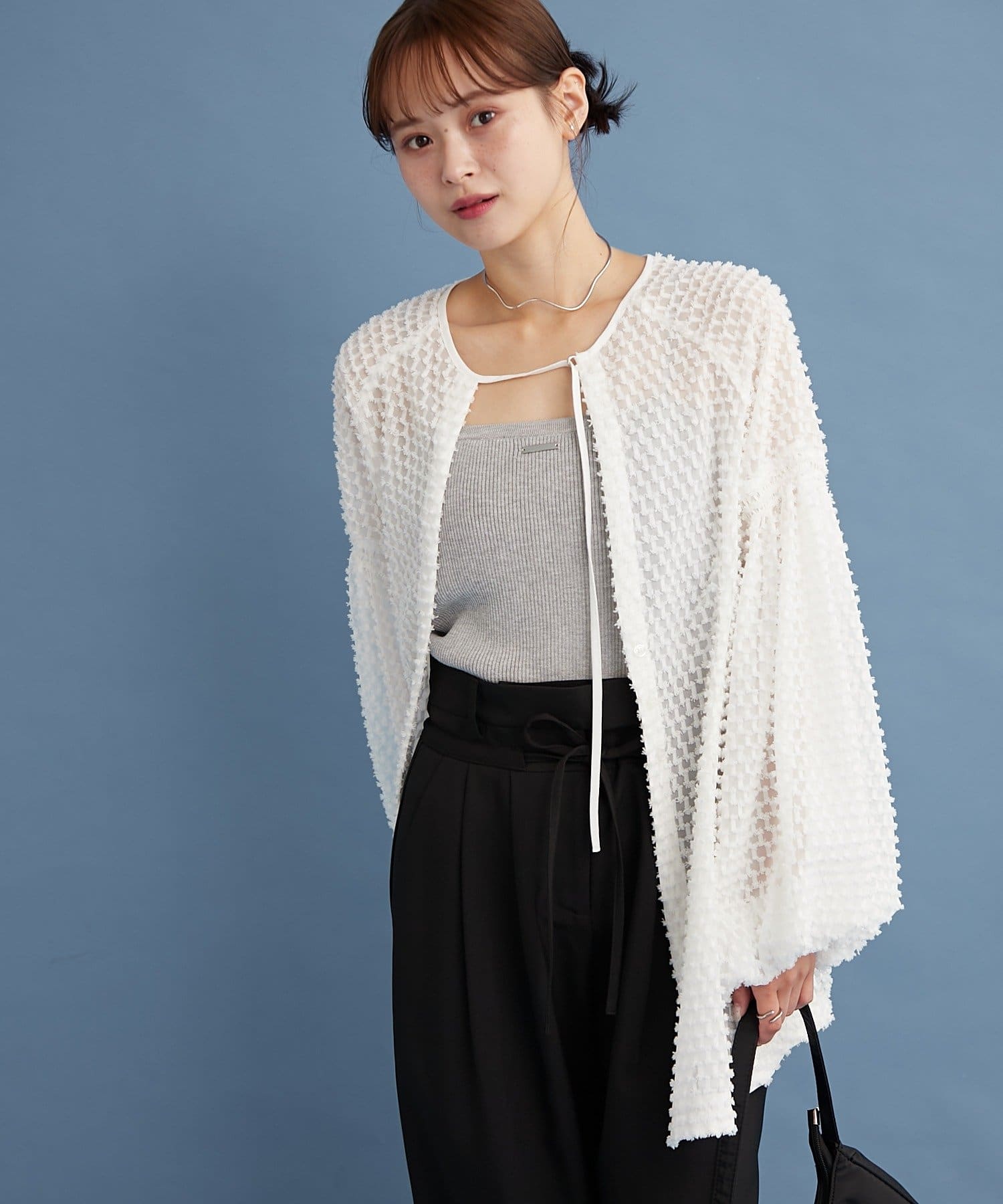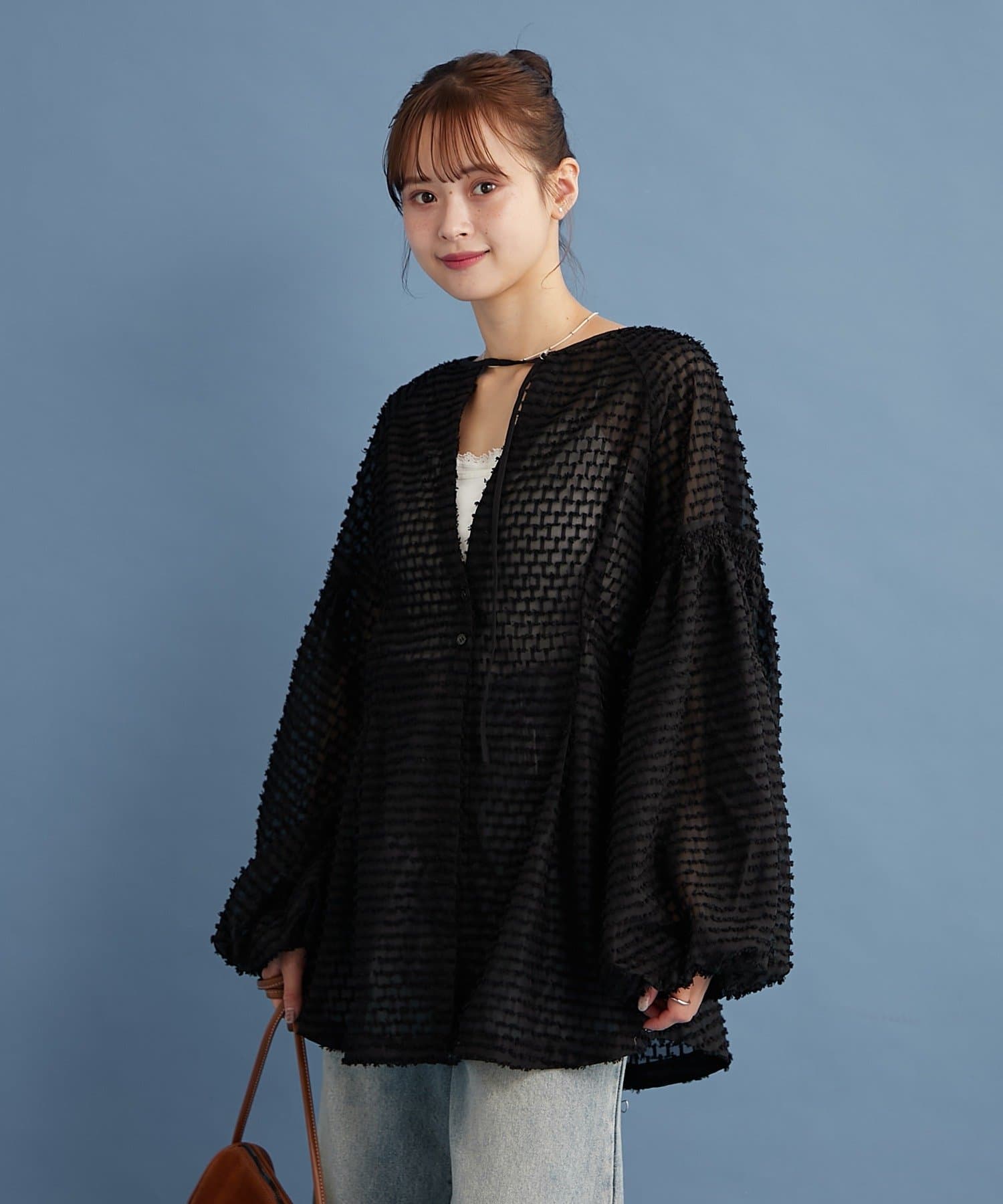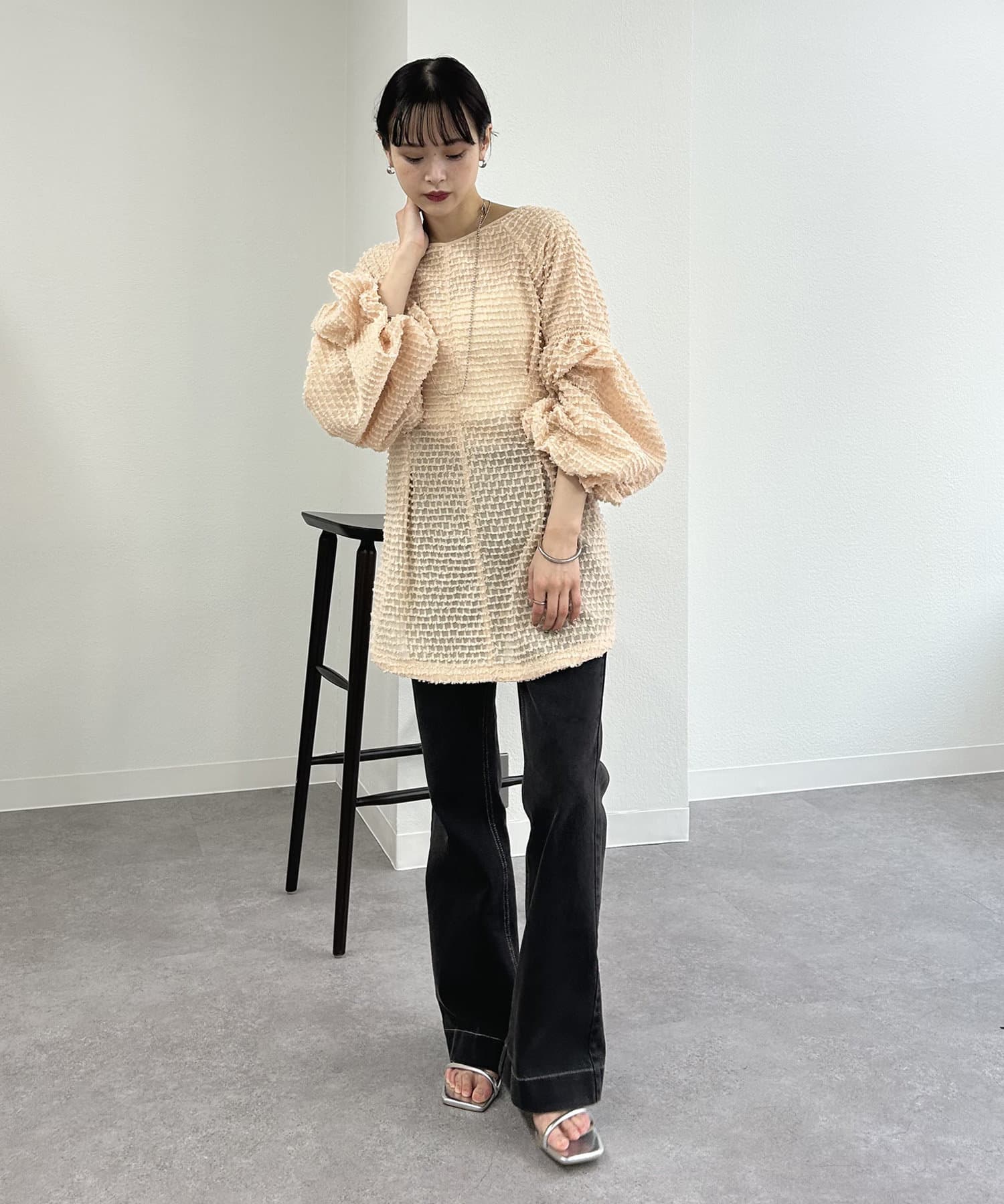 ・表面感のあるフリンジとたぽっと程よいボリューム感のあるお袖が女性らしい柔らかな印象に◎