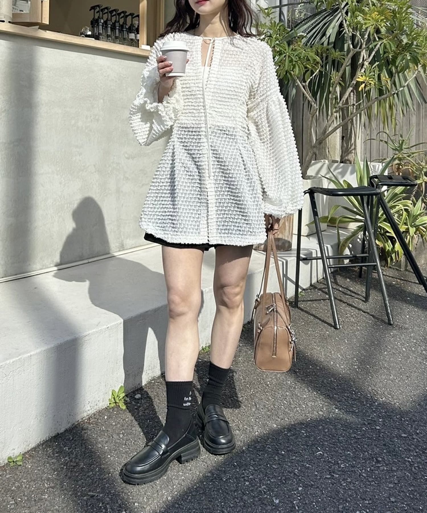 購入場所:パルクローゼット身長が低いので、ミニ丈だとよりスタイルアップしました。形も透け感も女子っぽくて可愛い。