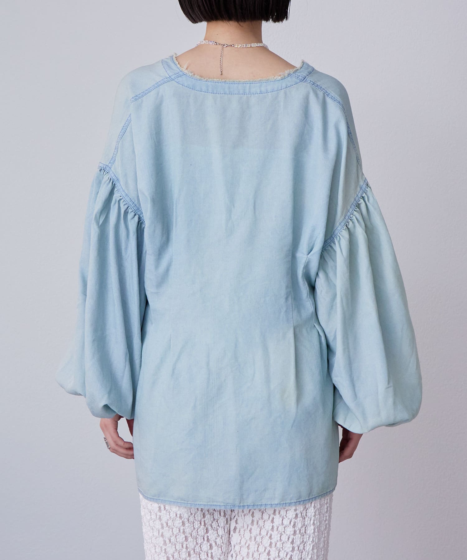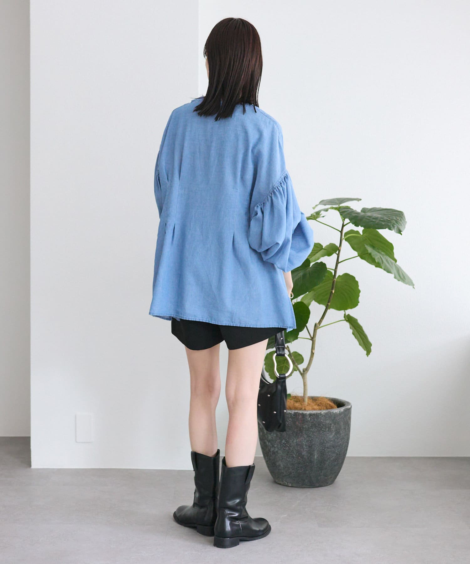 袖はバルーンスリーブで、女性らしい柔らかな印象に。