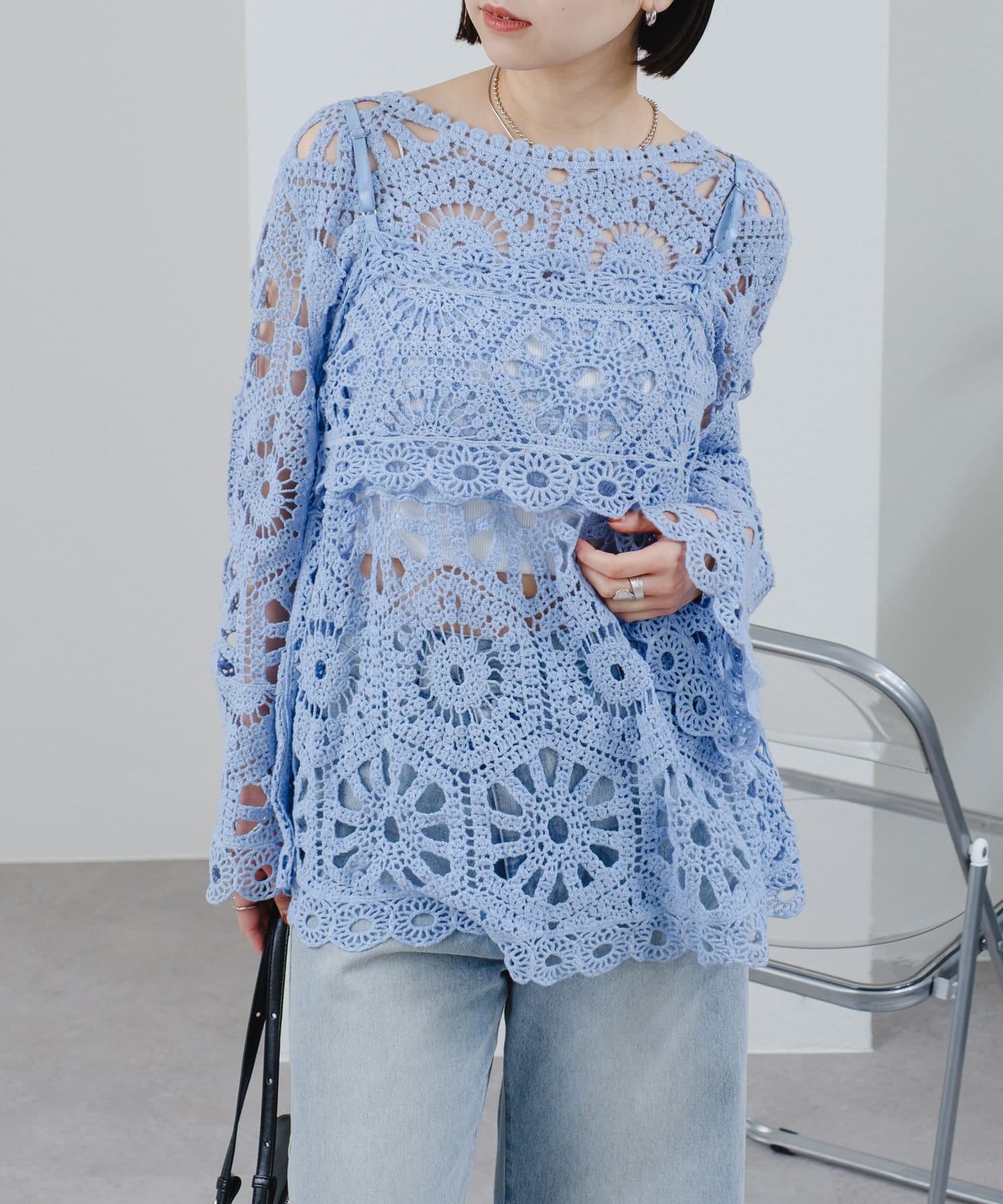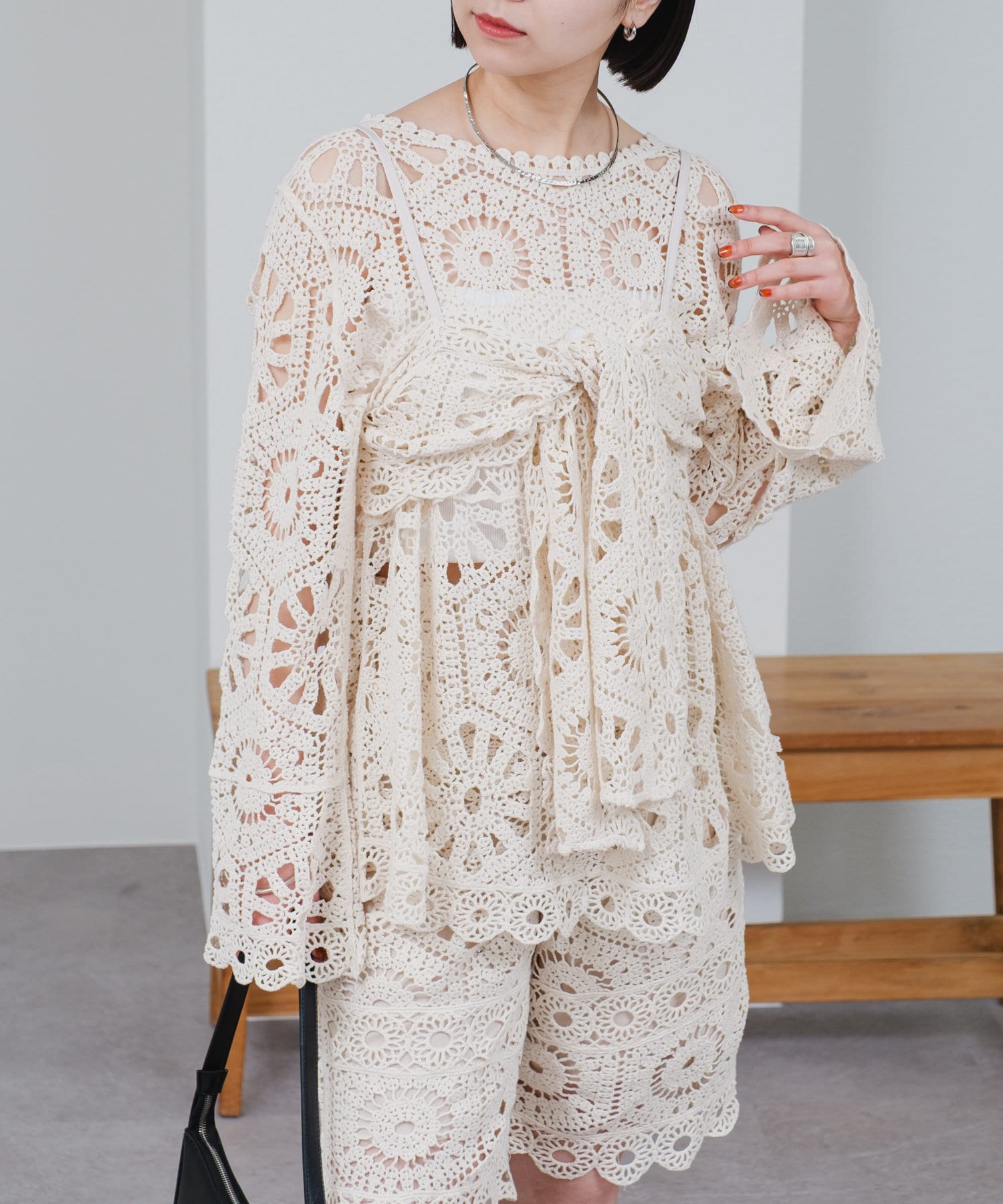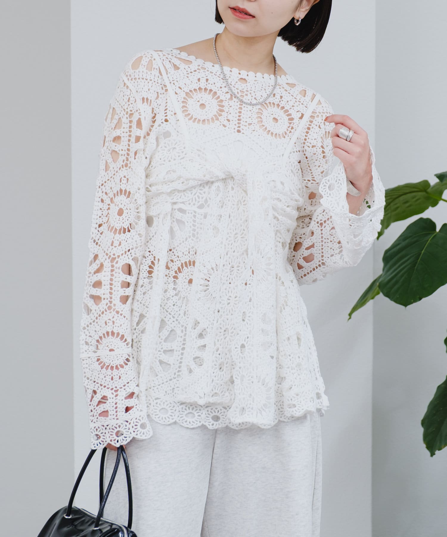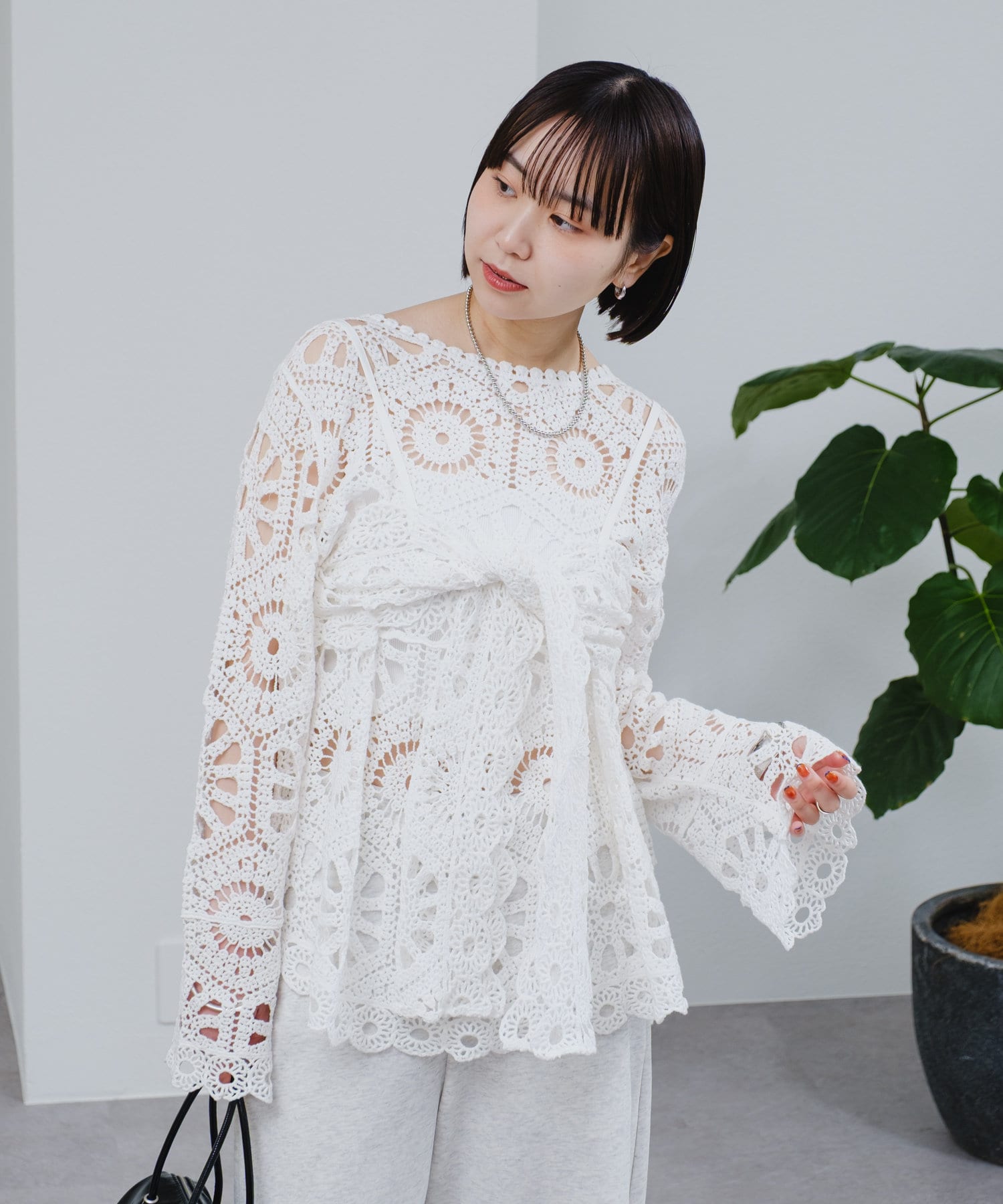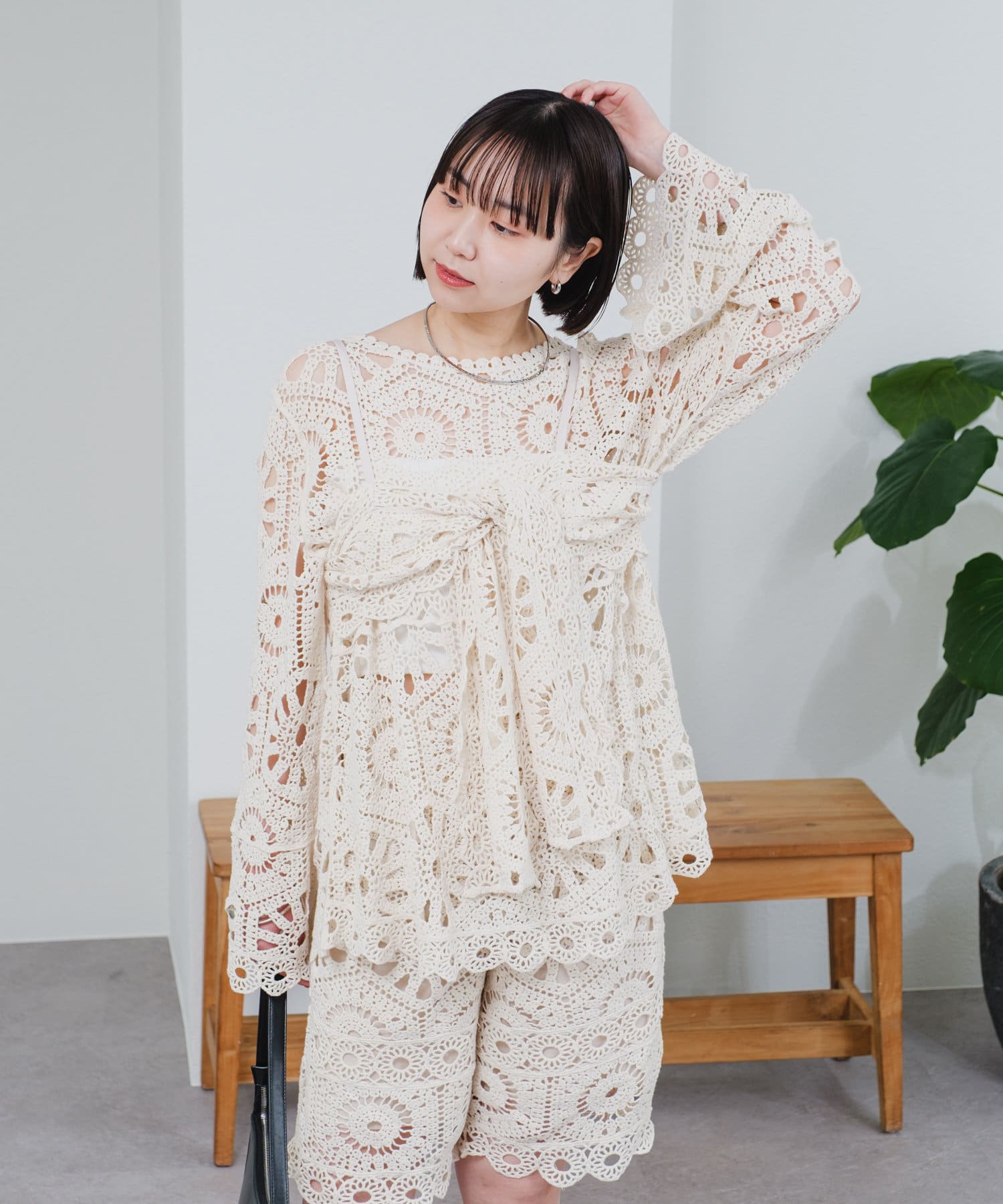 クロシェ編みの透かし模様が可愛い◎ブラウスとビスチェのSETアイテムが登場!