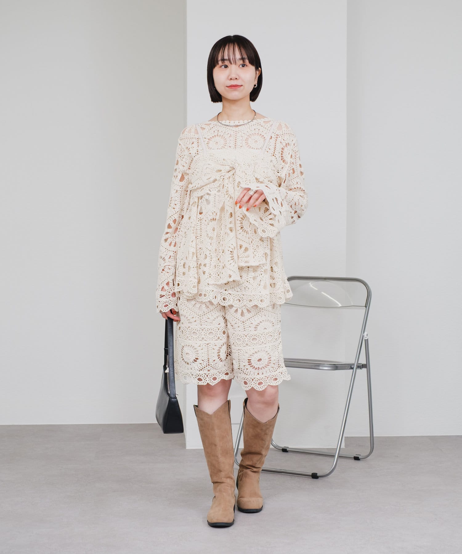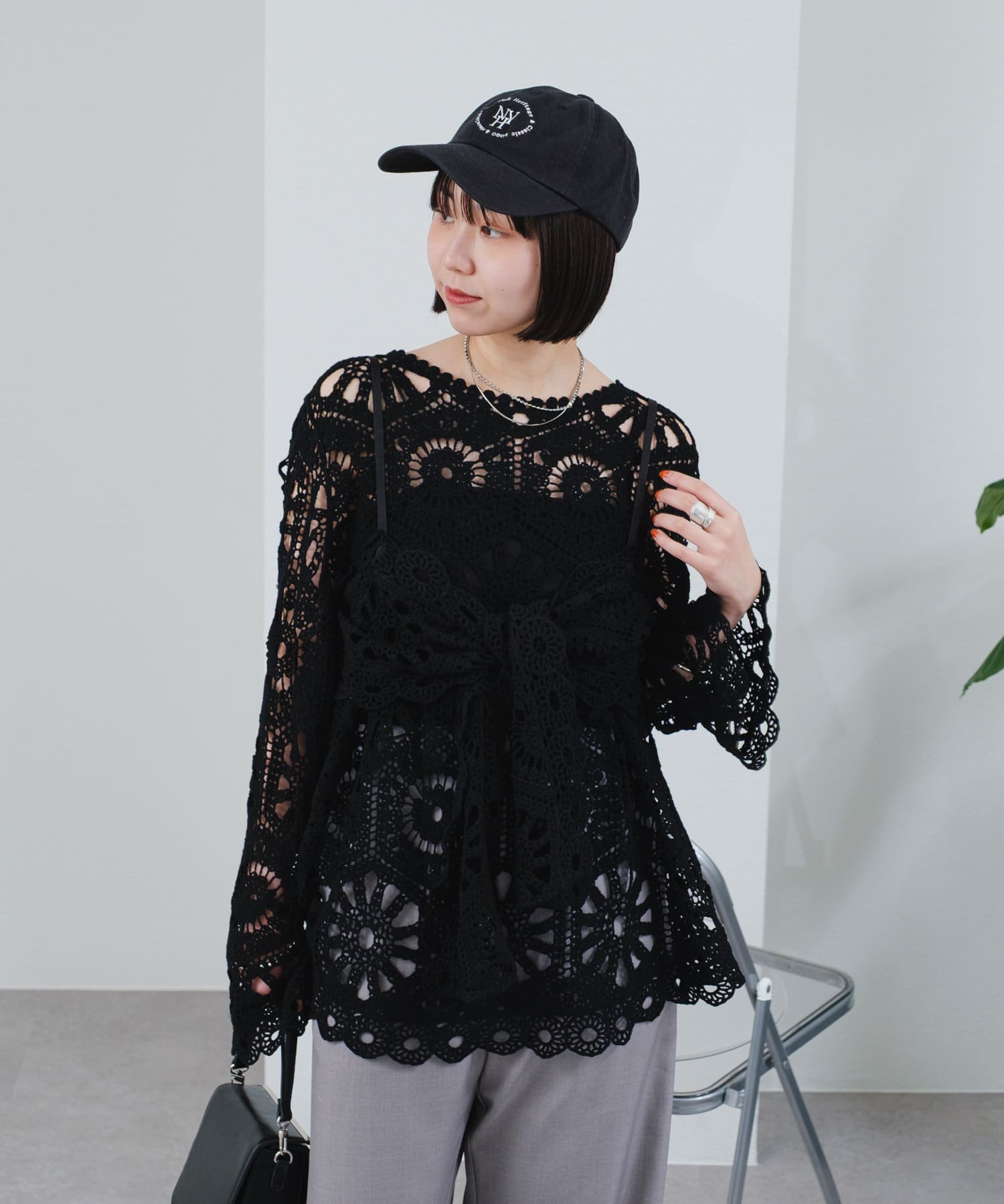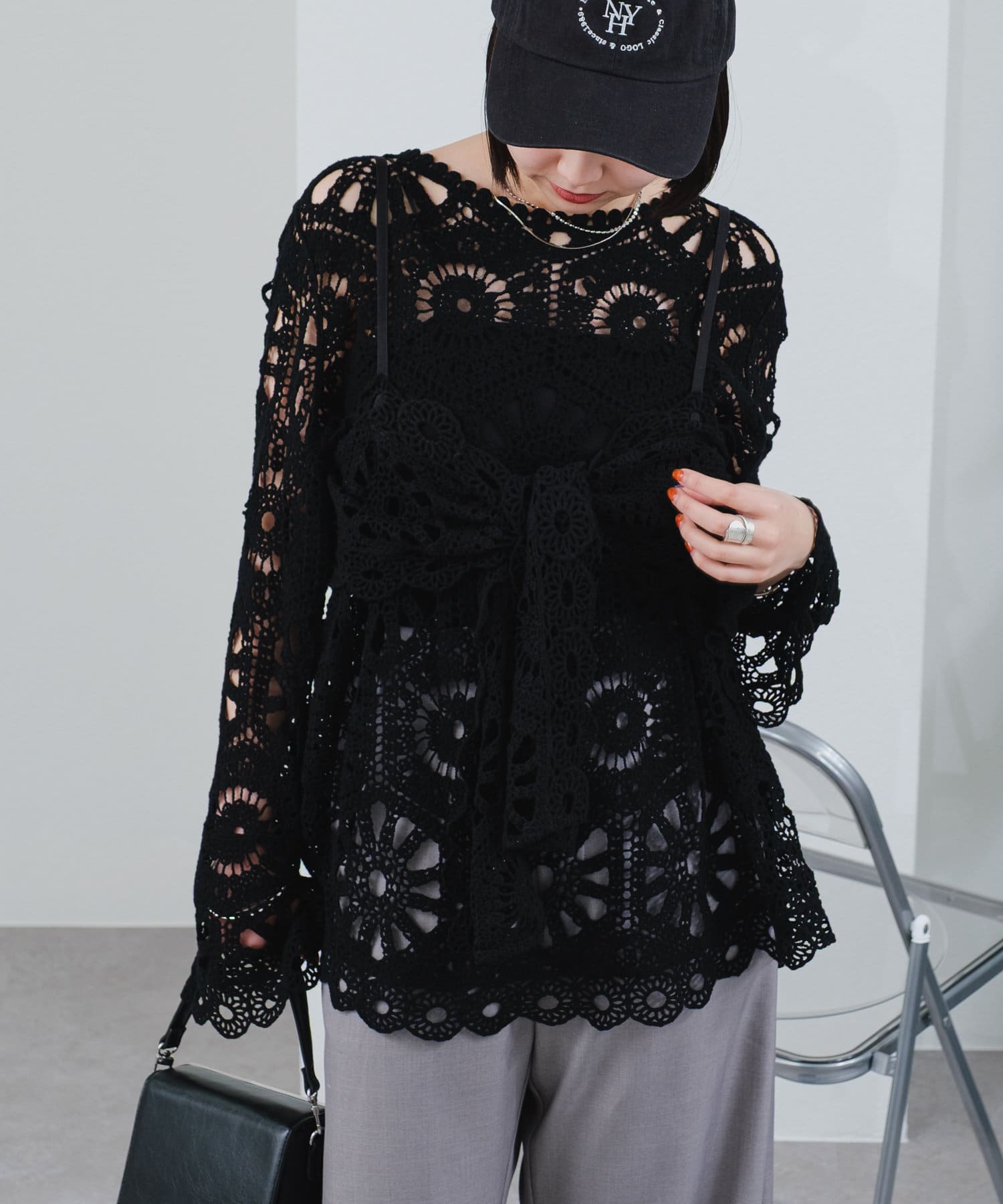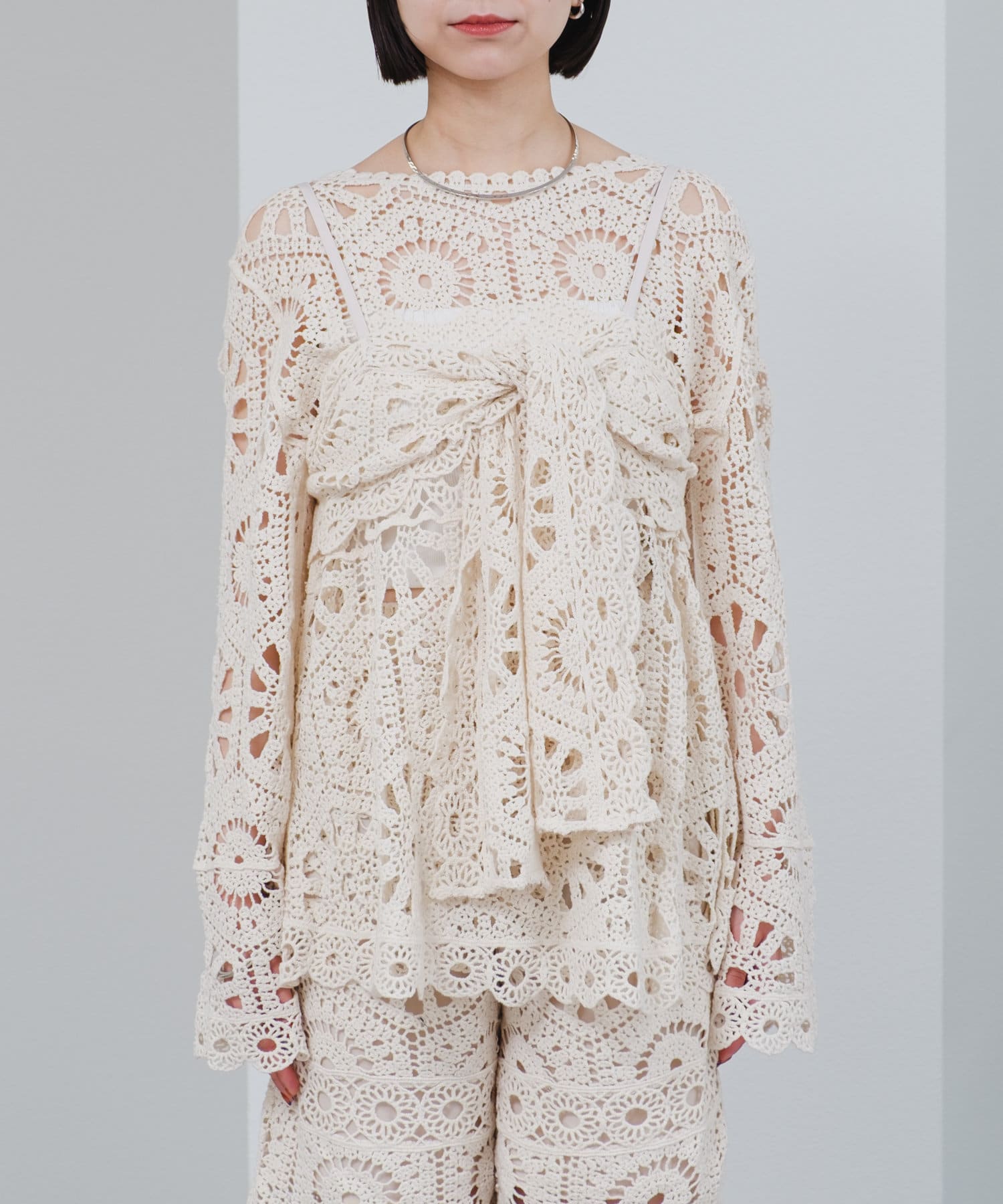 クロシェ編みの透かし模様が可愛い◎ブラウスとビスチェのSETアイテムが登場!
