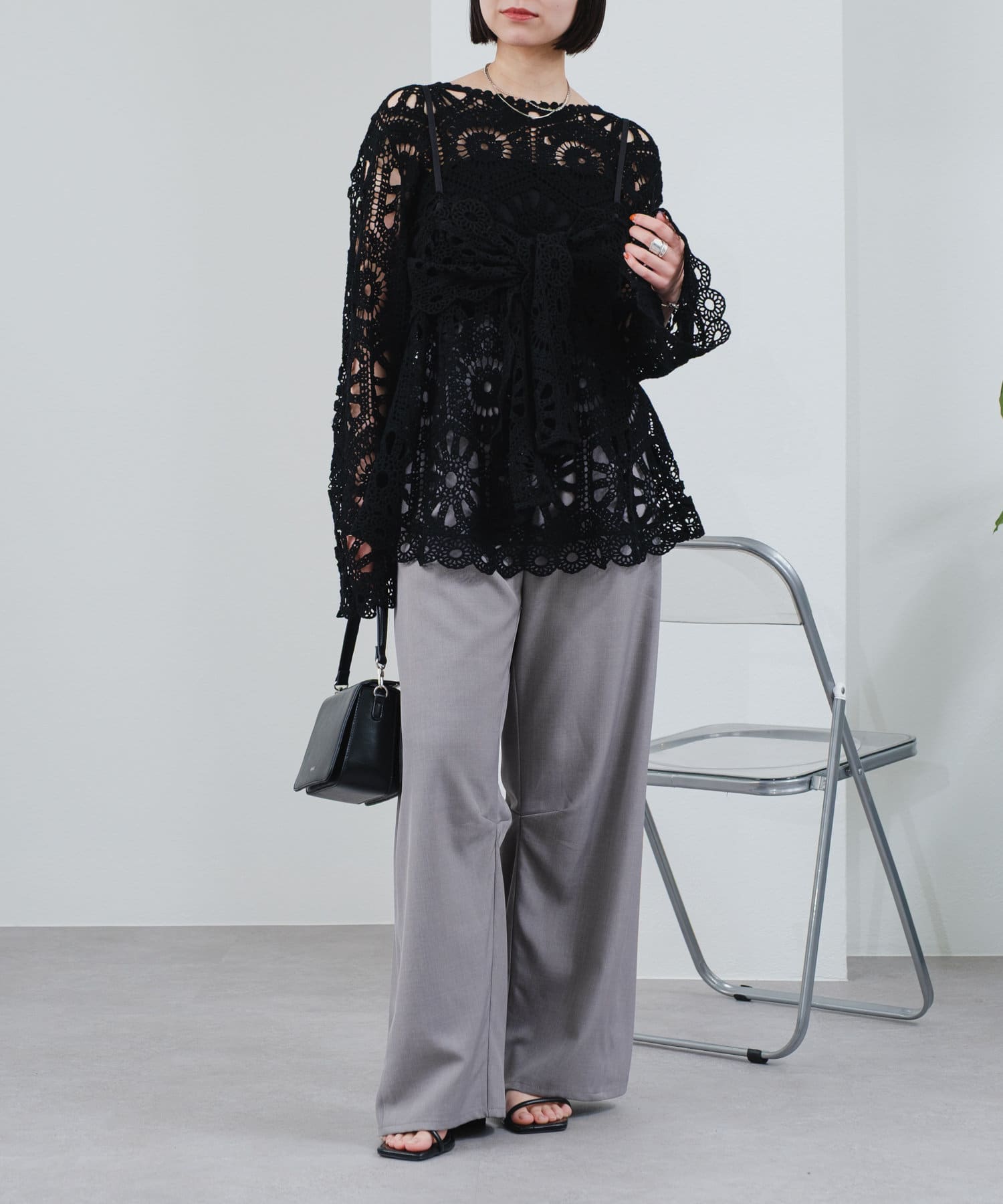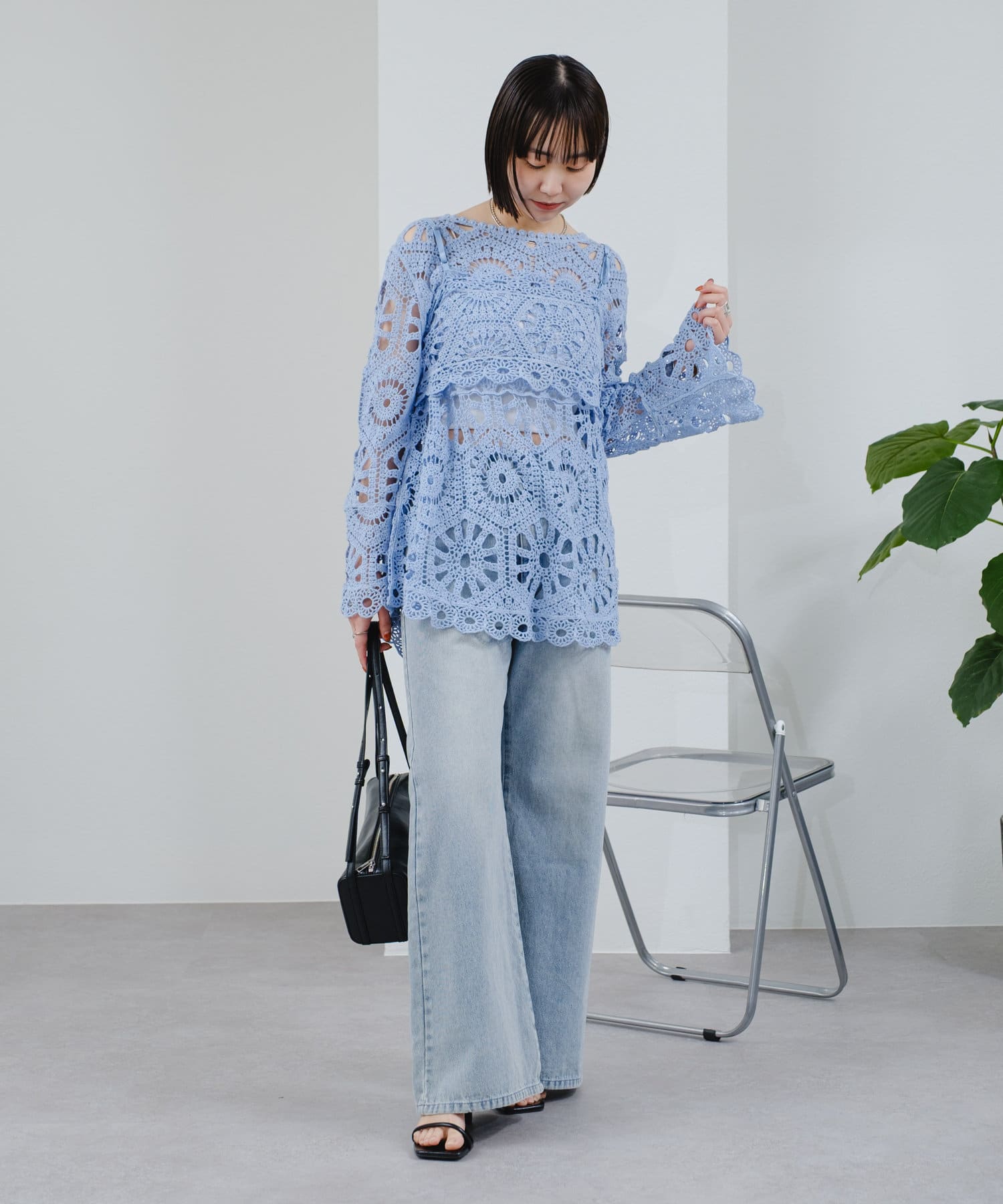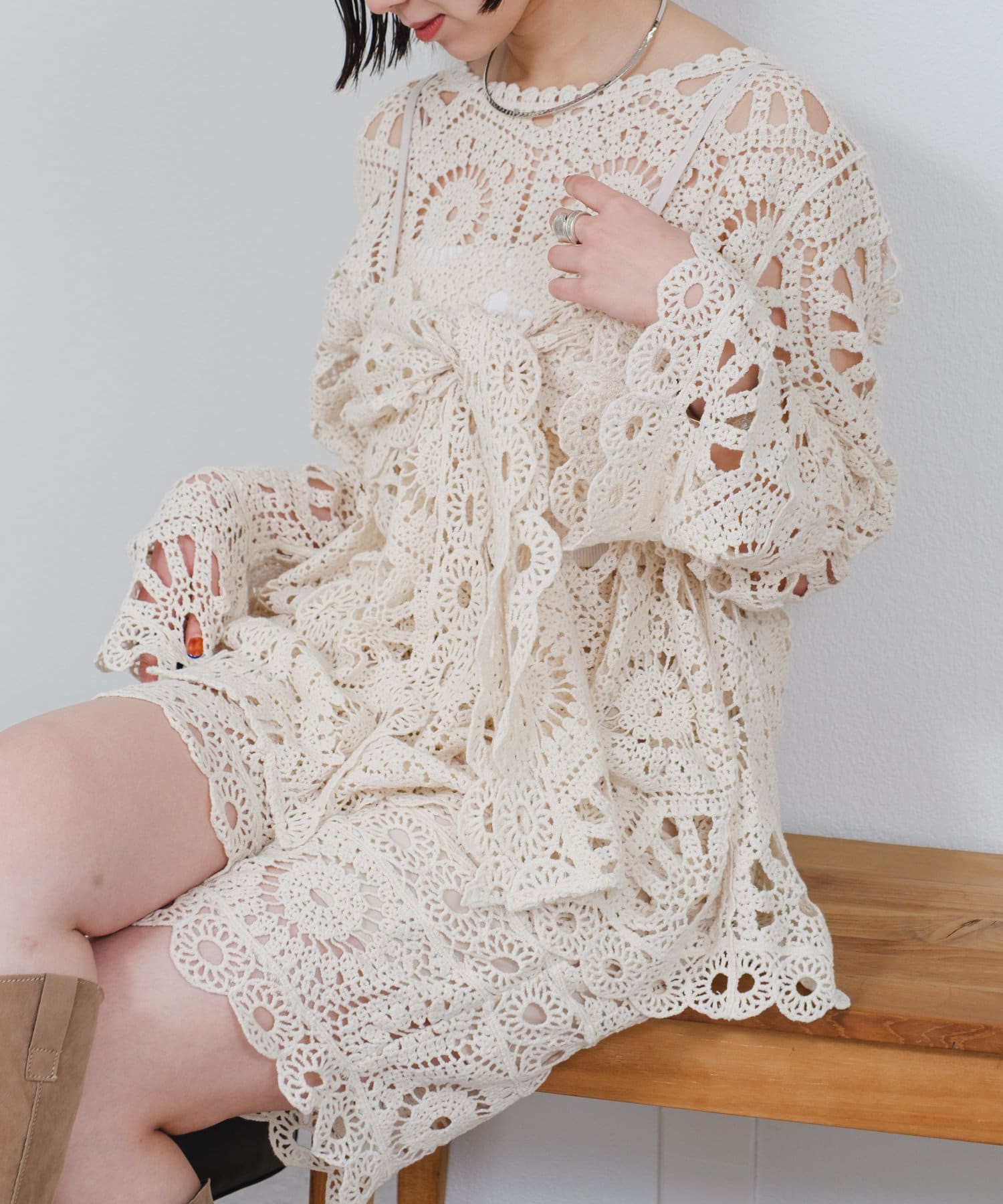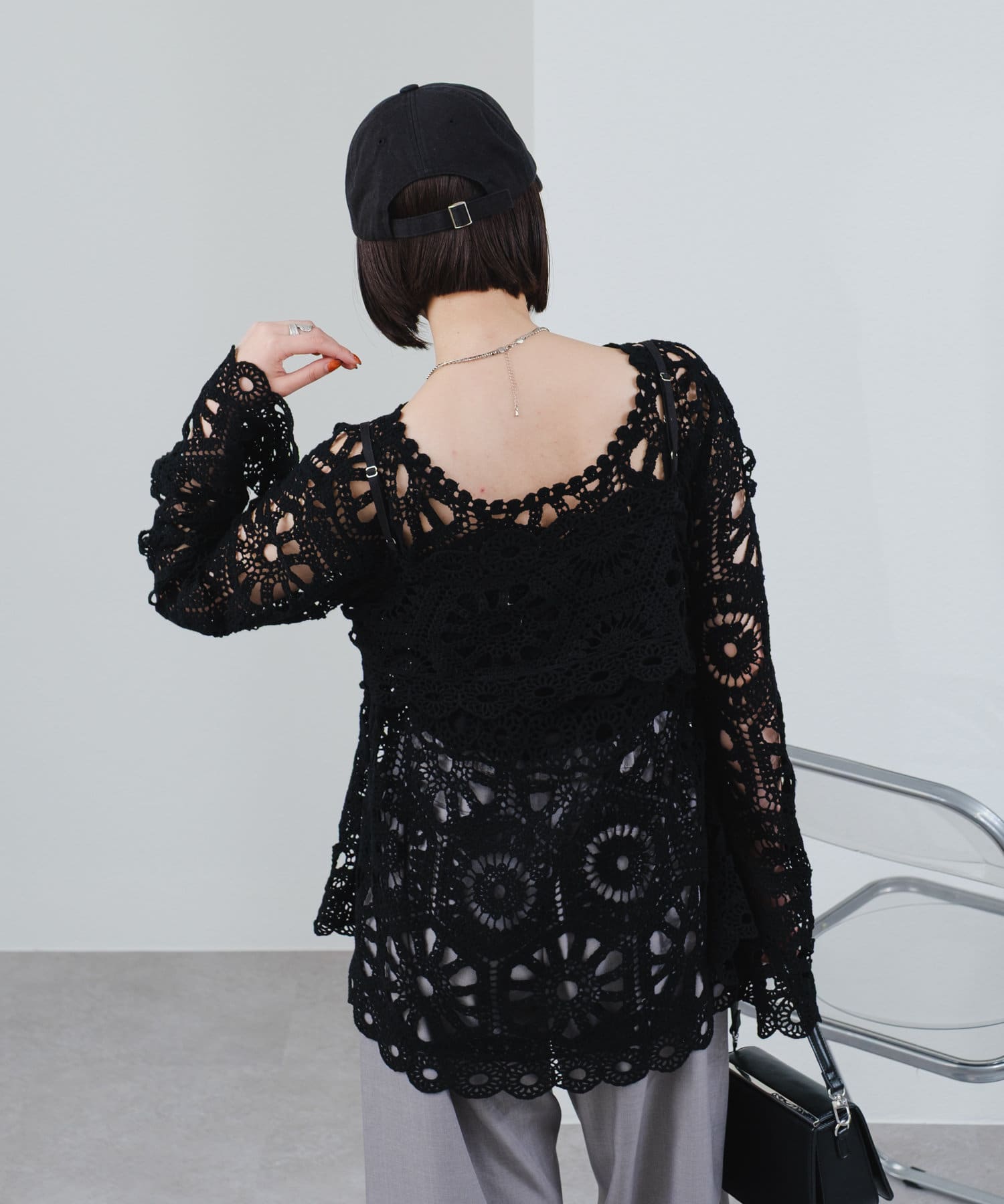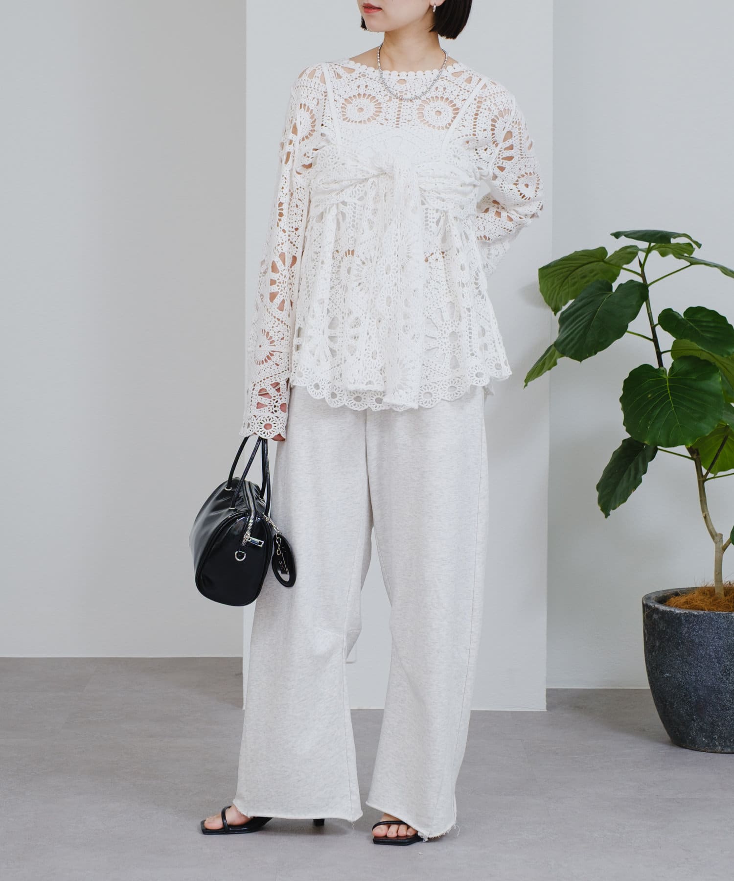 クロシェ編みの透かし模様が可愛い◎ブラウスとビスチェのSETアイテムが登場!