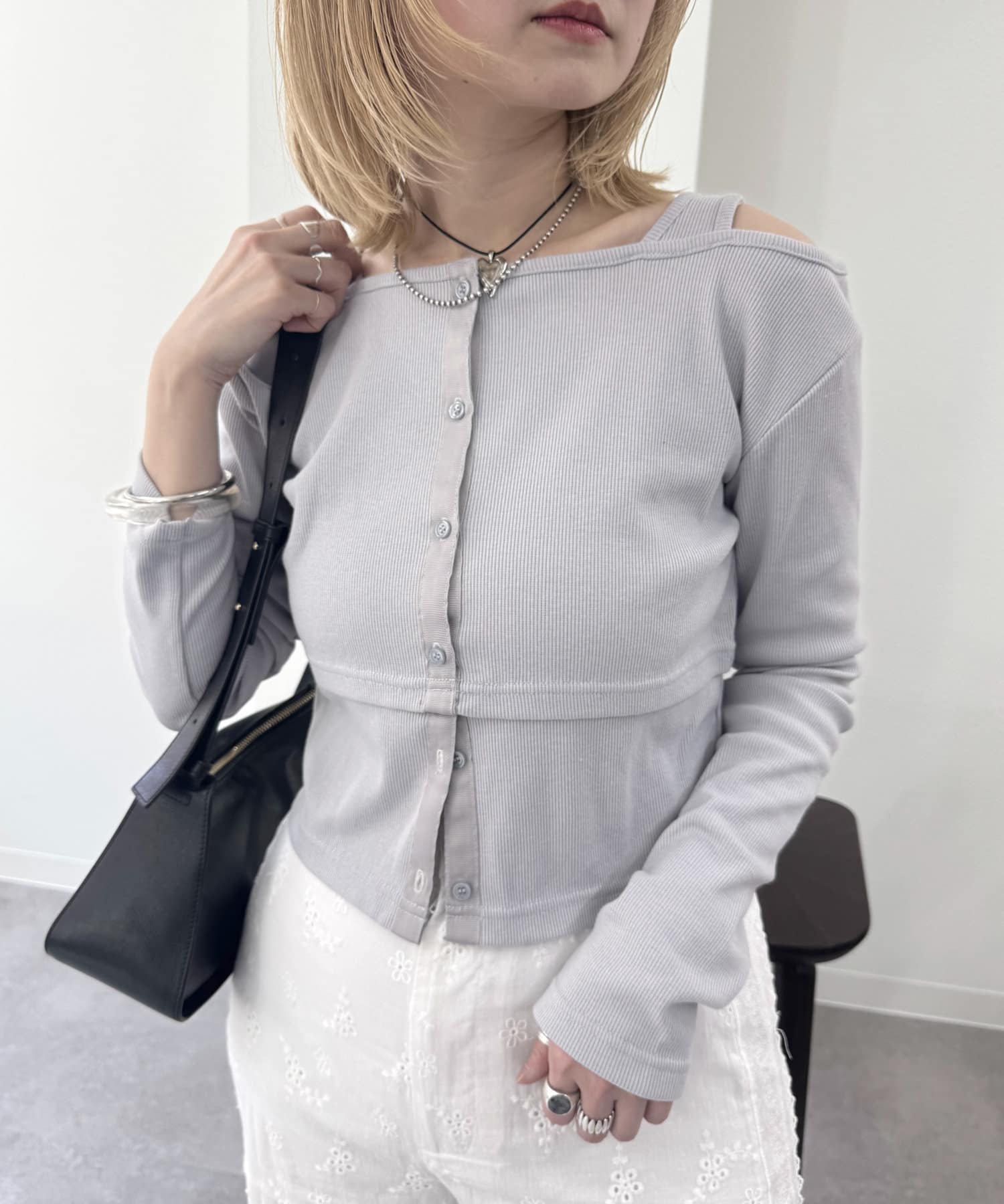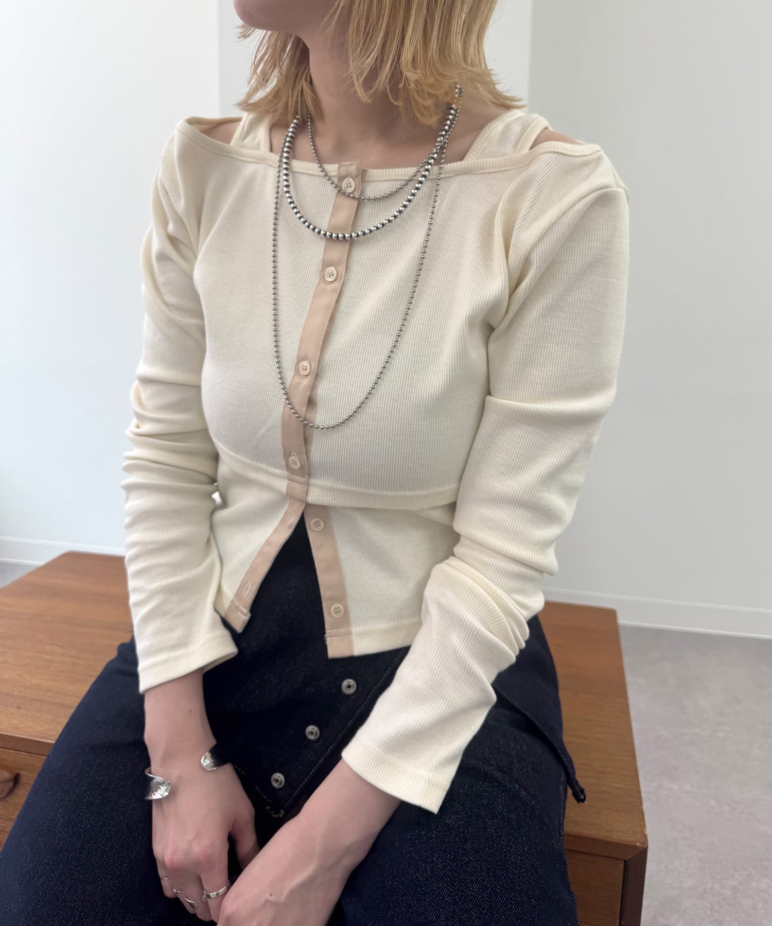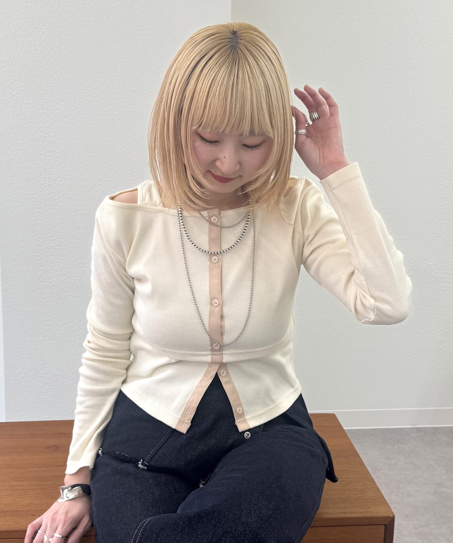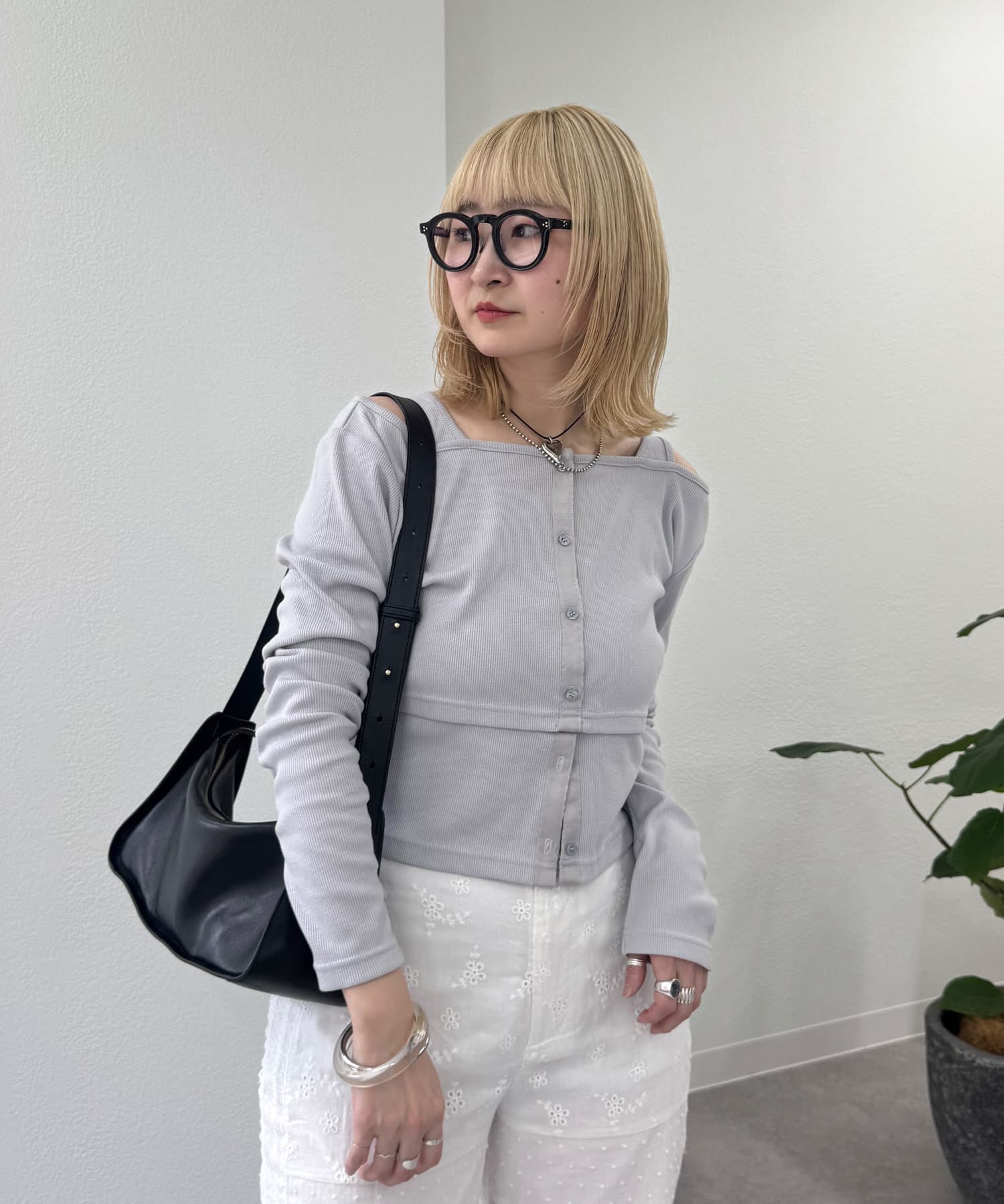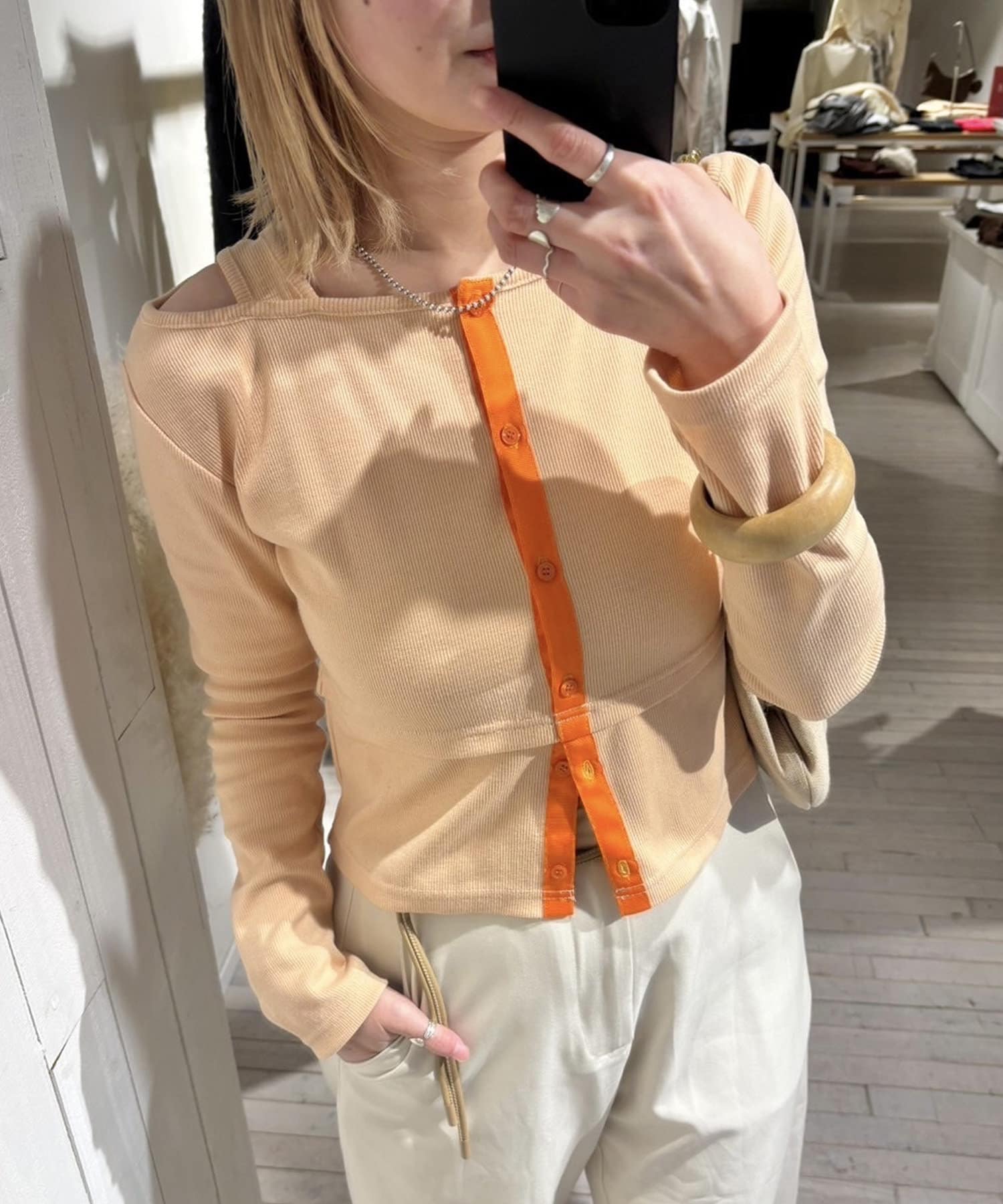 異素材の配色テープとオフショル風のデザインは着るだけでお洒落見えします!