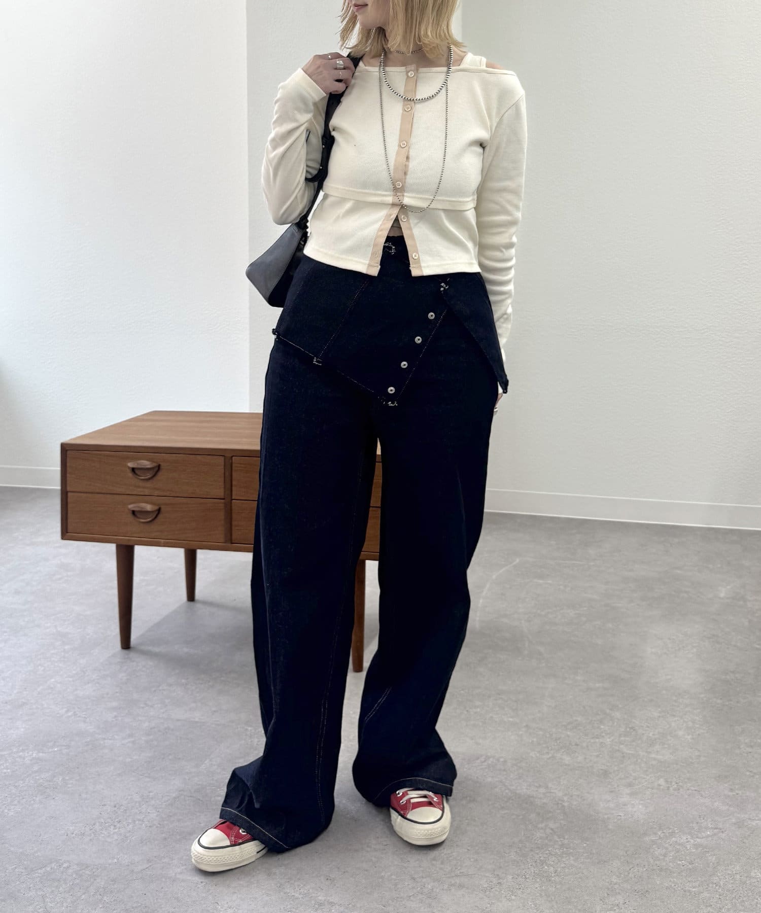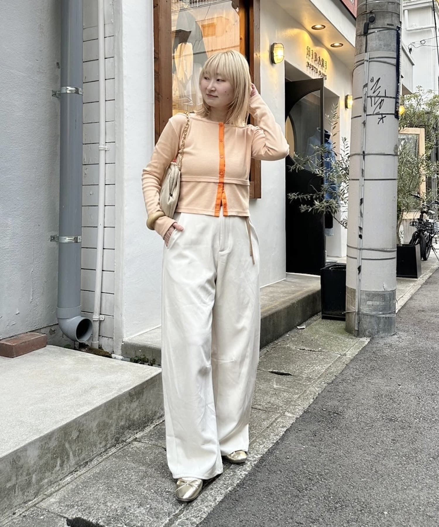 ・ワイドシルエットのボトムス合わせでバランス良く決まります!