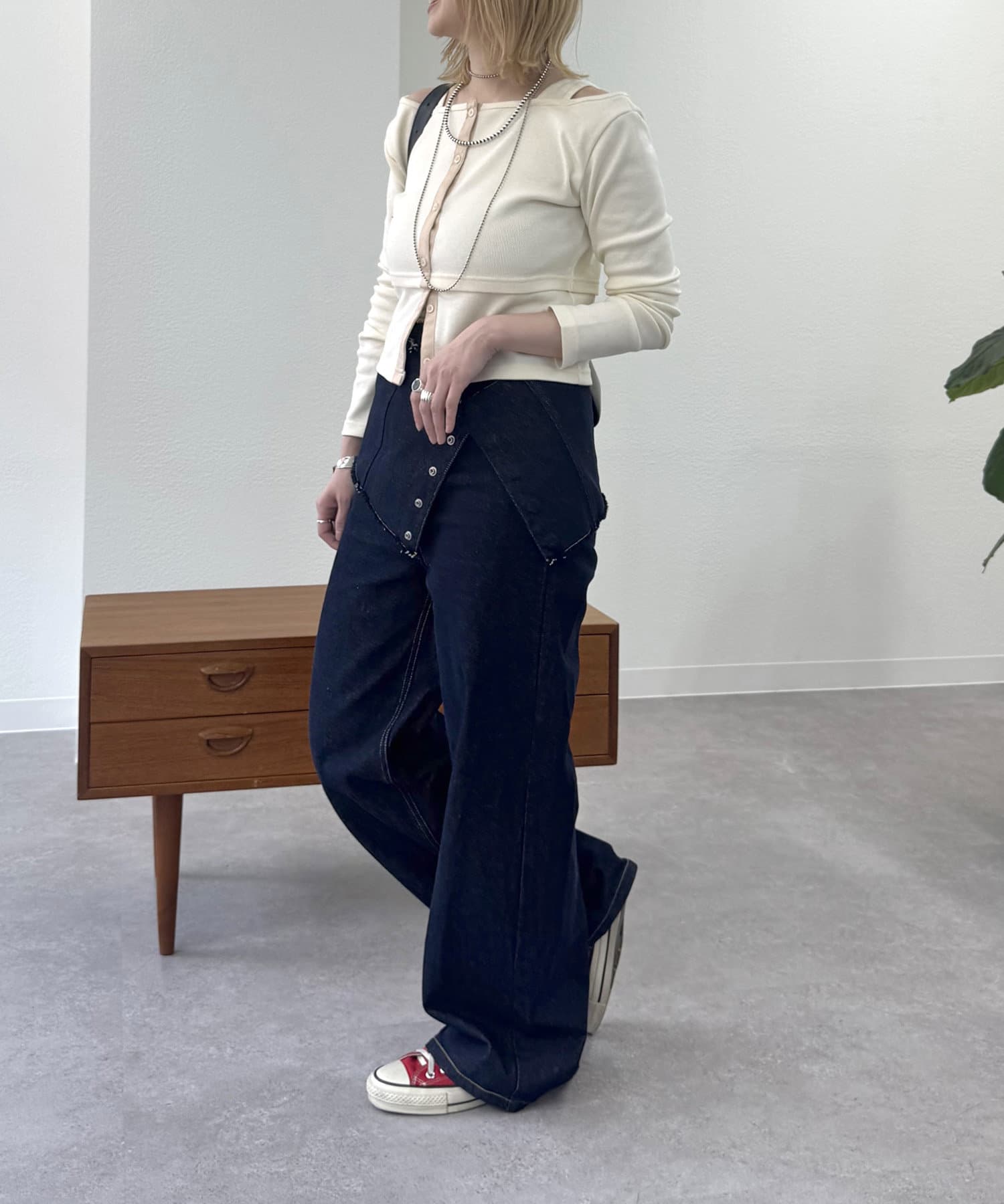 ウエスト部分の切り替えデザインが高めの位置になっているので脚長効果抜群◎