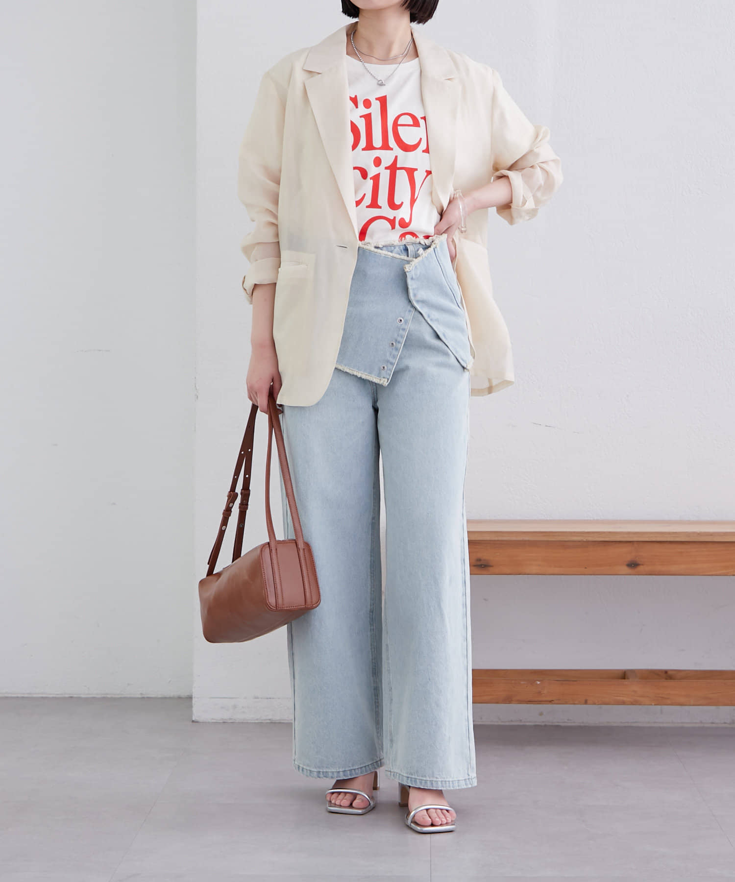 デニムやスラックスと合わせることで、大人カジュアルなスタイリングが完成します。