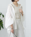 ノースリーブのトップスやキャミワンピースの上から羽織って、レディライクなスタイリングに。