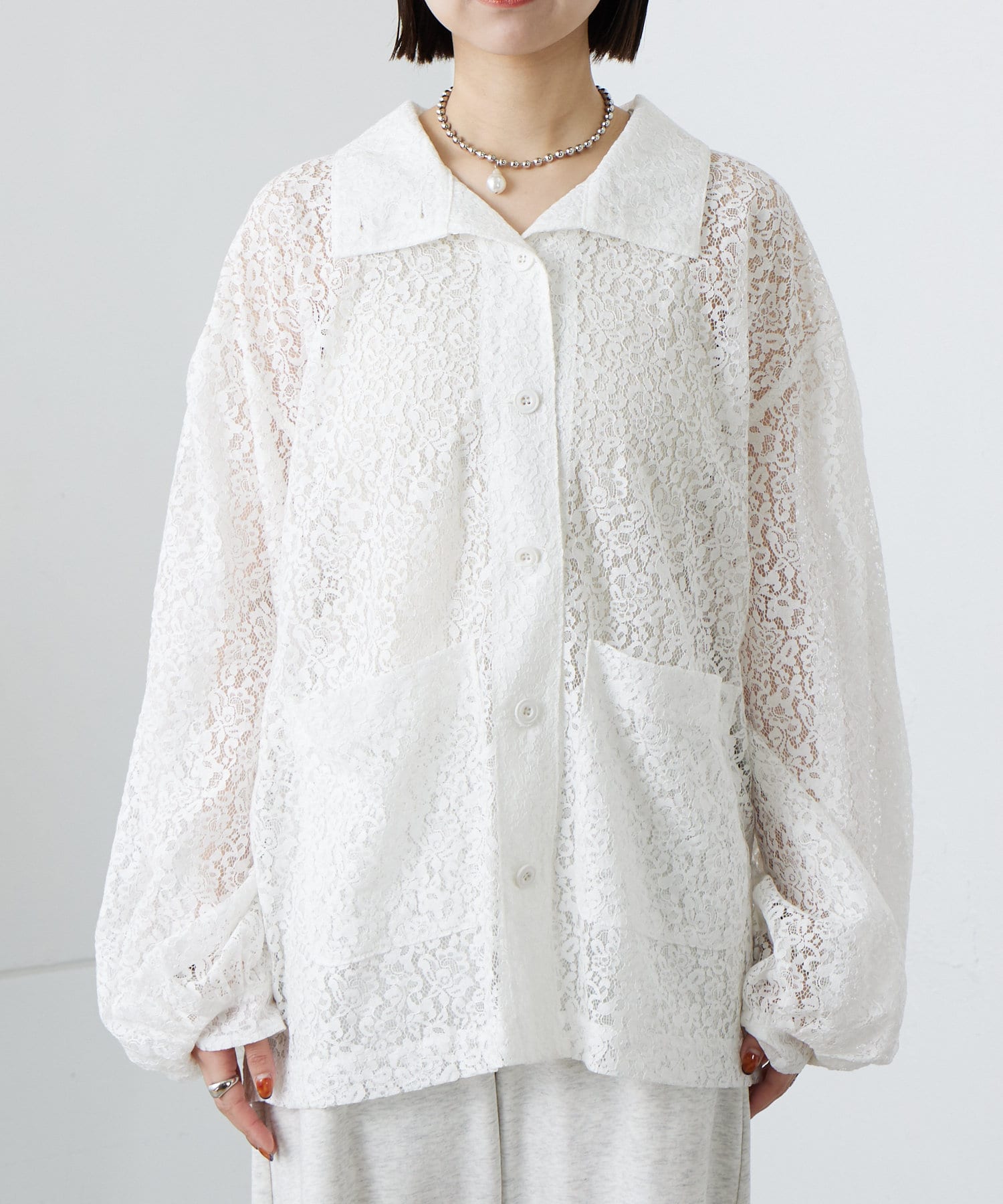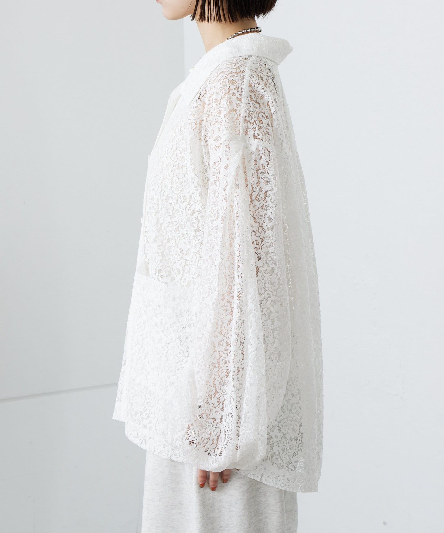 透け感のある素材なので、インナーとのレイヤードスタイルも楽しめます◎