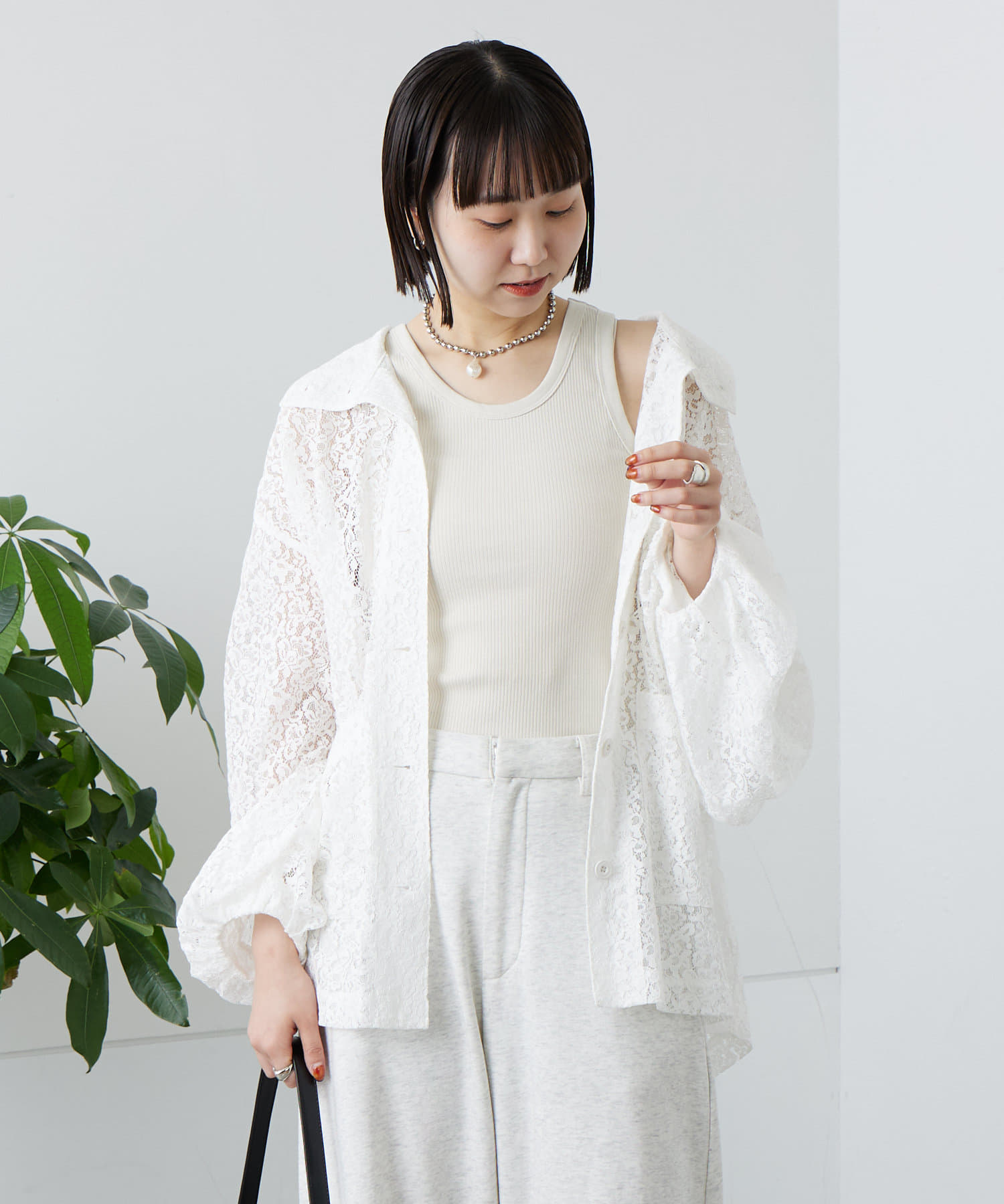 キャミソールやタンクトップを合わせて、透け感を活かした着こなしがおすすめ◎