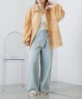 シンプルなデニムやスラックスと合わせ、リラックス感のある着こなしに。