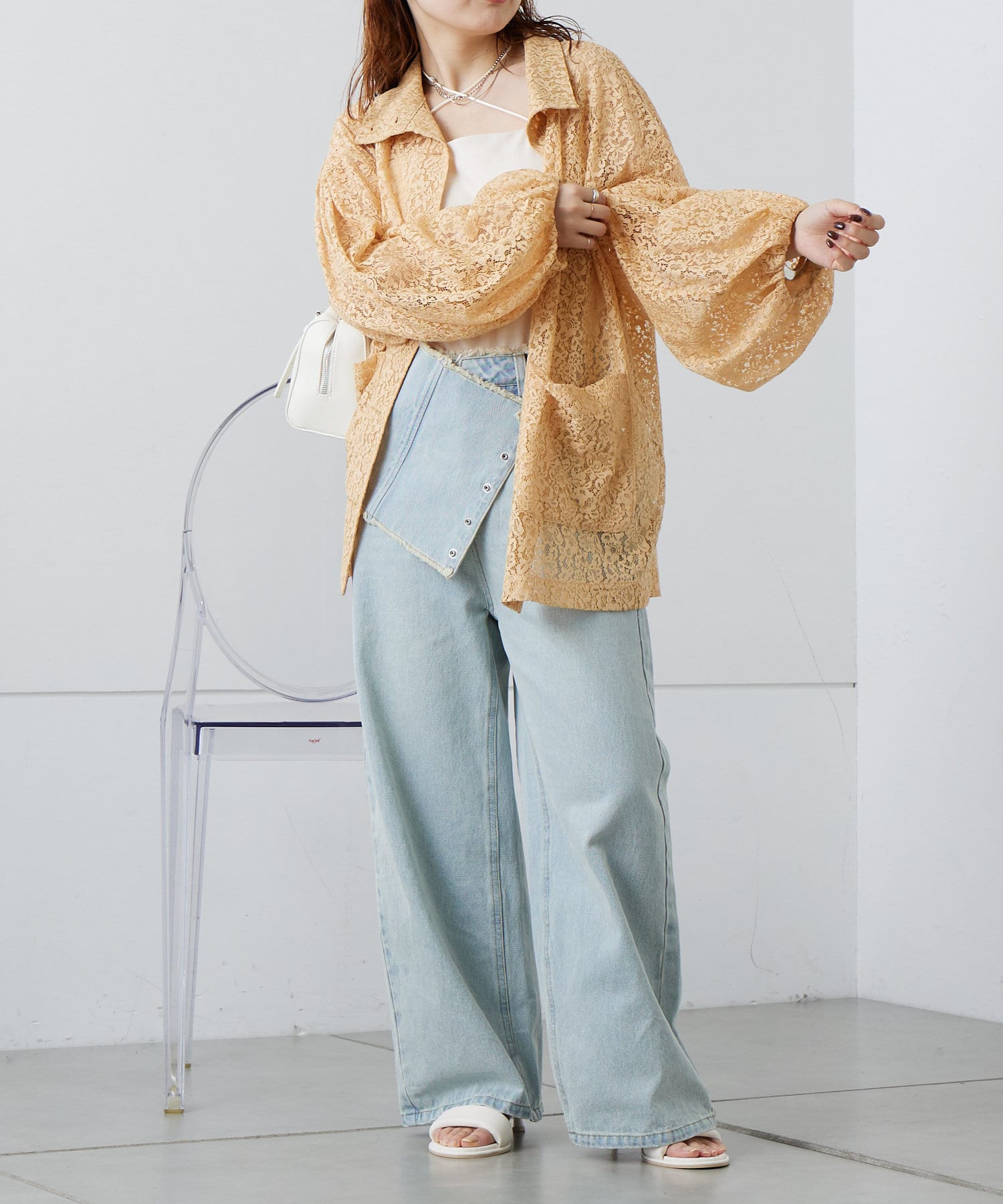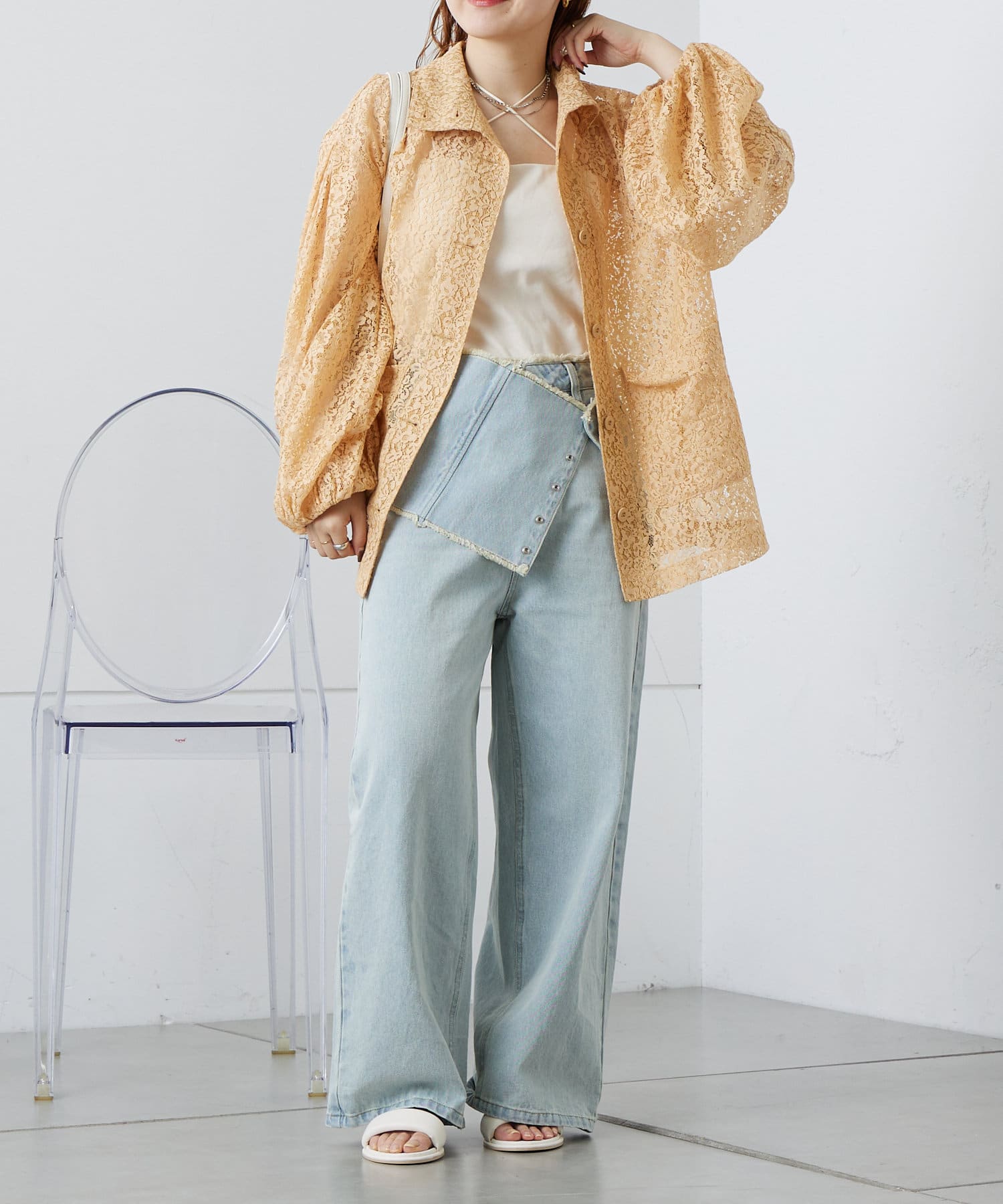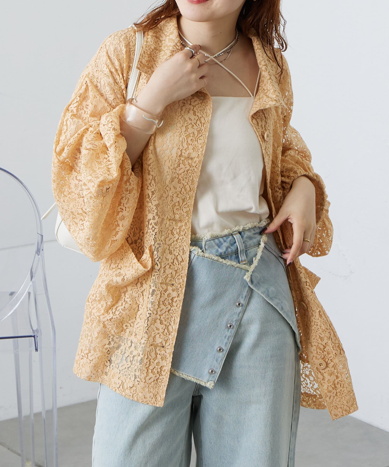 透け感のある素材なので、インナーとのレイヤードスタイルも楽しめます◎