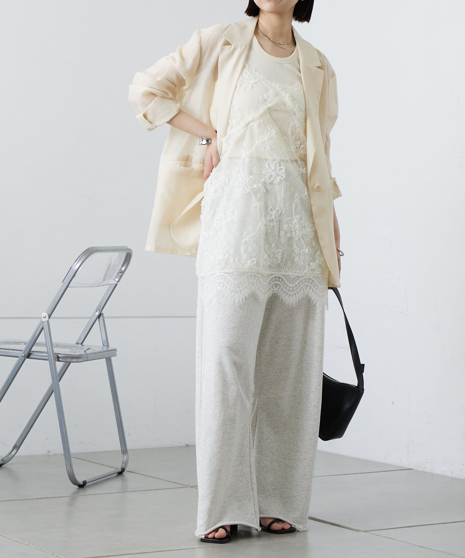 インナーにキャミソールやタンクトップを合わせてレイヤードスタイルを楽しむことができます。