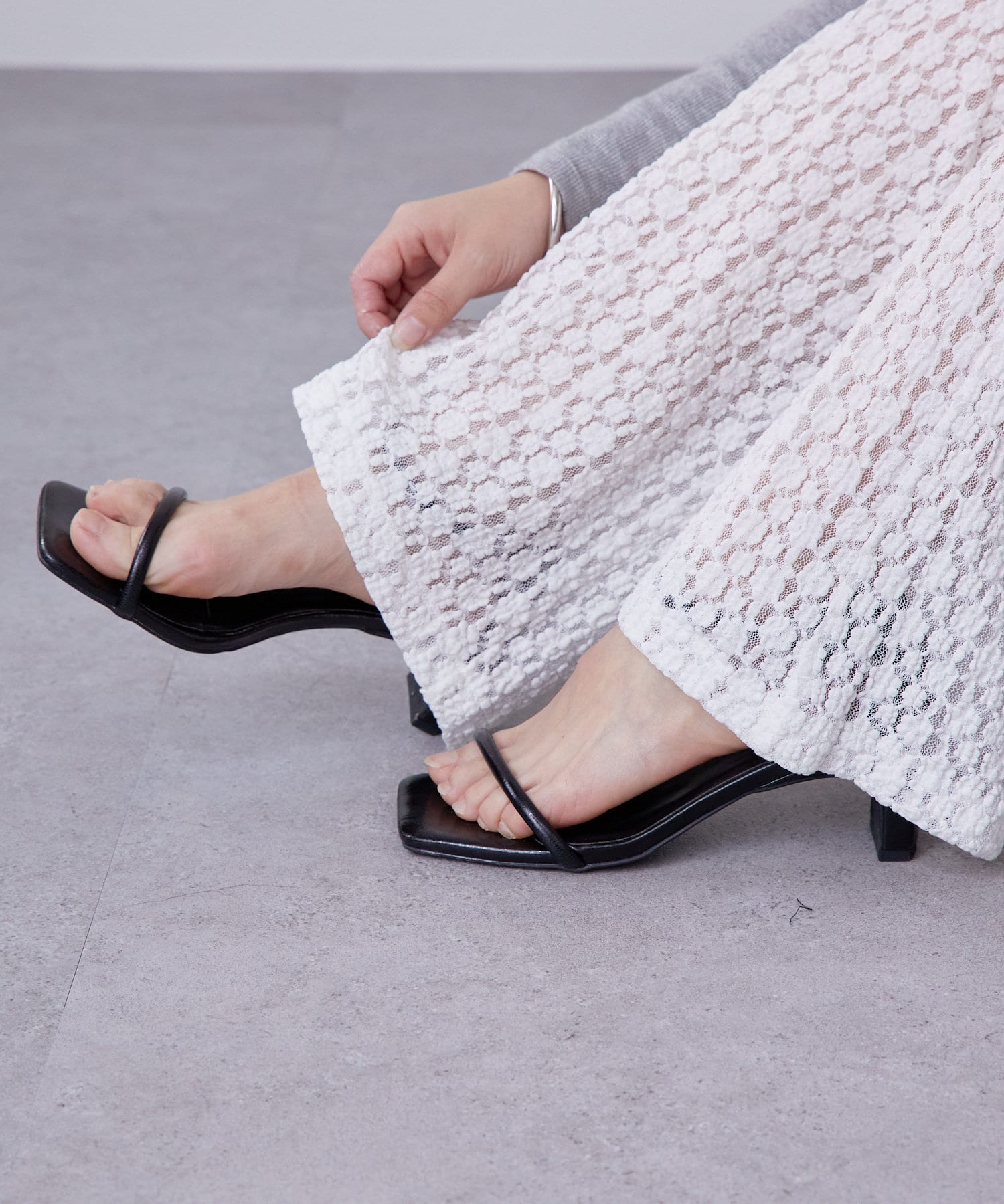 細目のストラップなのでロング丈のボトムスと合わせて足元に抜け感を出すのが◎