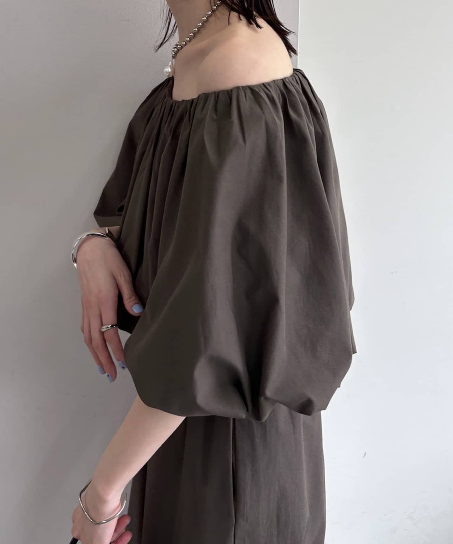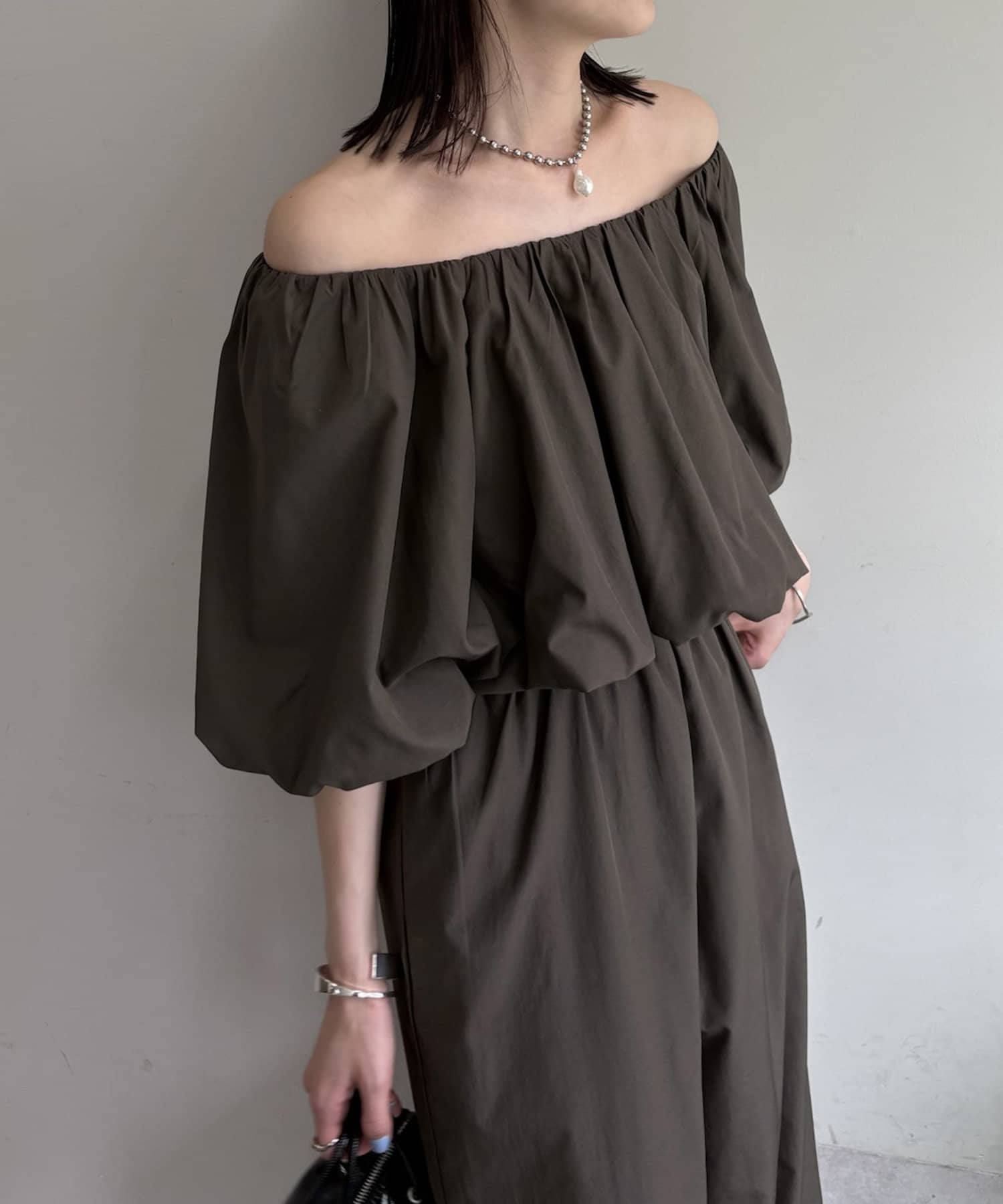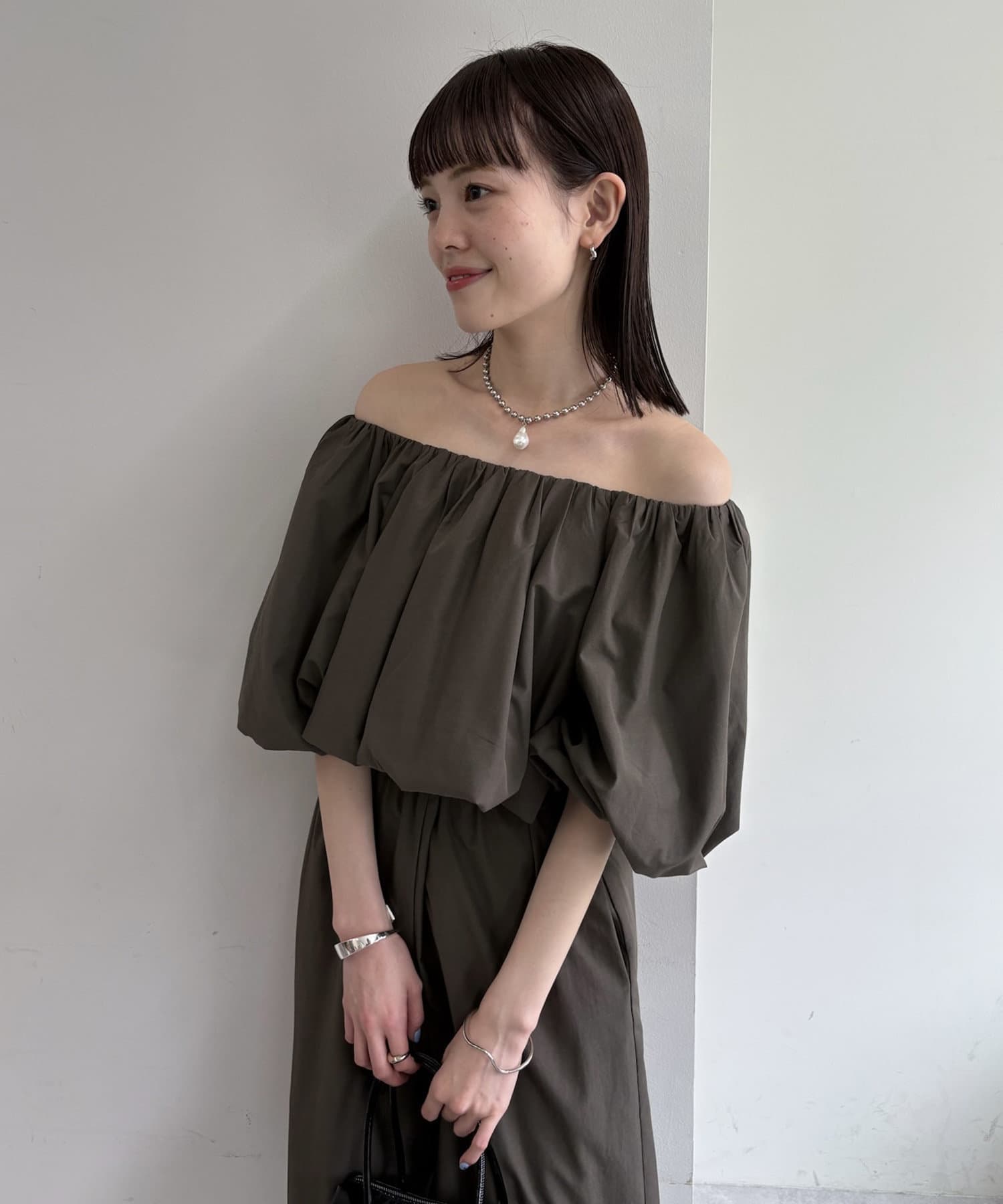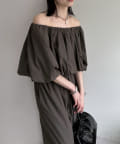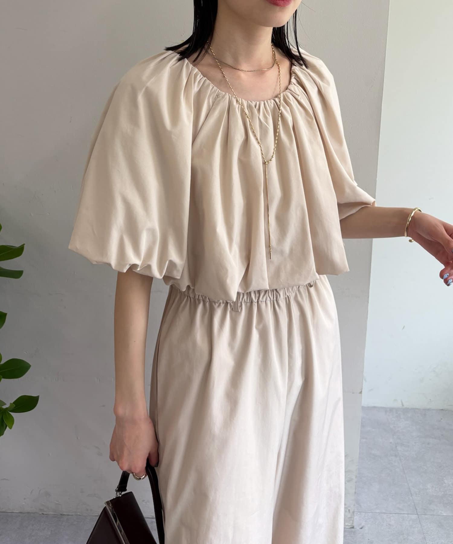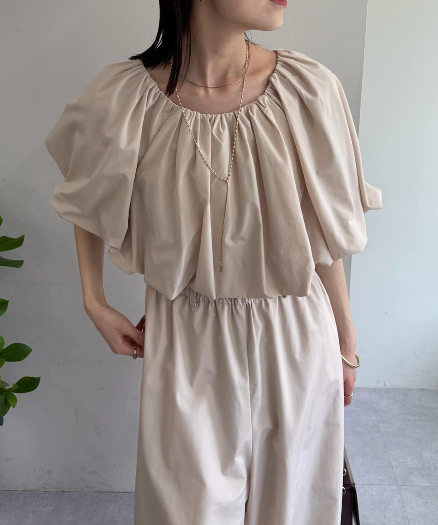 トップス部分は、パフスリーブでボリューム感を出しつつ、ウエスト部分はゴム仕様なので着心地◎