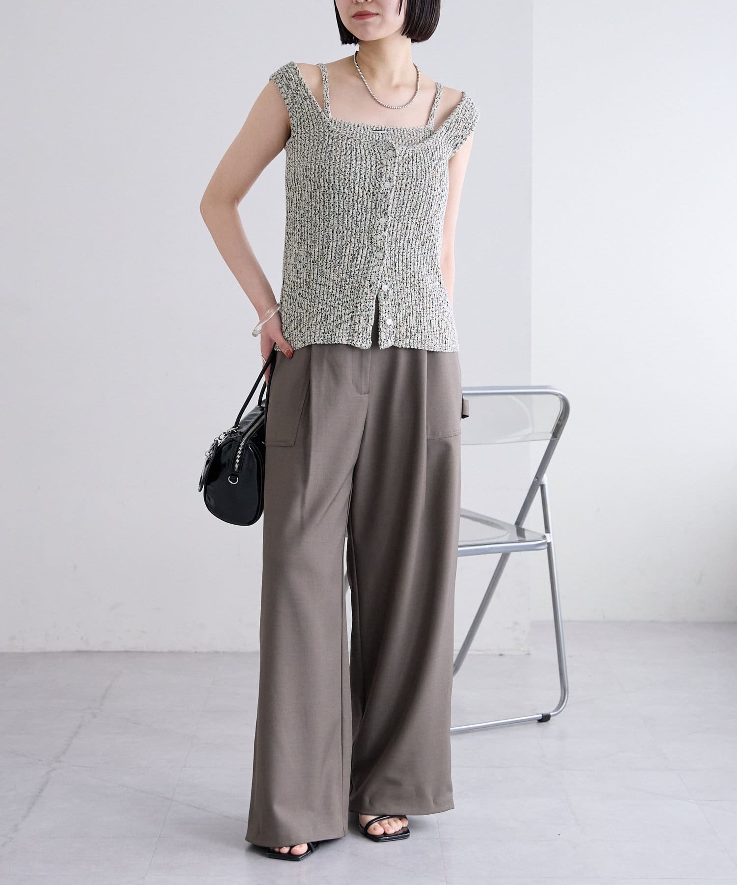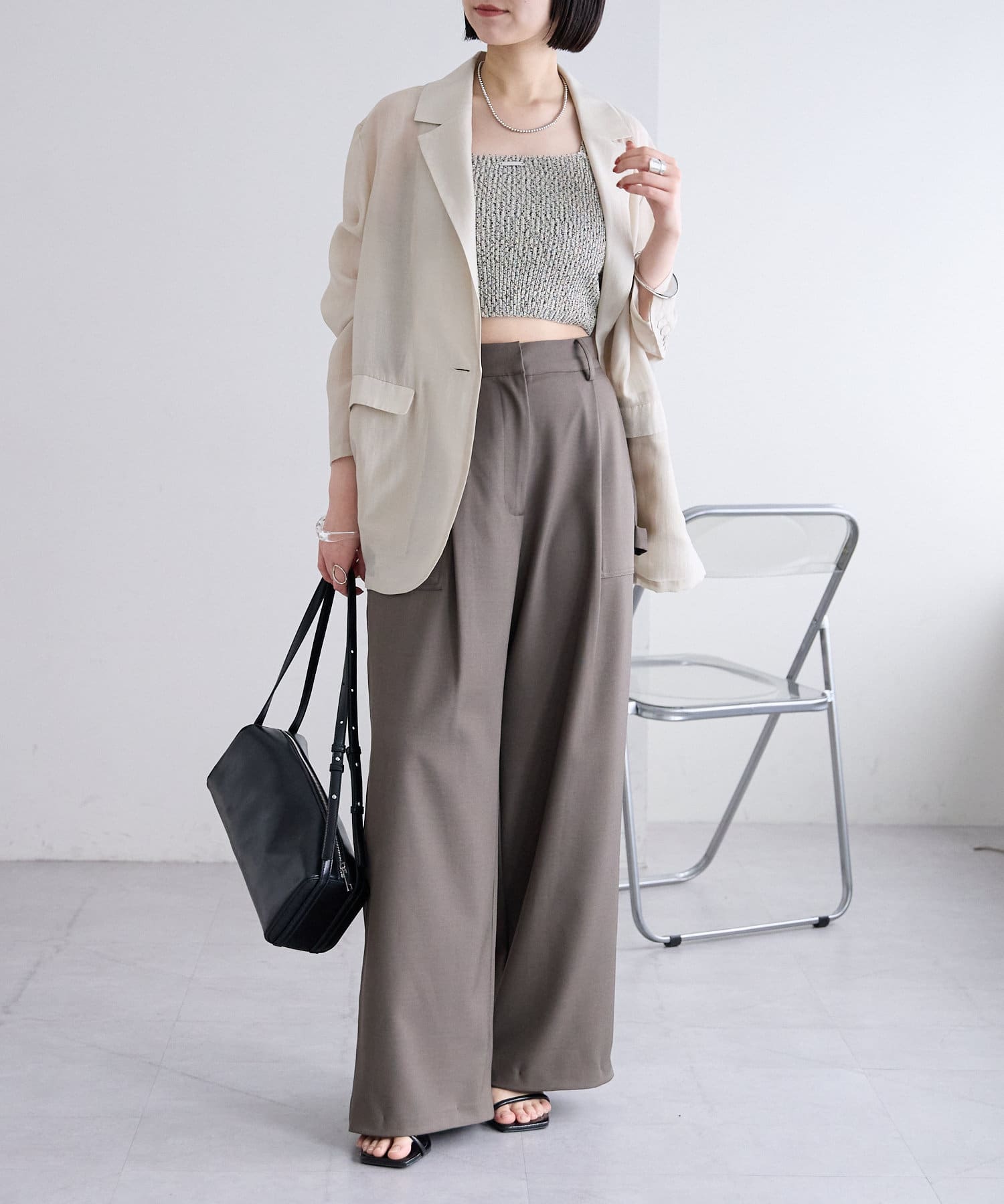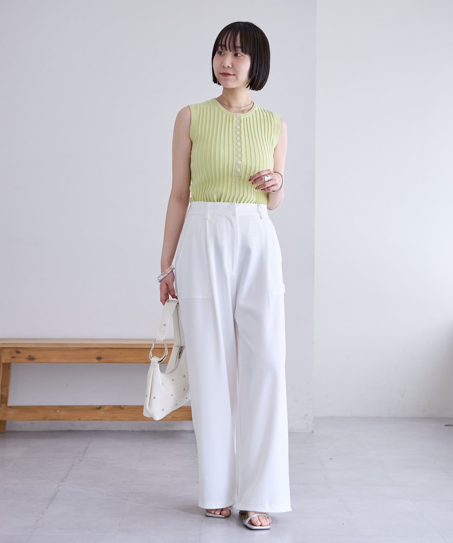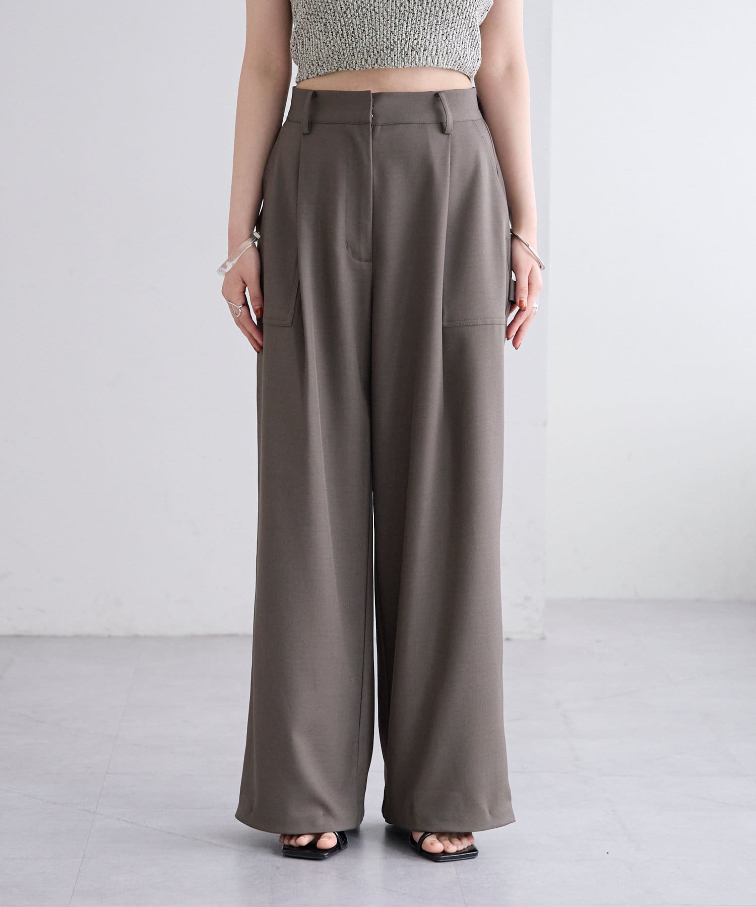センタープレスが入っているので、ワークパンツデザインながらシャープで洗練された印象のスラックス。
