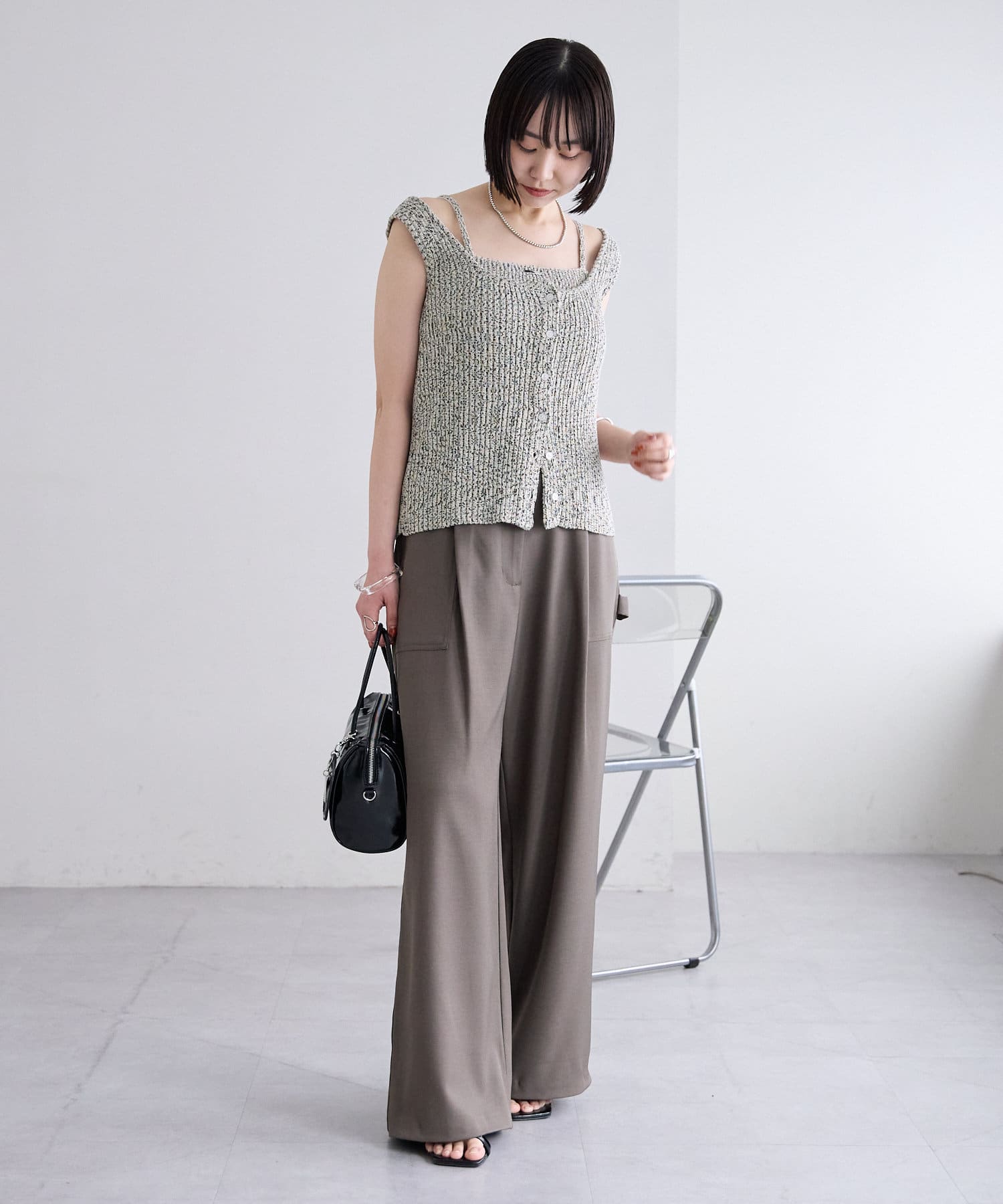 トップスをインしたスタイルにしても可愛らしい印象に。
