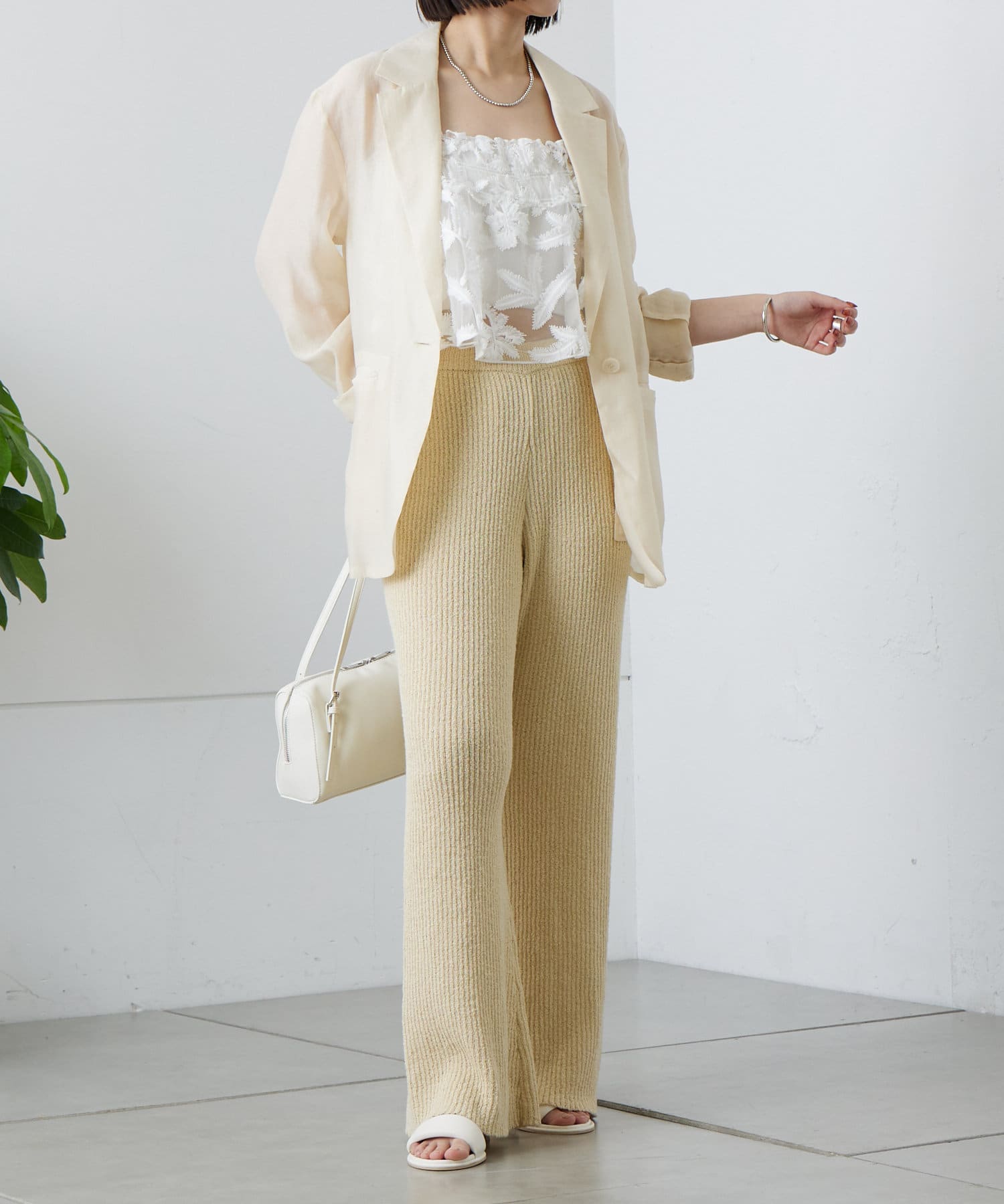 同じ素材のニットと合わせると統一感がでてまとまりのあるスタイリングに♡