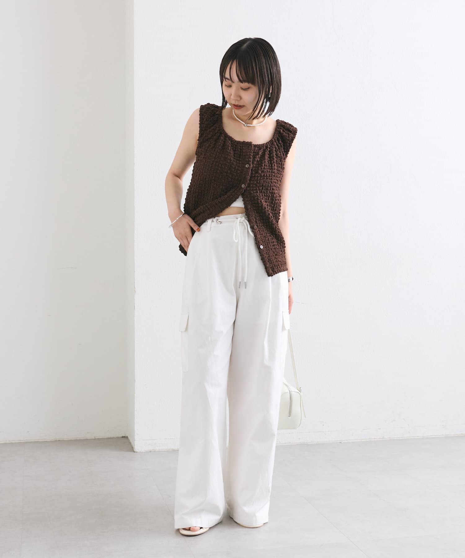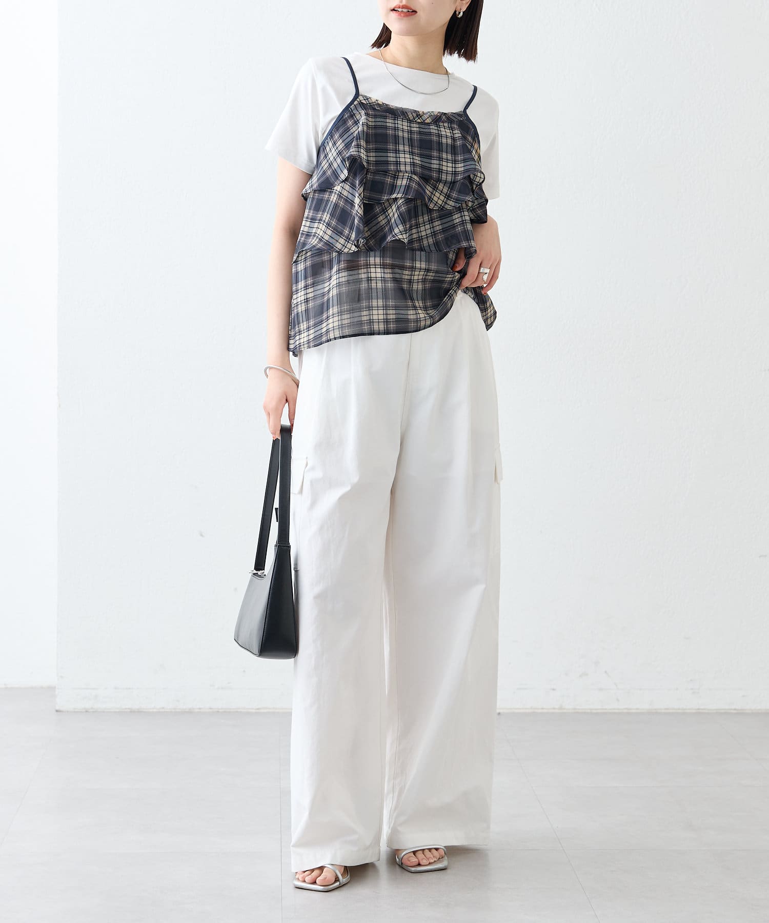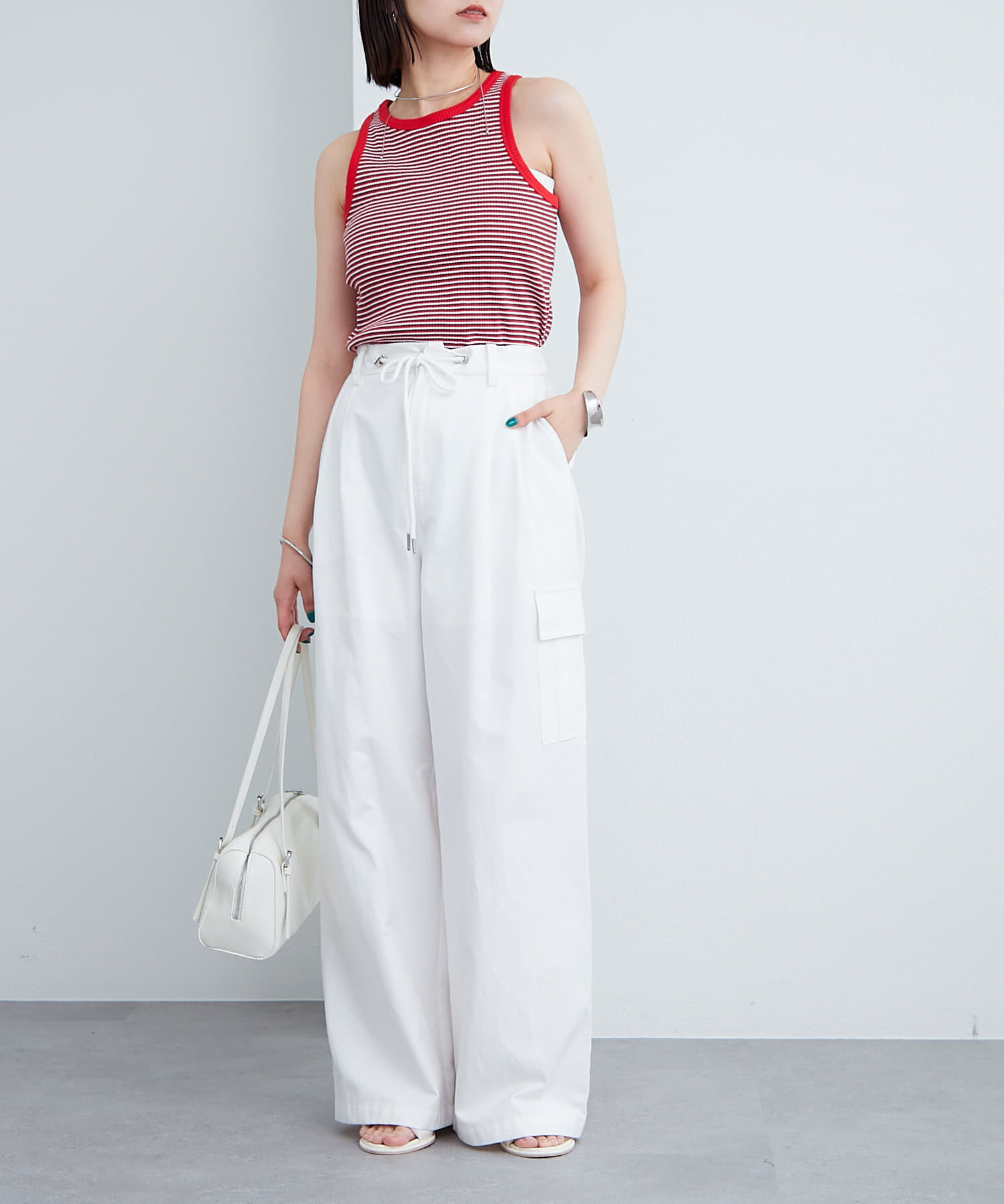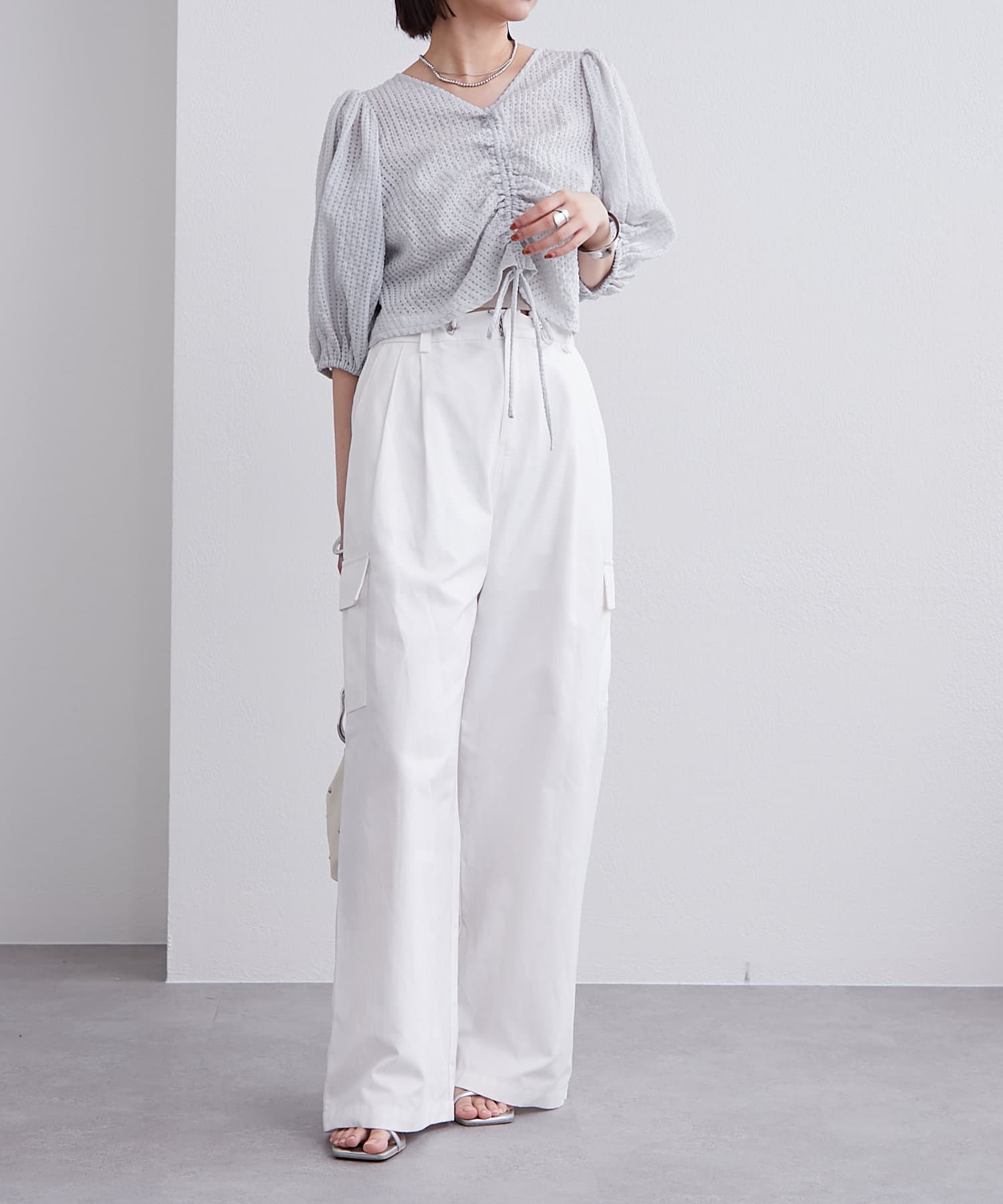 クロップド丈のアイテムと合わせるとよりスタイルアップが期待できます◎