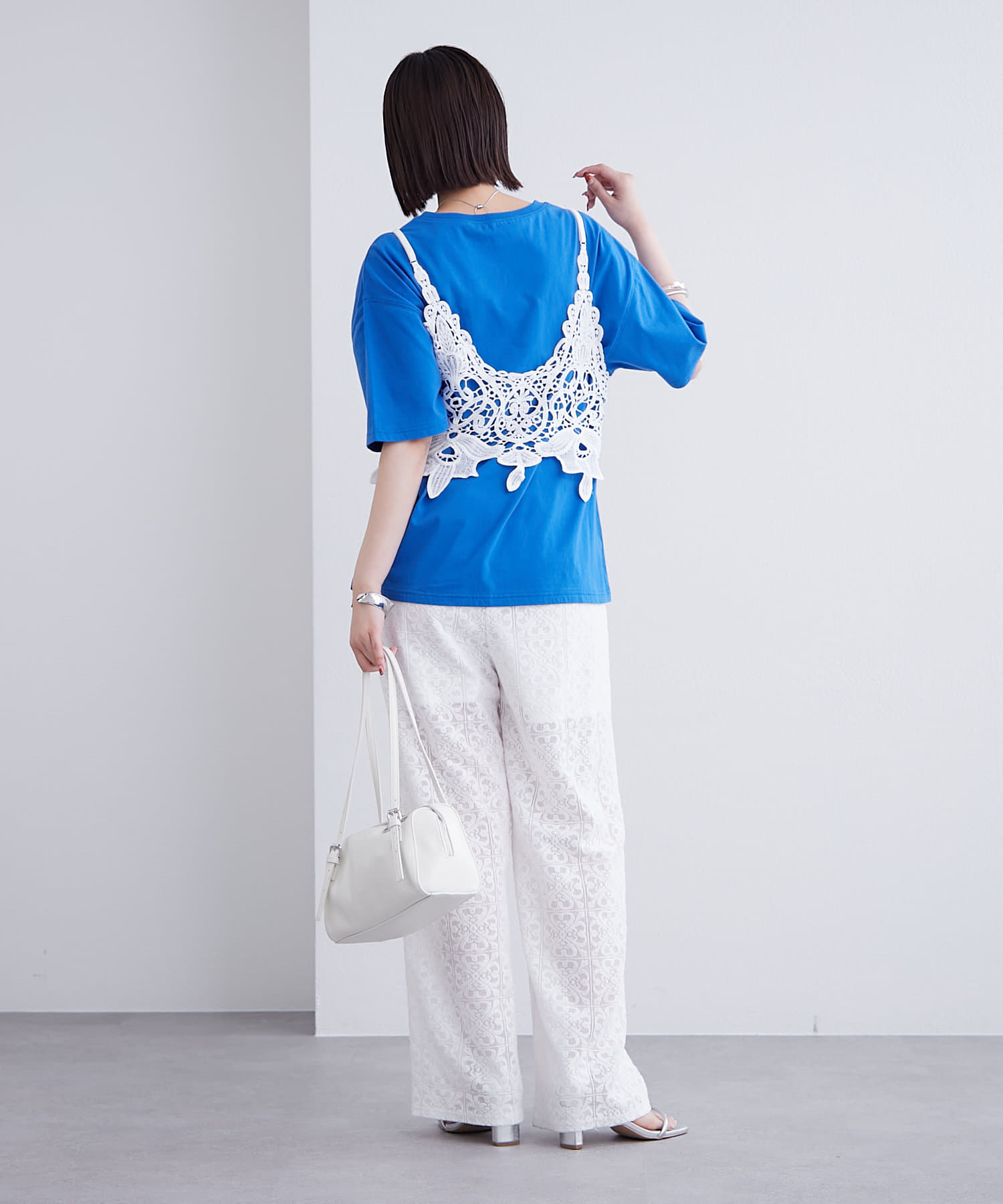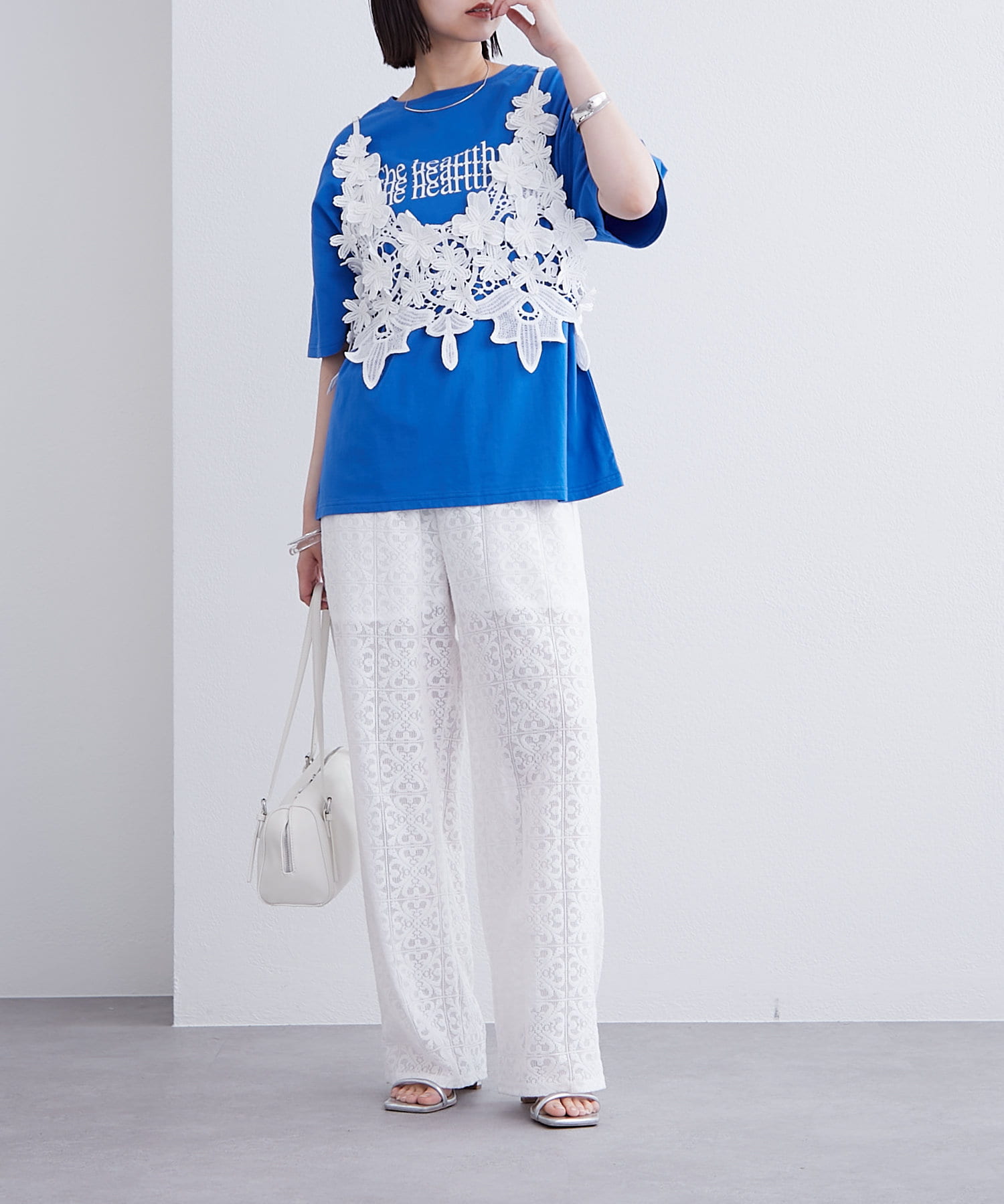 リラックス感のあるシルエットながら、上品なレースのデザインなので、綺麗めカジュアルな印象に。