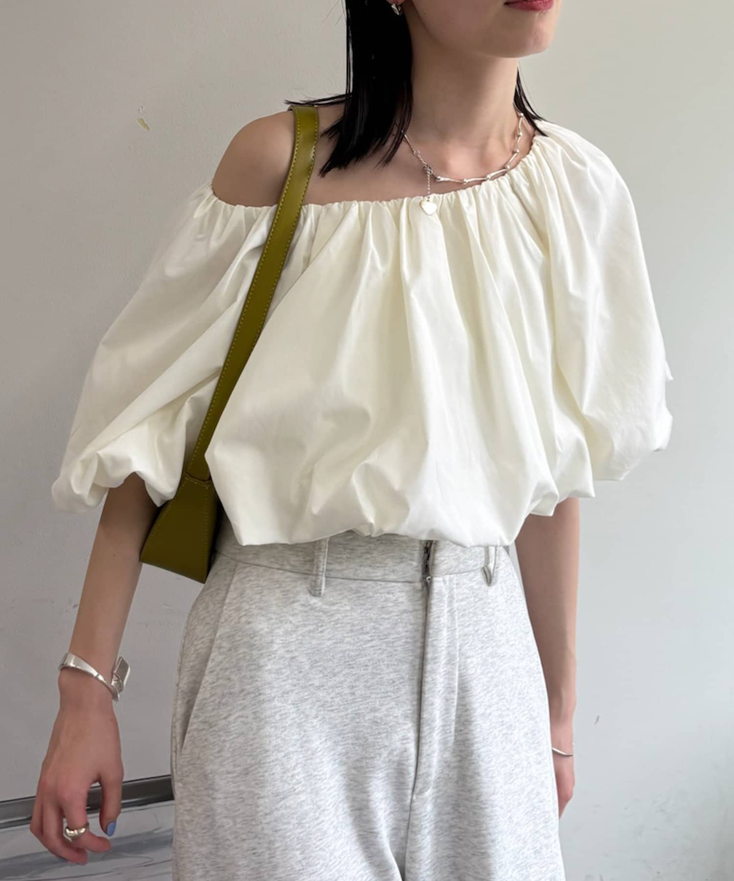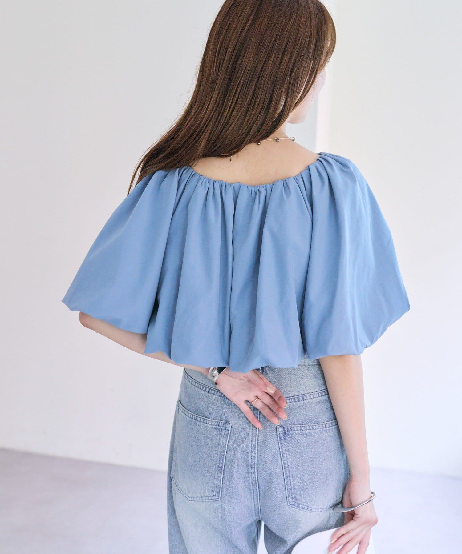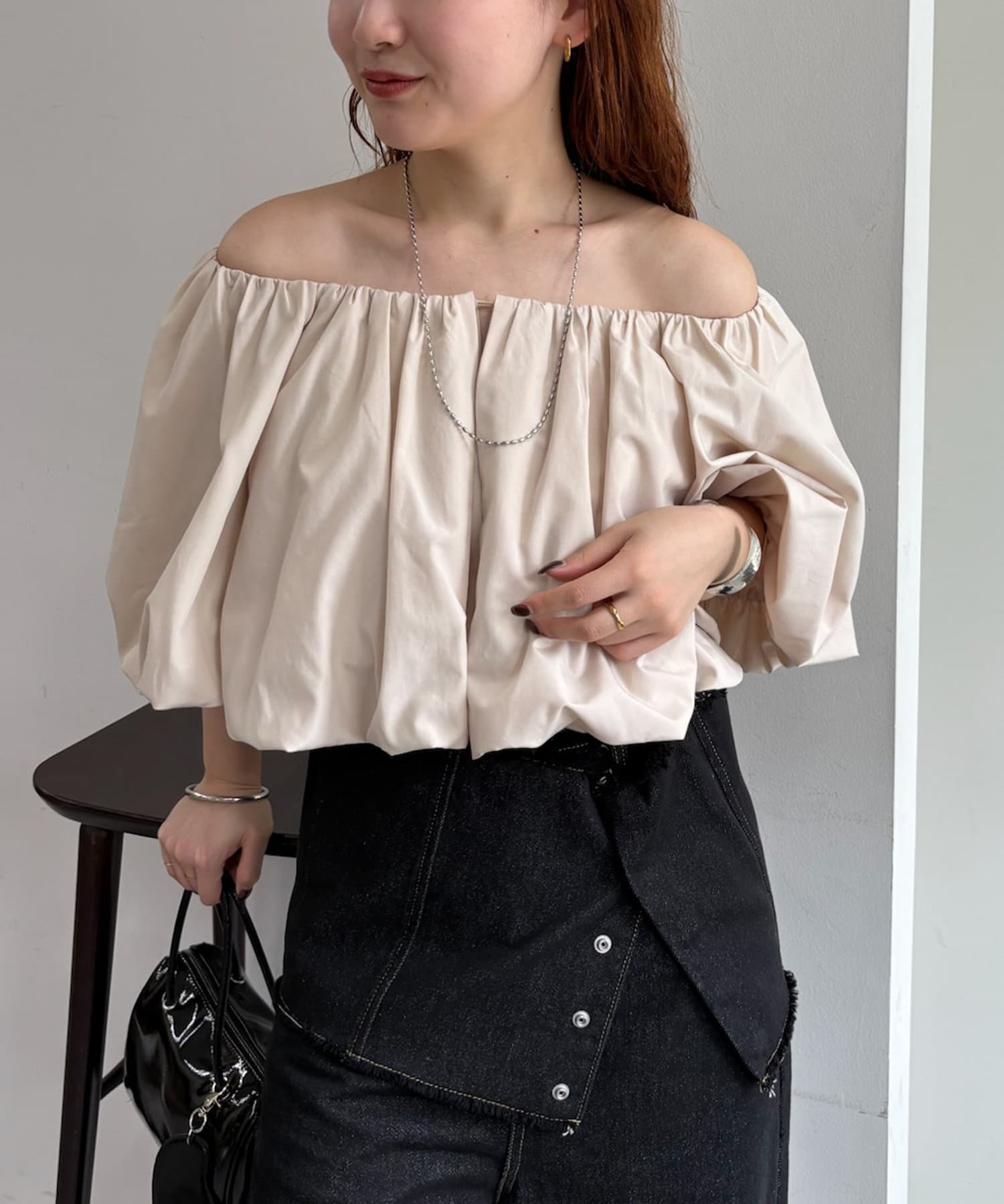 バルーンシルエットのスリーブが腕を華奢に見せ、こなれ感を演出。