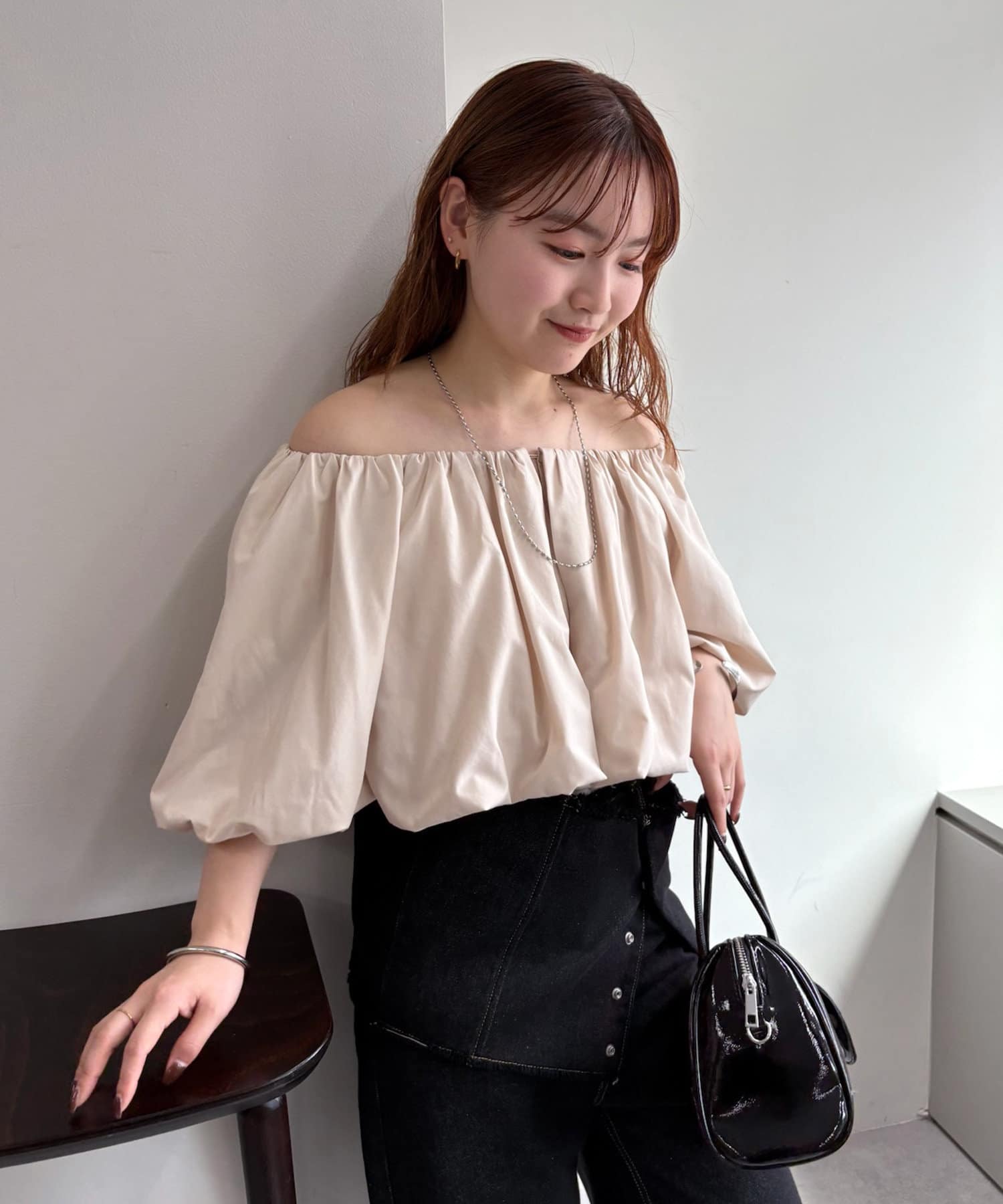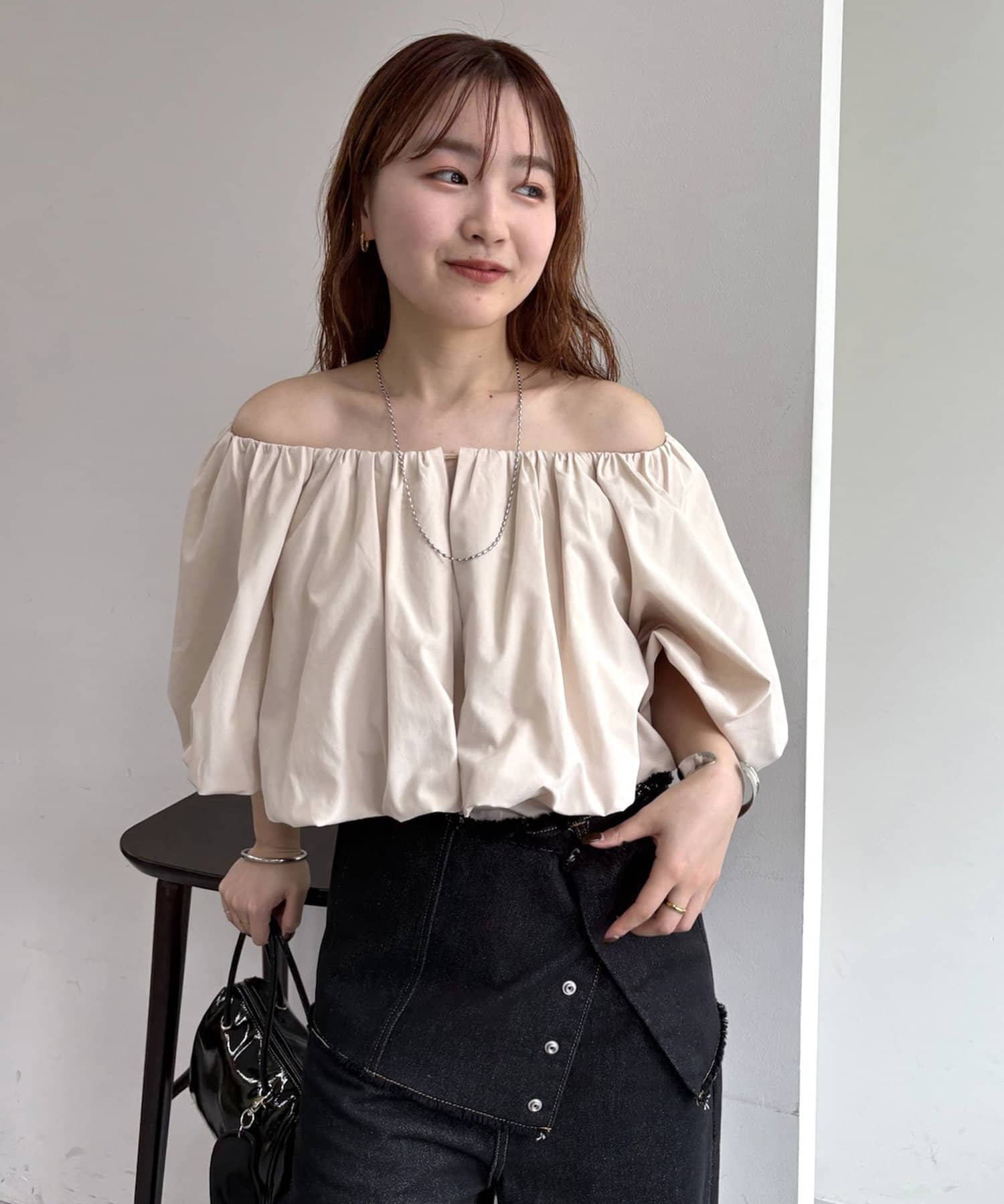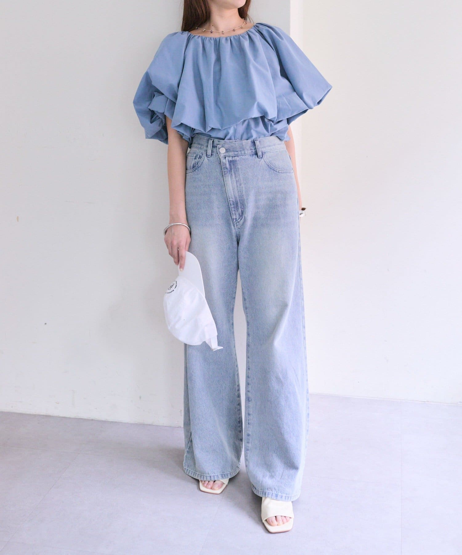 バルーンシルエットのスリーブが腕を華奢に見せ、こなれ感を演出。
