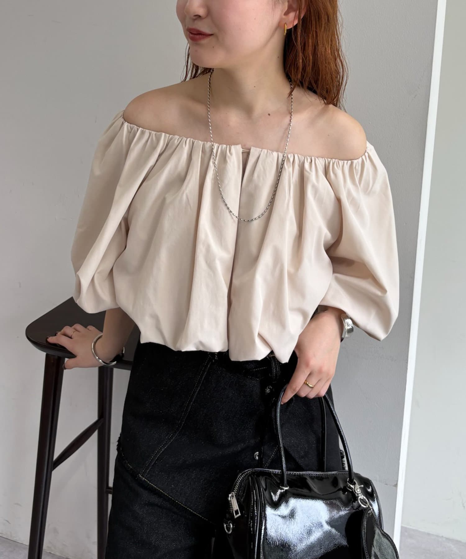 肩の部分を落としてオフショルやワンショルで着て抜け感のあるスタイリングに♡