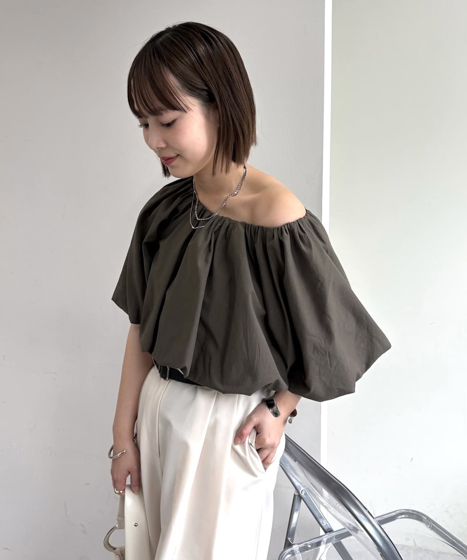 私自身が骨ストなのでバルーン系は怖かったのですが、肩を出さなくてもワンショルにしても着こなすことができてよかったです。