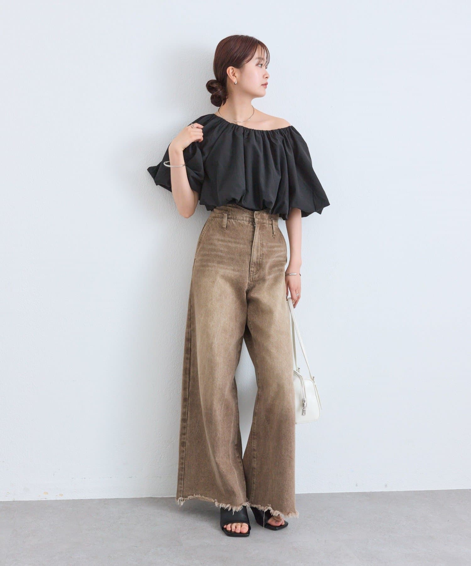 デニムやワイドパンツと合わせて、リラックス感のあるカジュアルスタイルに。