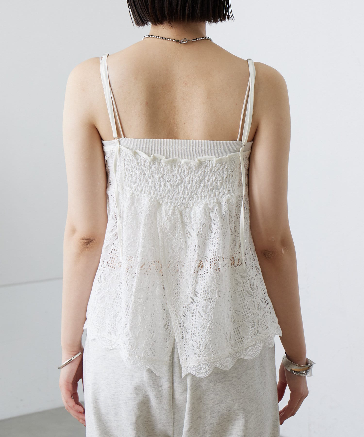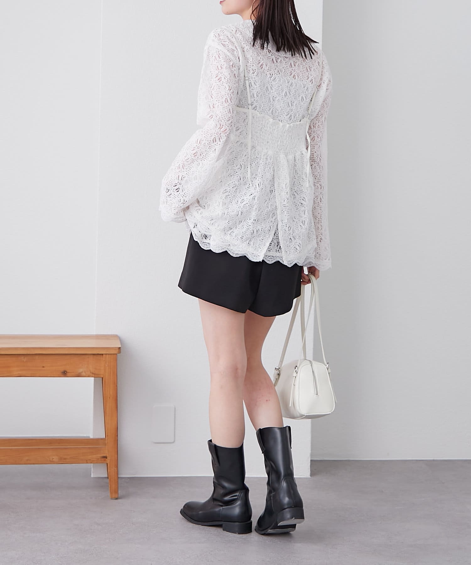 レース素材のビスチェとブラウスがセットになった着回し力抜群トップス。