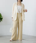 デニムパンツやワイドパンツと合わせて、リラックス感のある大人カジュアルスタイルに。足元はスニーカーやサンダルで抜け感をプラス。