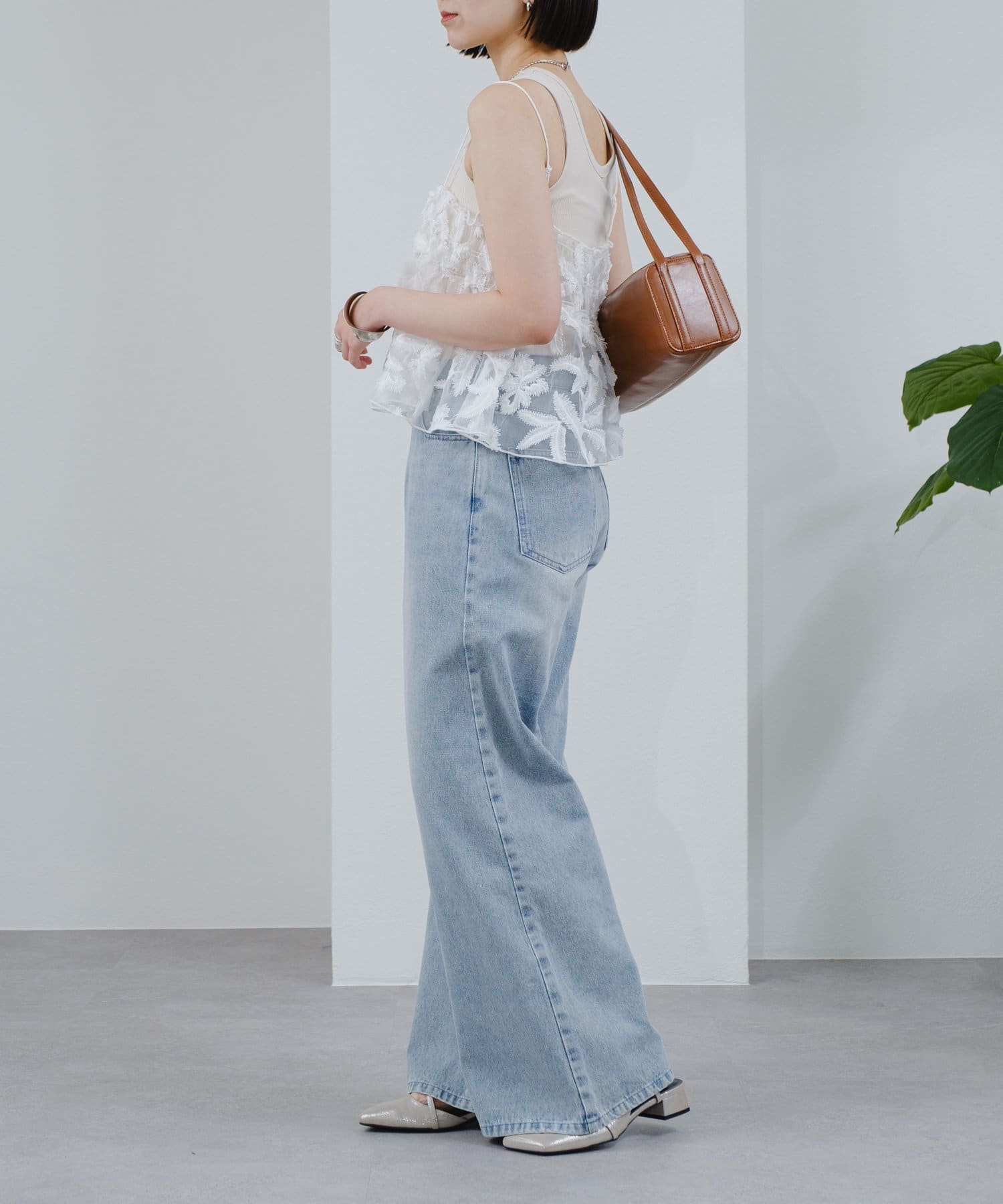 購入場所:店舗リーフ柄が大人っぽくて可愛いと思い購入。マルチwayのビスチェに重ねるのが可愛いと見た時から思っててこのコーデのために買いました。いろいろこれから使えそうなのでたくさん着回します。
