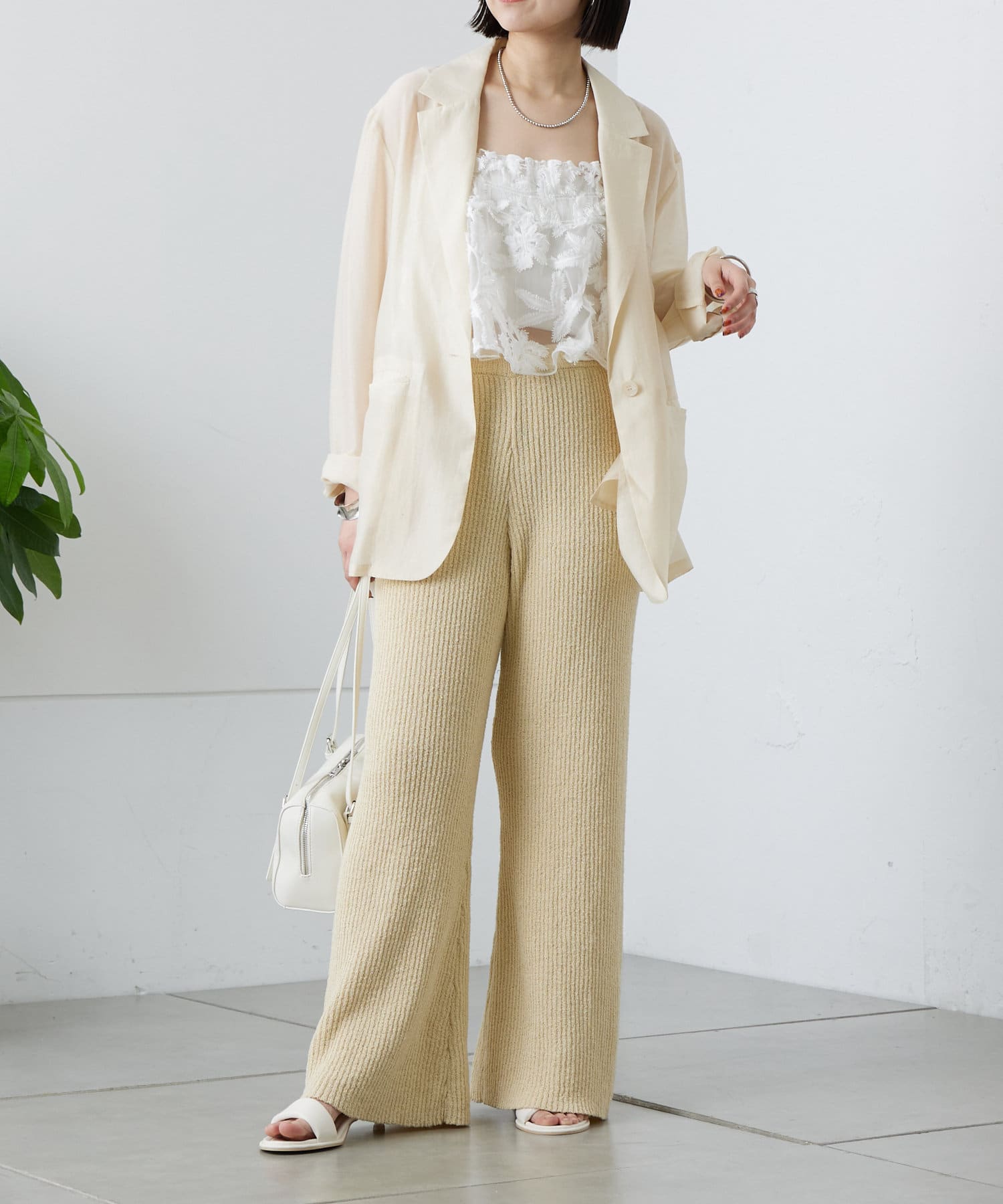 今ならワントーンコーデでシアージャケットの上からレイヤーとして楽しめて◎