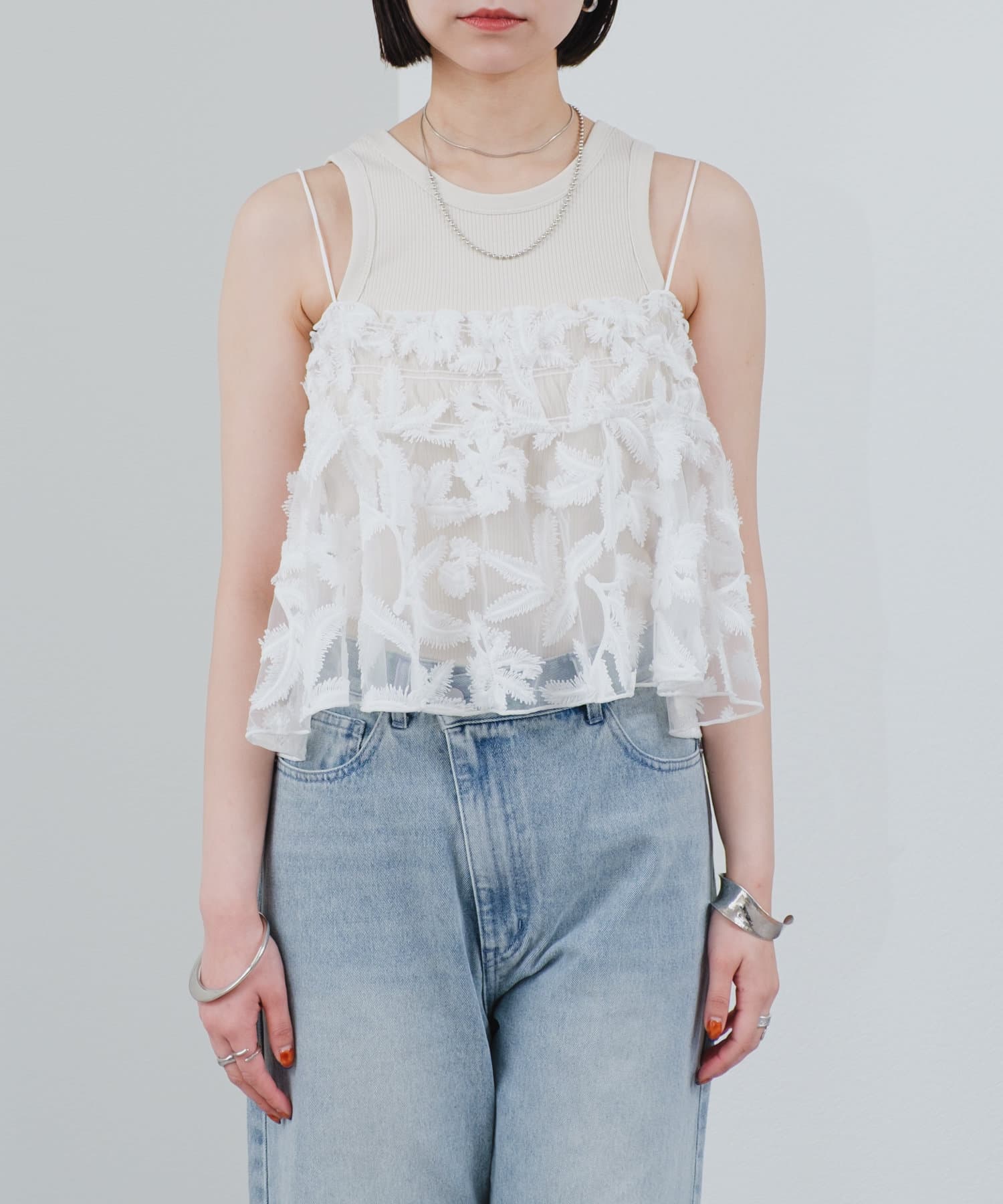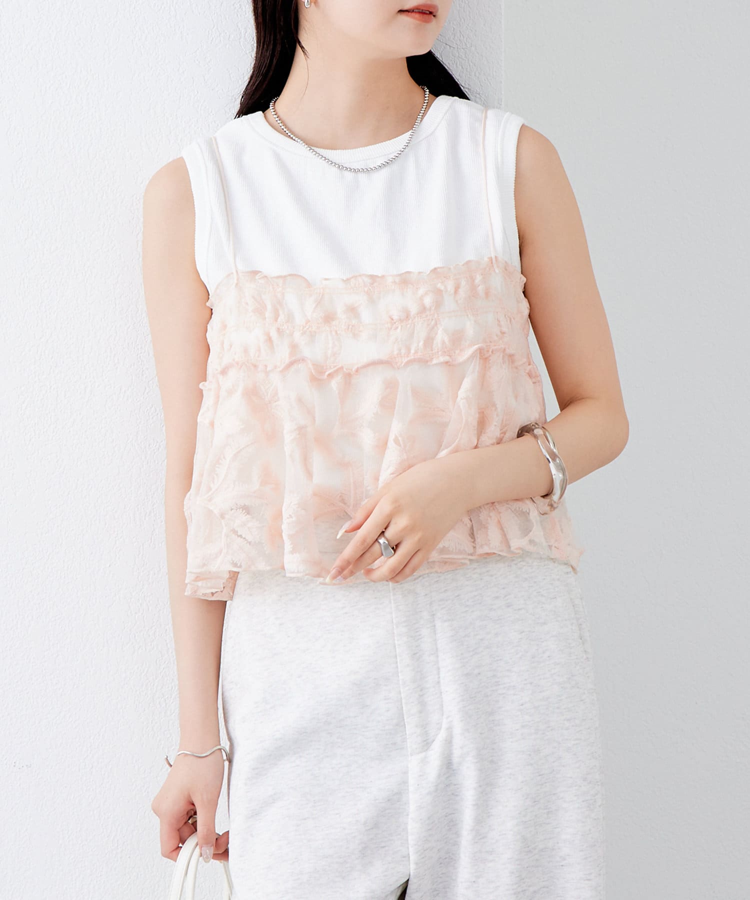 透け感のある素材とふわっとしたシルエットが可愛いビスチェが登場!