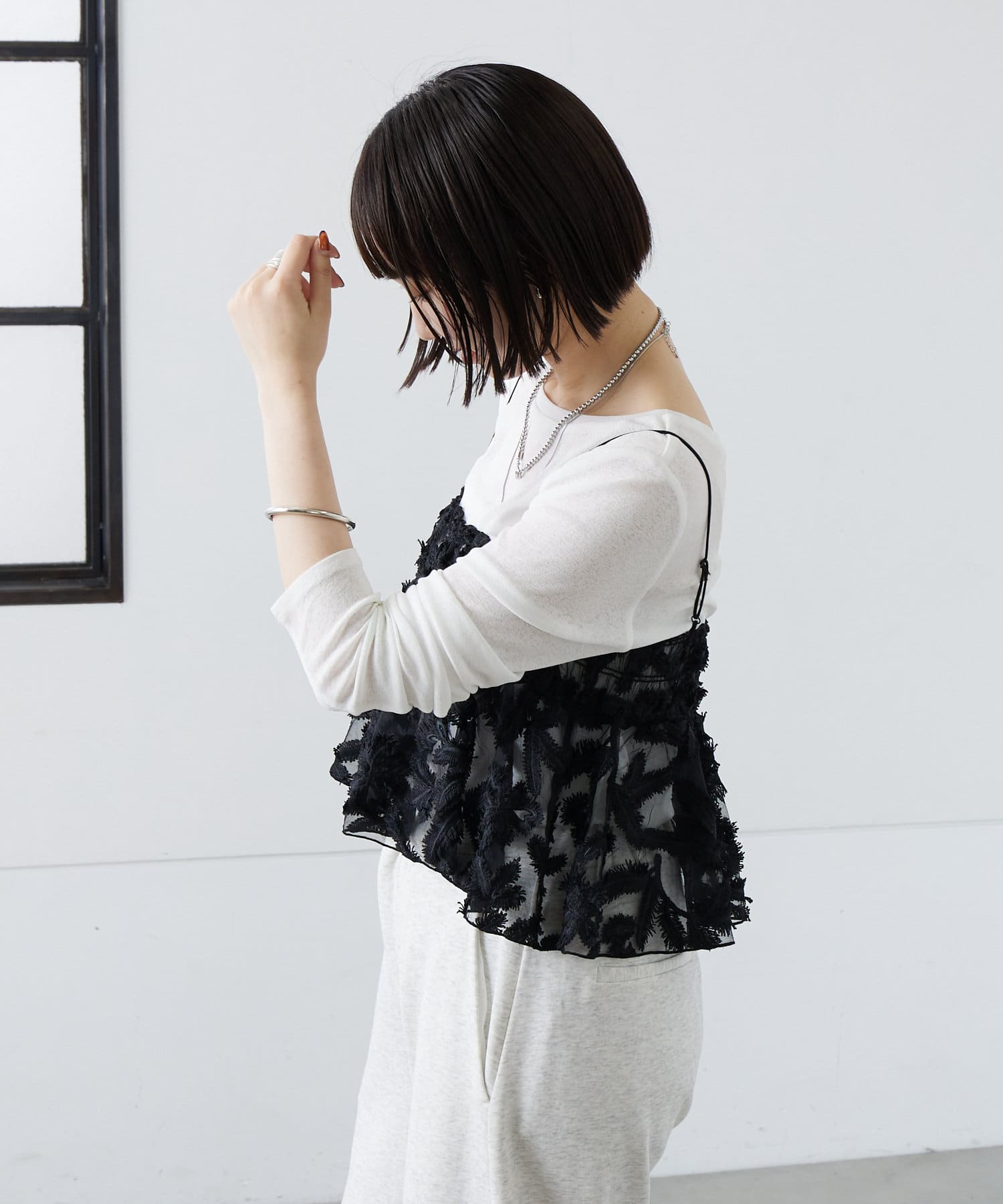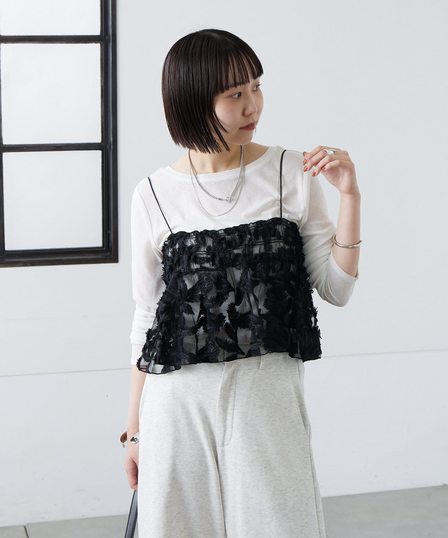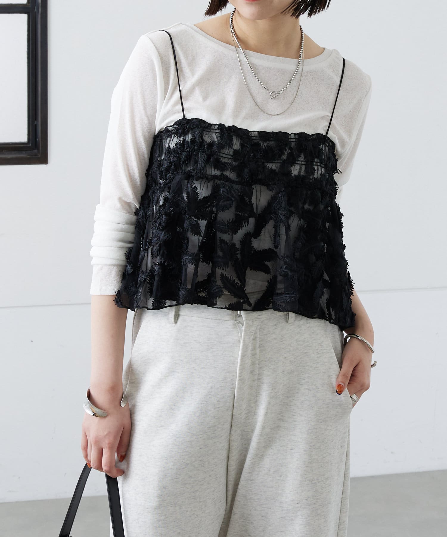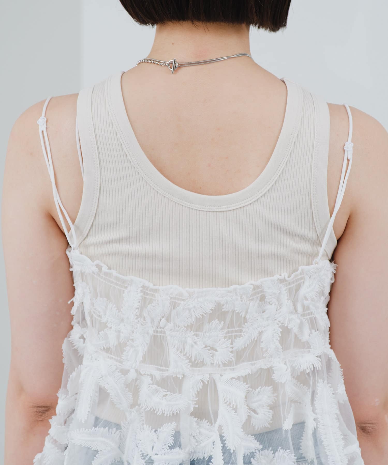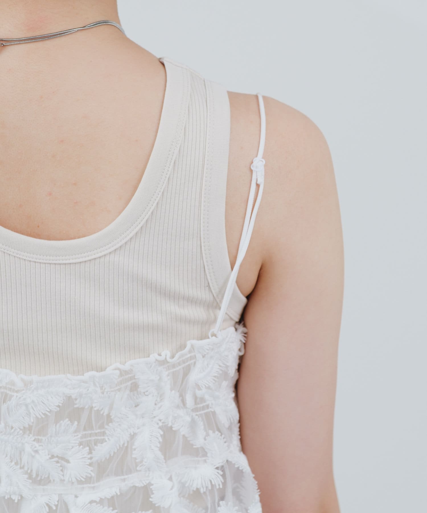 レイヤードにぴったりです。肩紐が調節可能なので