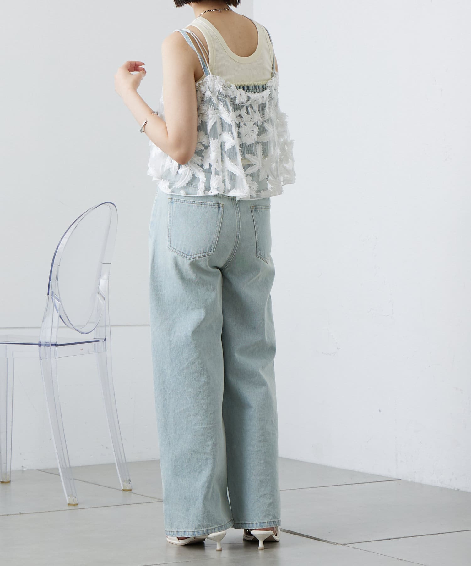 透け感のある素材が、軽やかで涼しげな印象のビスチェ。
