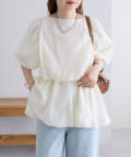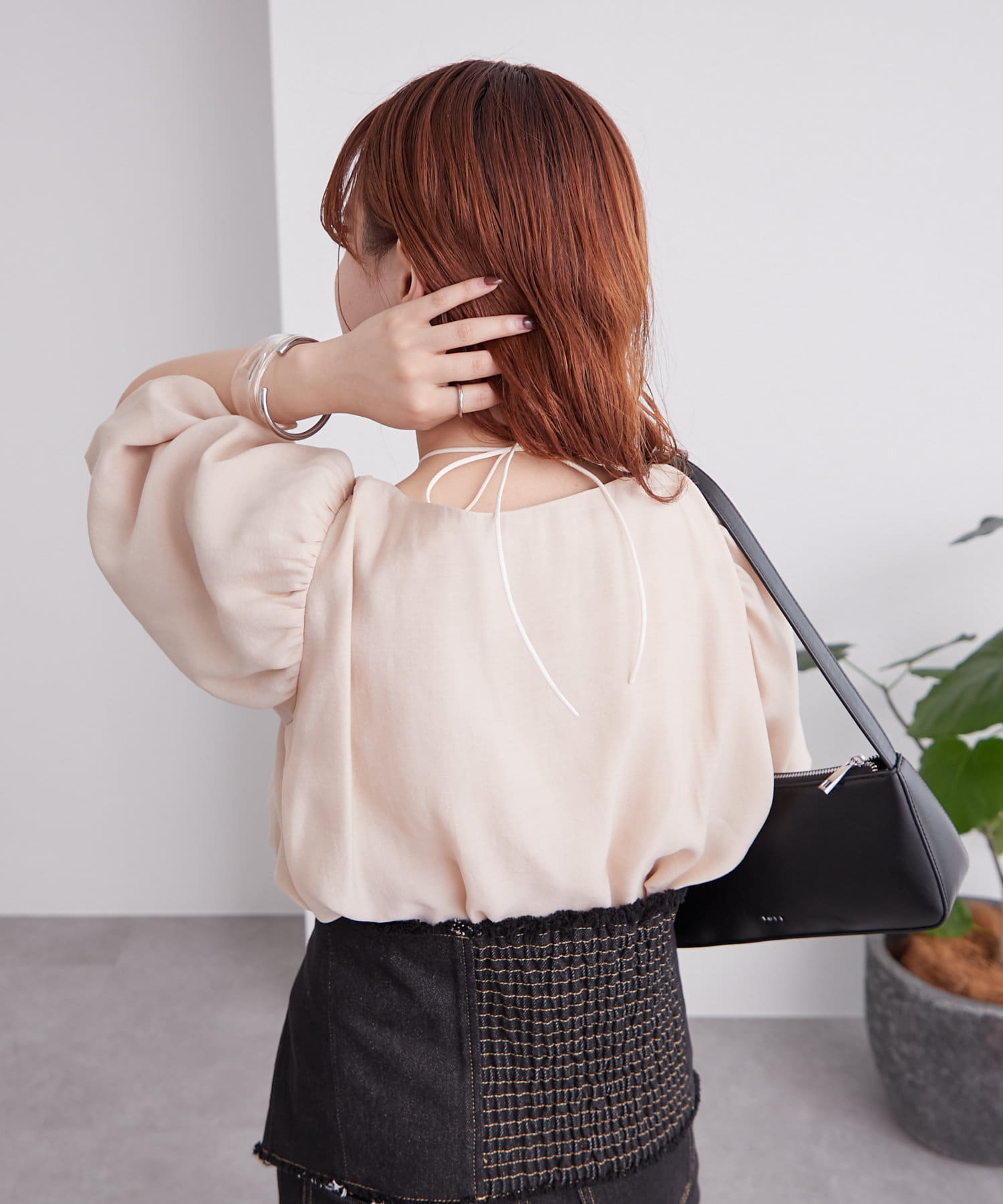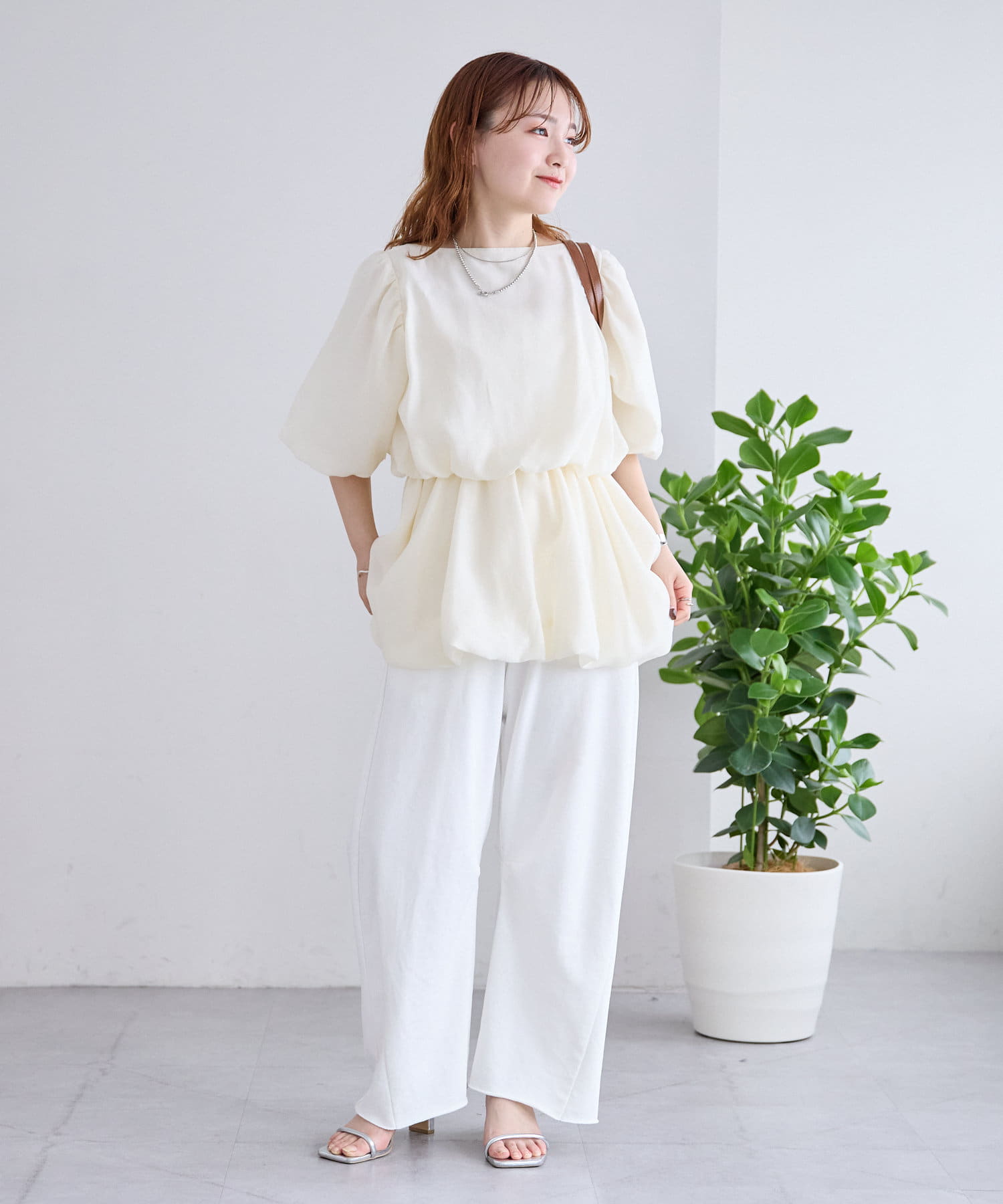 ショート丈のブラウスなので、ハイウエストのボトムス合わせでスタイルアップが叶います。