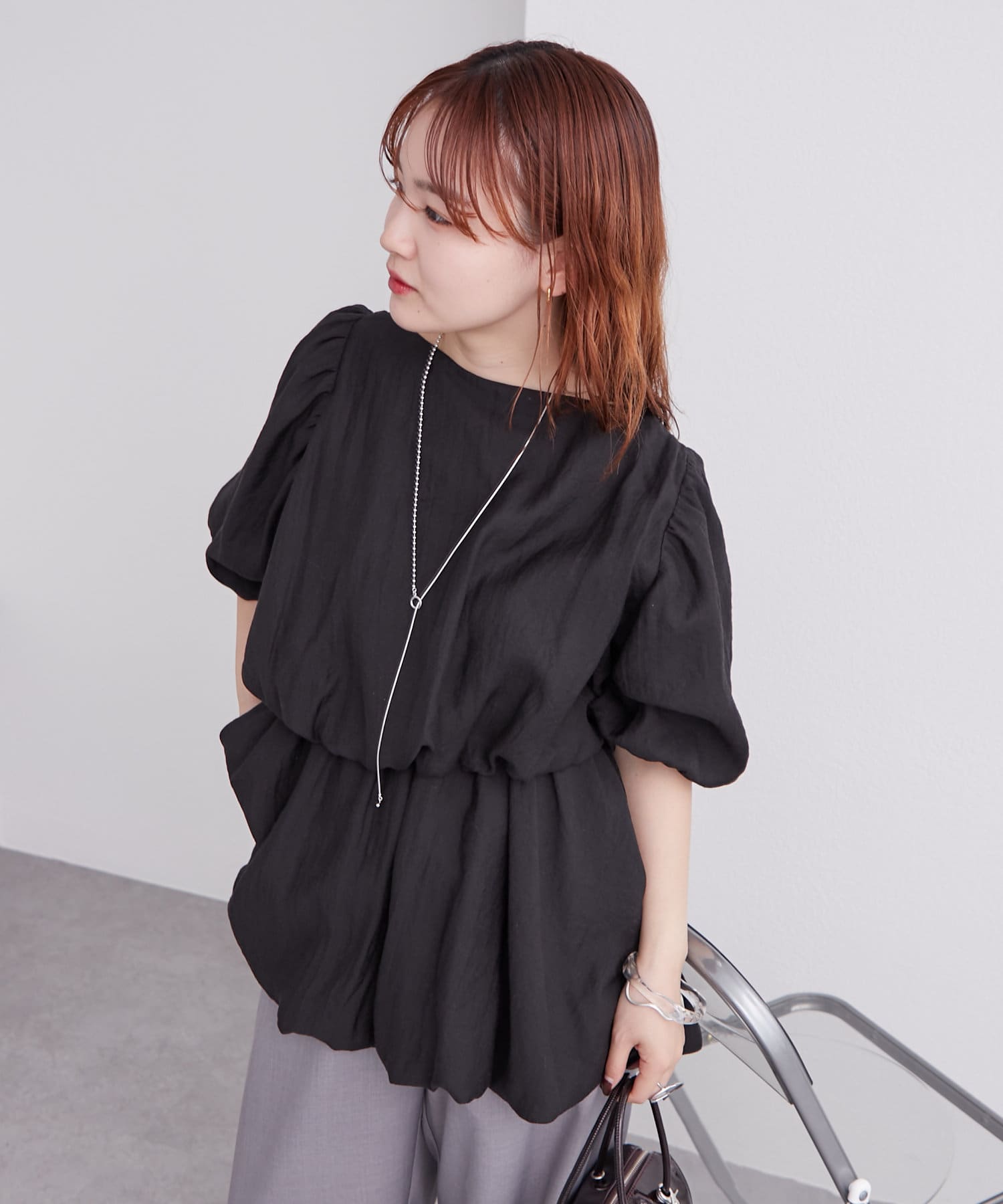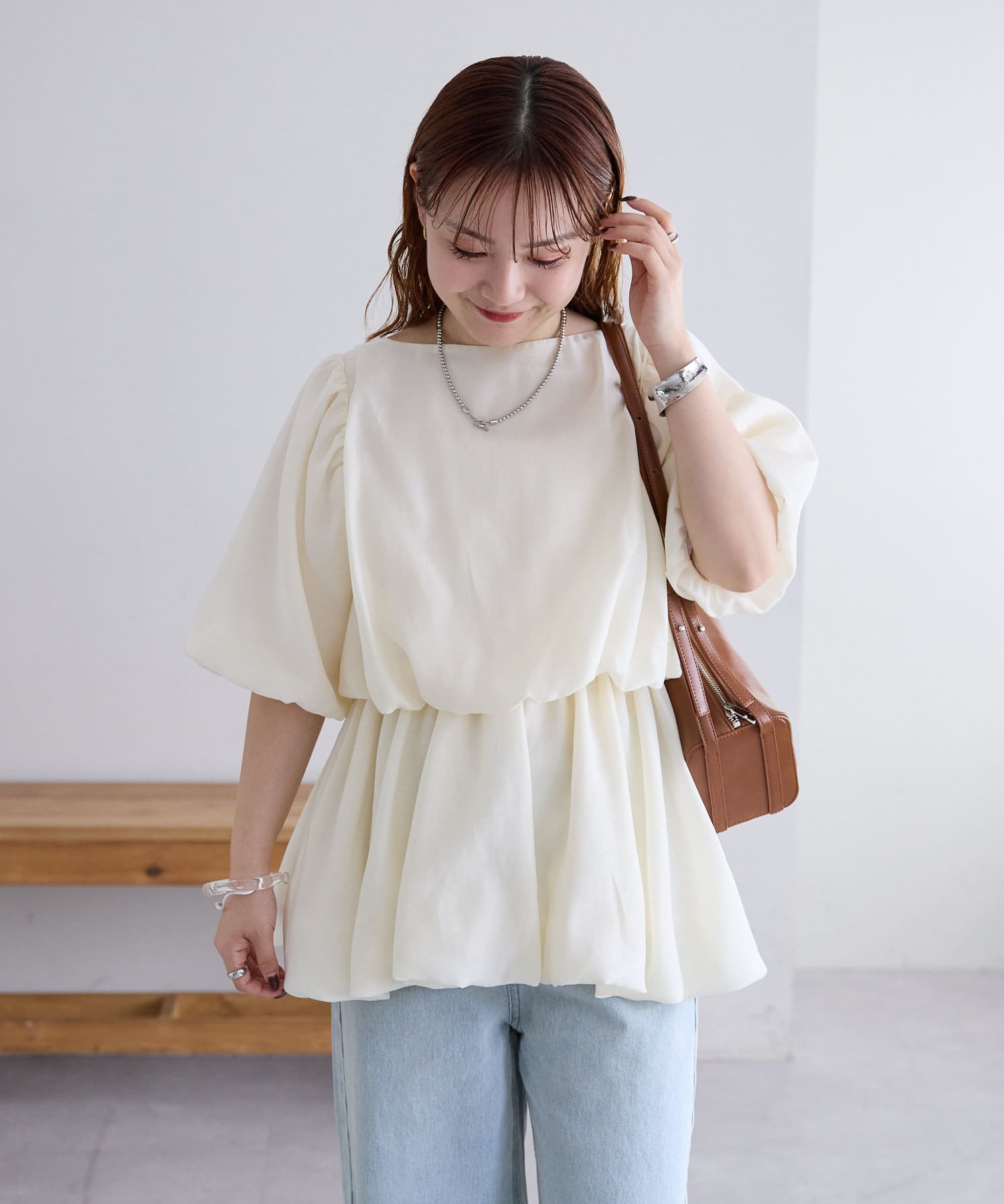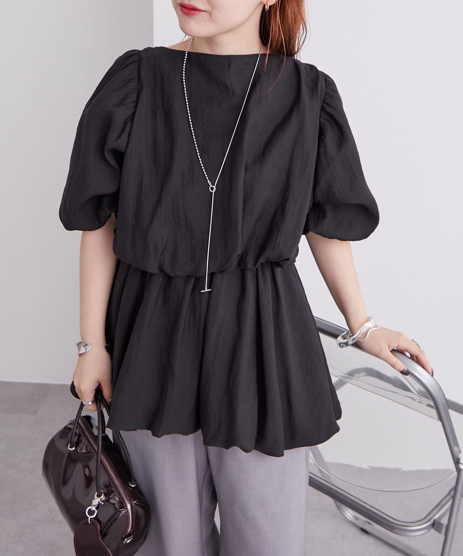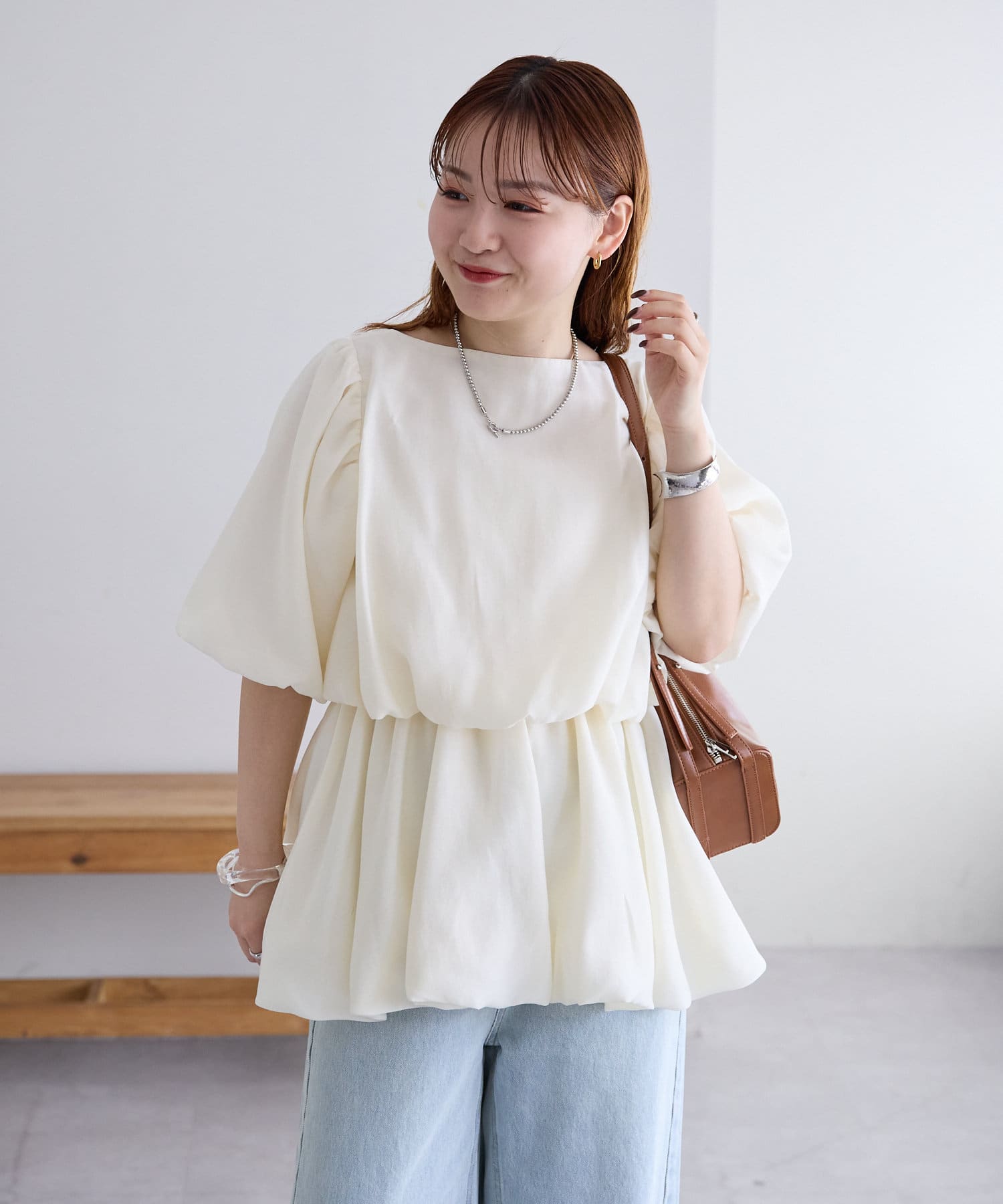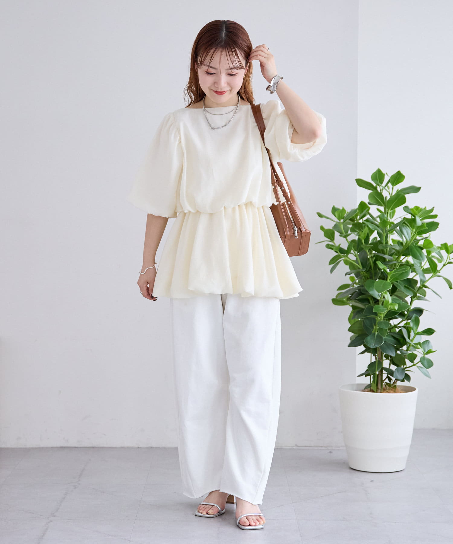 パフスリーブが女性らしいシルエットを際立たせ、着るだけでこなれた雰囲気に仕上がります。