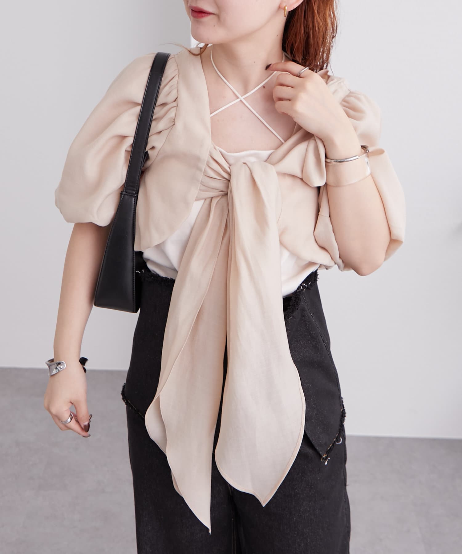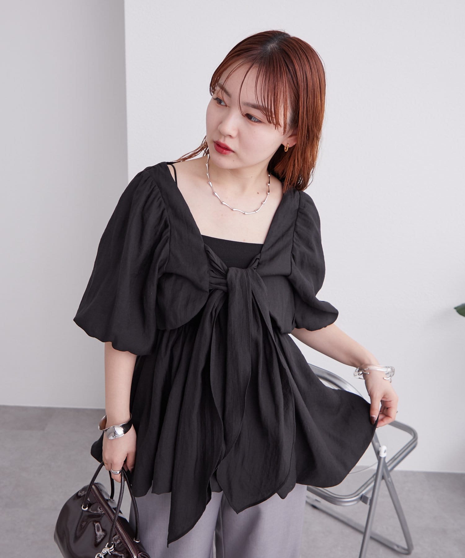 BIGリボンとふんわりシルエットが目を惹くブラウスです。