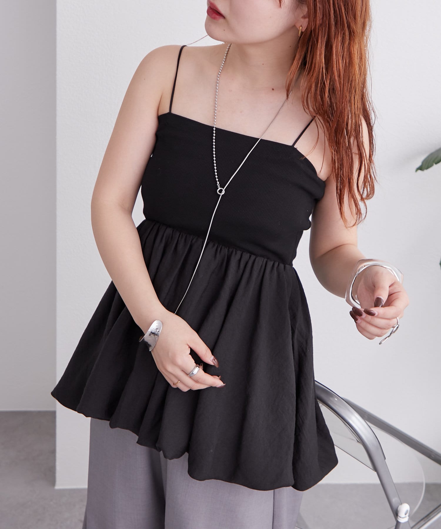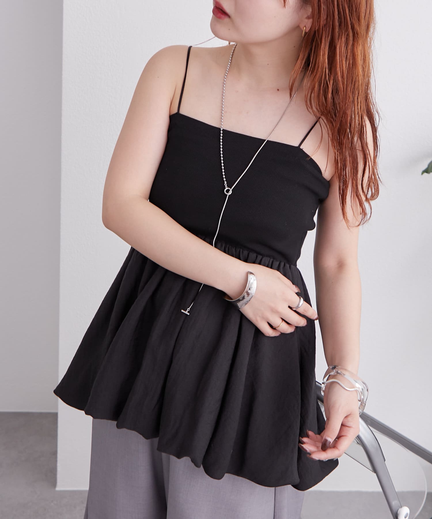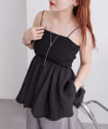 シンプルなデザインながら、着るだけで女性らしさを演出するバルーンシルエットのビスチェ。