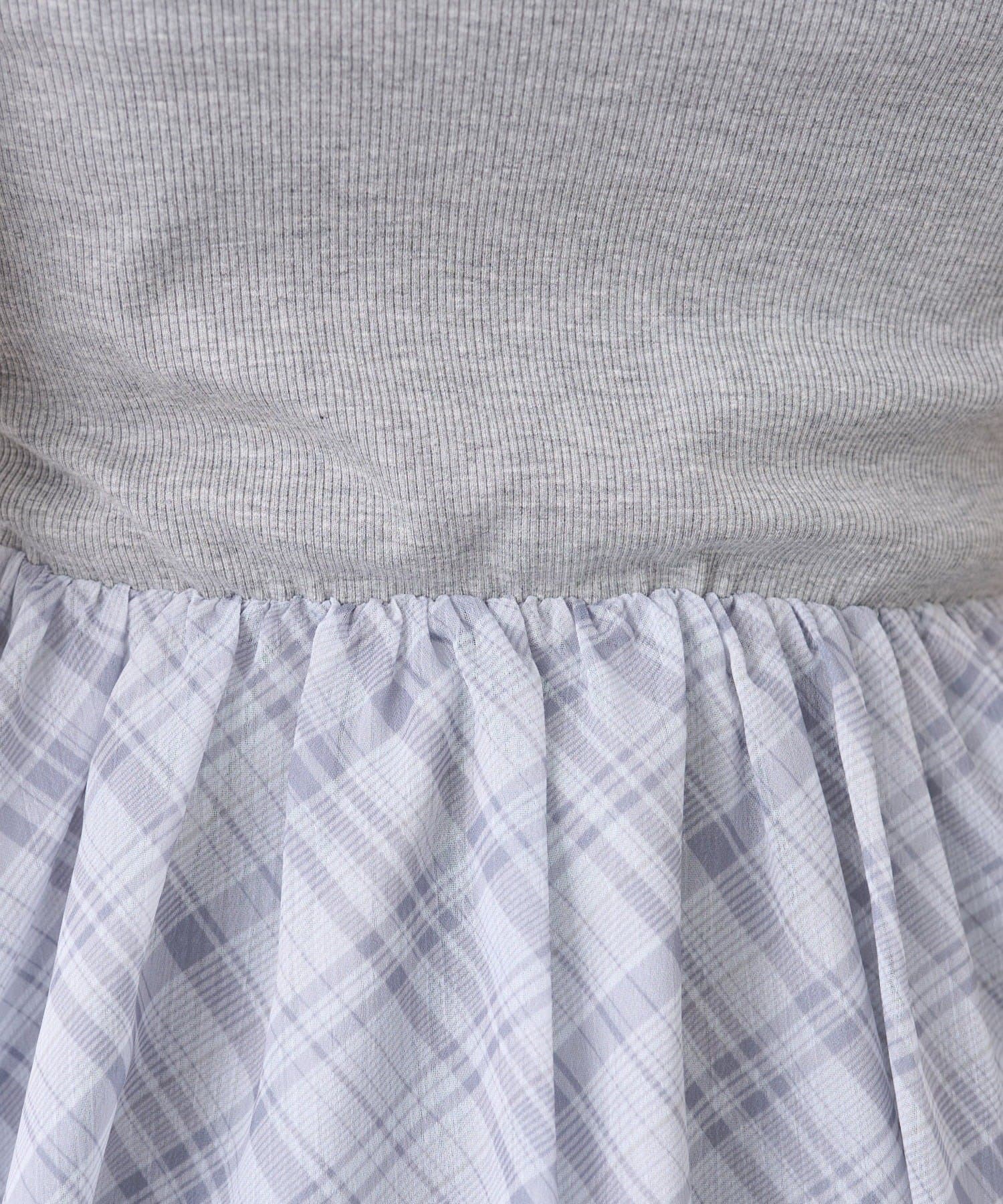 上身頃はすっきりとしたリブ編み、下身頃は柔らかな生地でふんわりと広がるAラインシルエットが特徴。