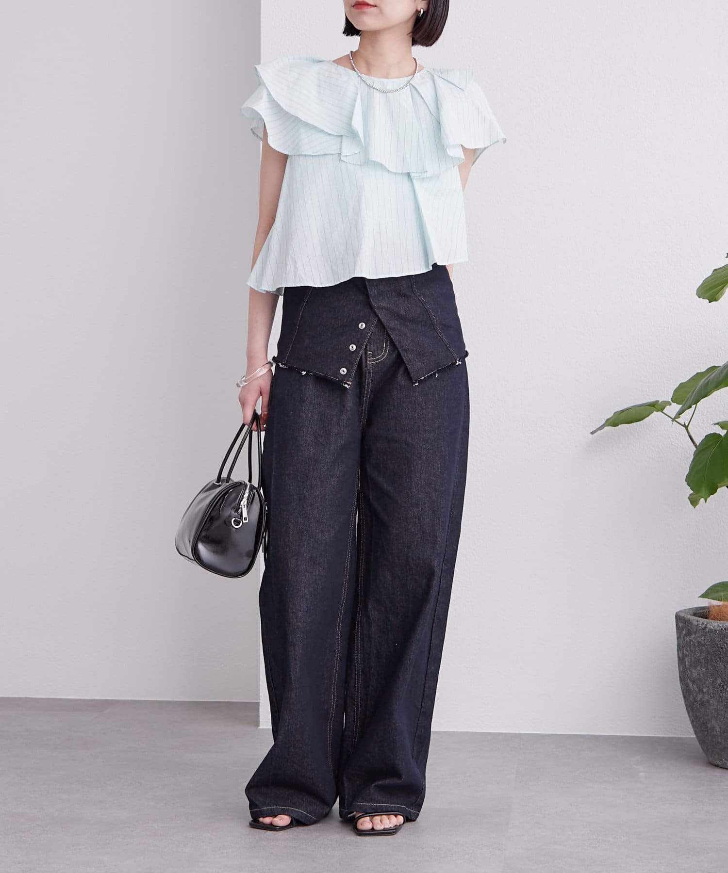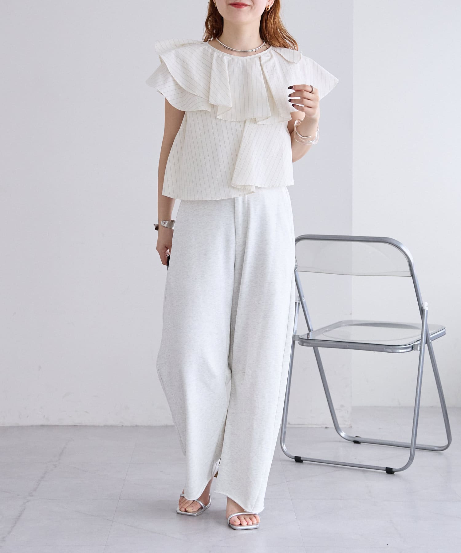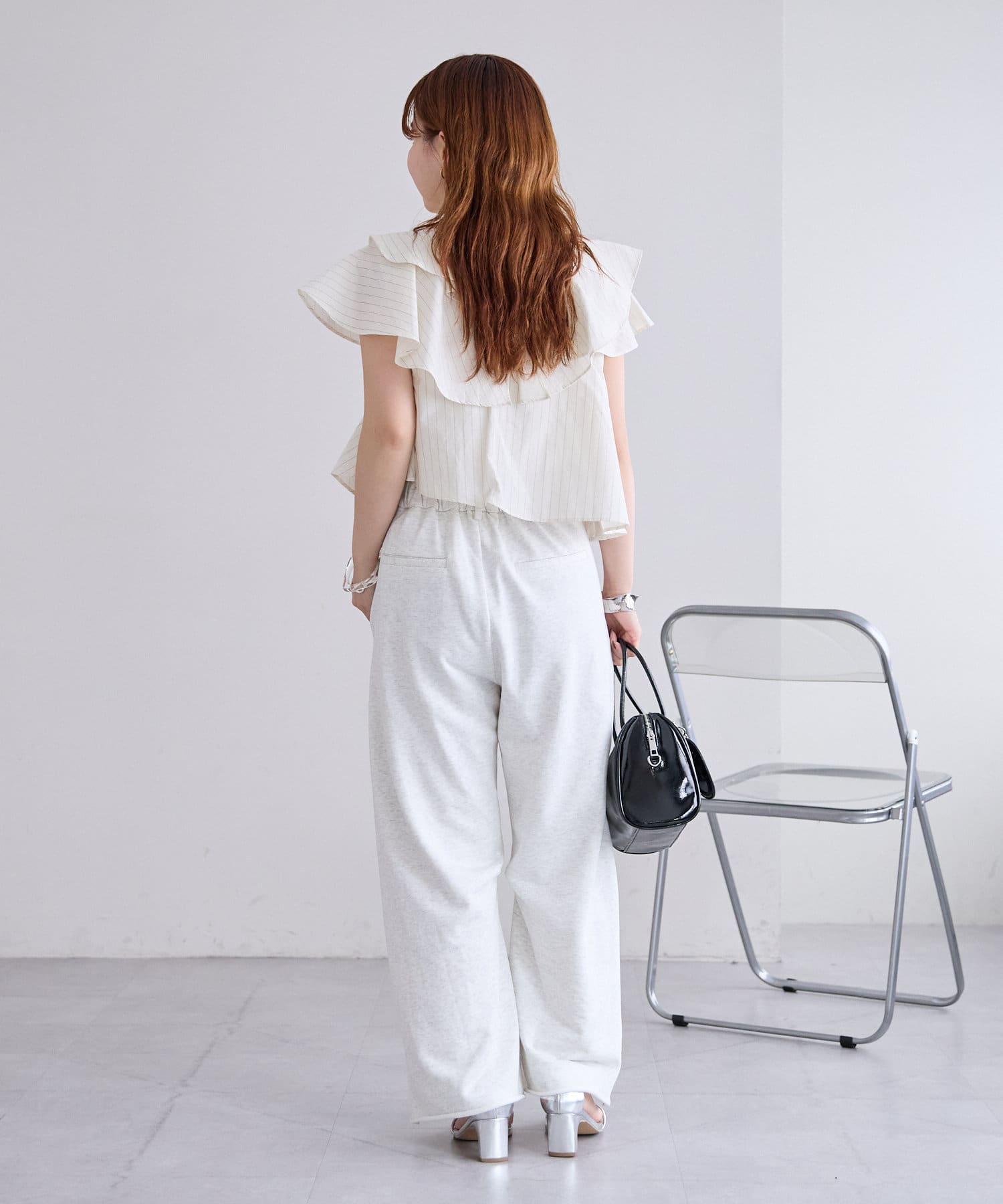ボリューム感のあるトップスなので、すっきりシルエットのボトムス合わせでバランス良く決まります◎