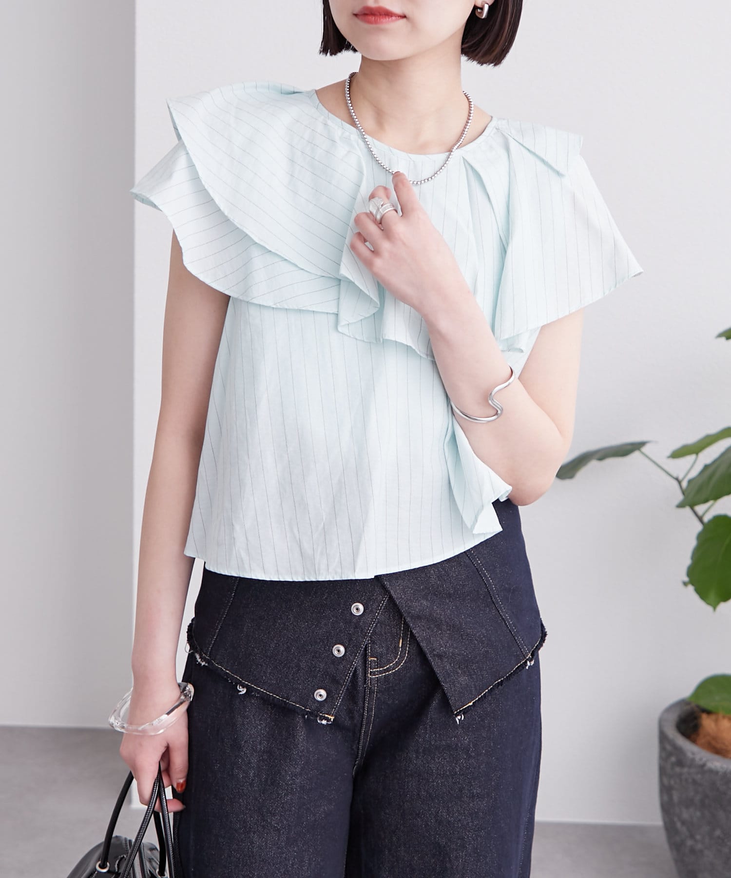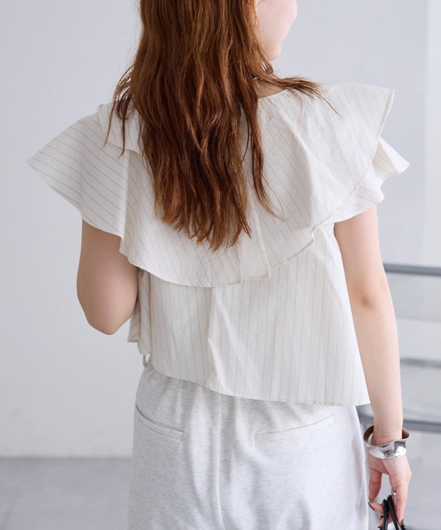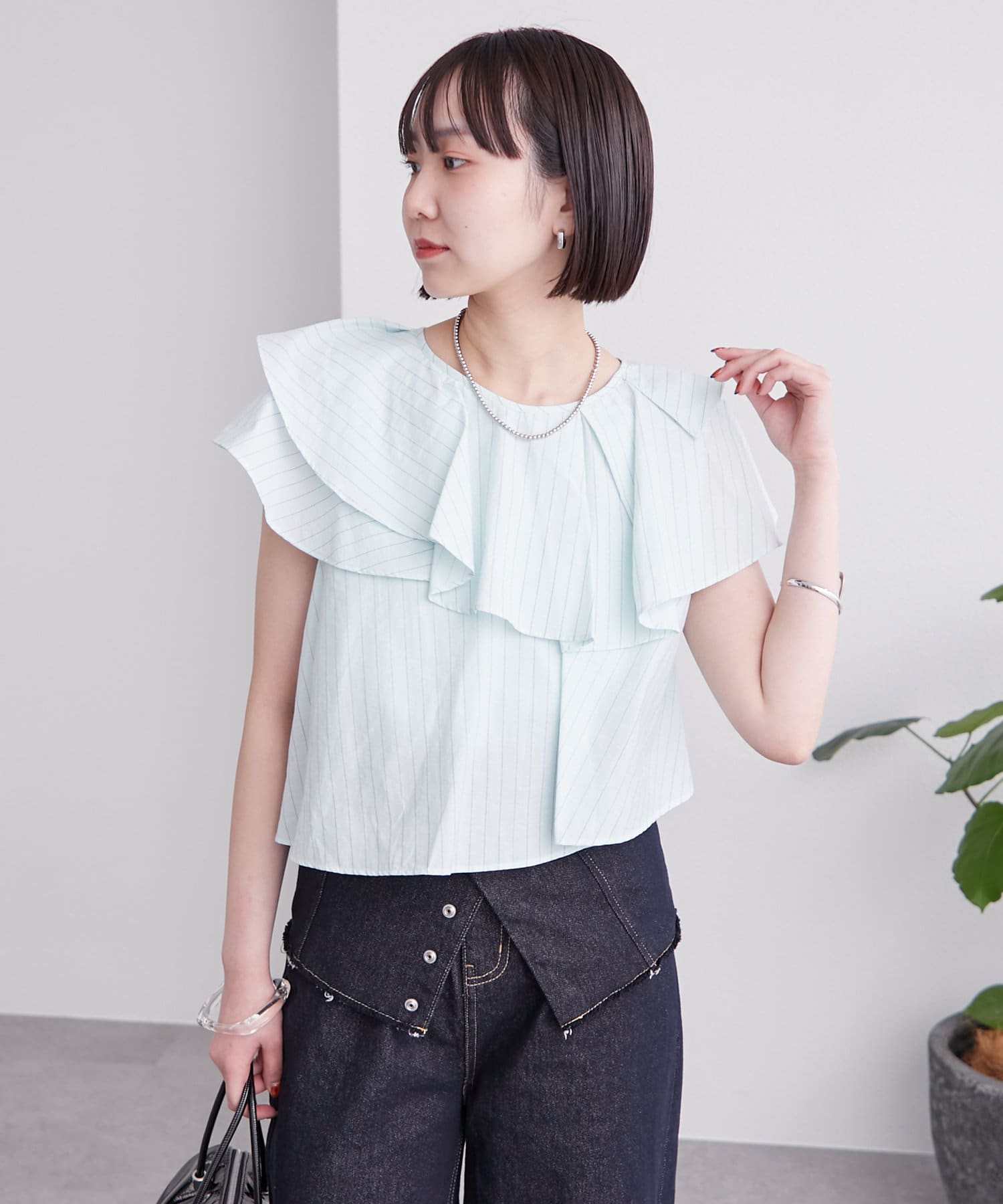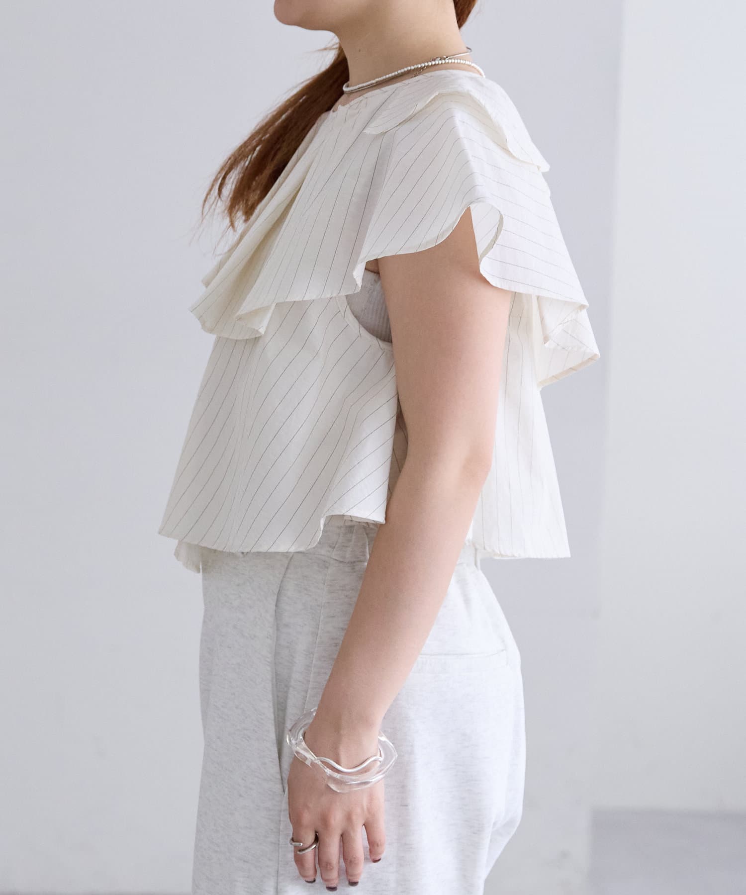 ストライプフリルブラウス